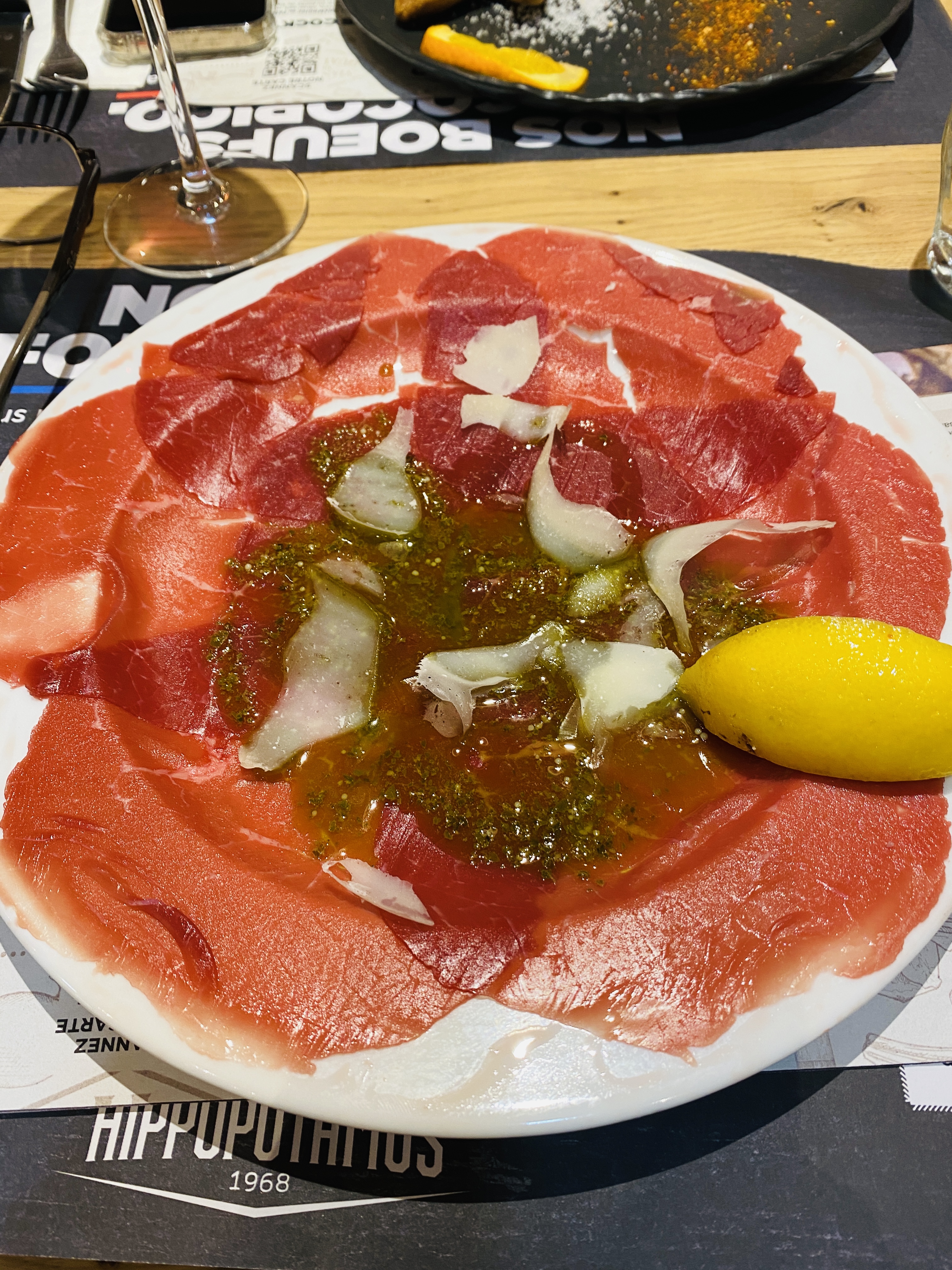 C’était une première dans cet hippopotamus mais c’était très bon comme d’habitude. Par contre beaucoup d’attente, et un service pas top. La carafe d’eau demandée est arrivée plus de 20 minutes après ( en même temps Que les plats ), tout comme les chips. Une fois les plats arrivés on a du demander des couverts. Pas très pro sur ce point