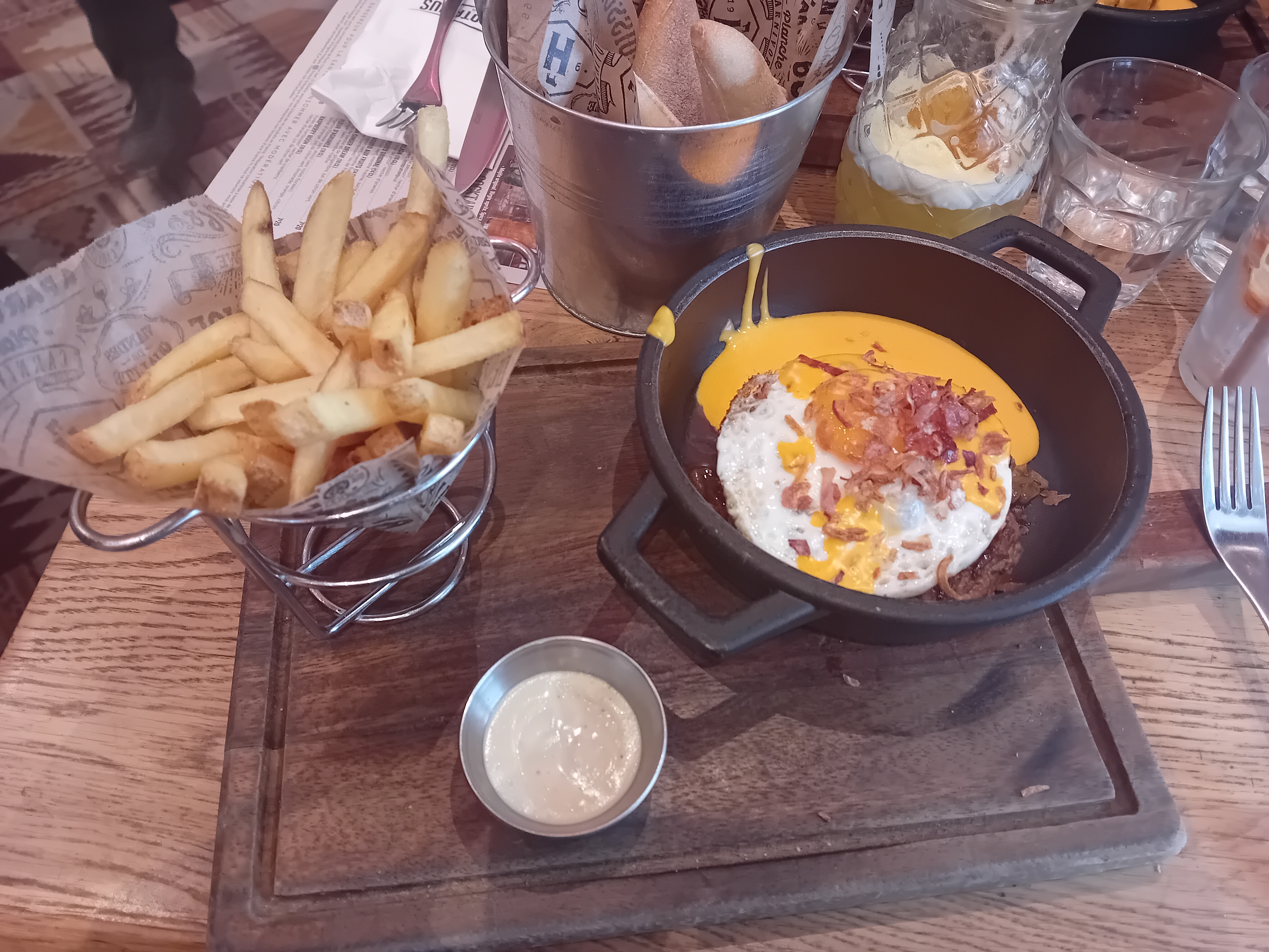 Service assez rapide. Assez cher pour certaines choses je trouve, ne ressemble pas à l'image comme l'œuf poché à la provençale 7€ et tout petit... Nachos 13€ trop cher également chips cheddar viande hachée....