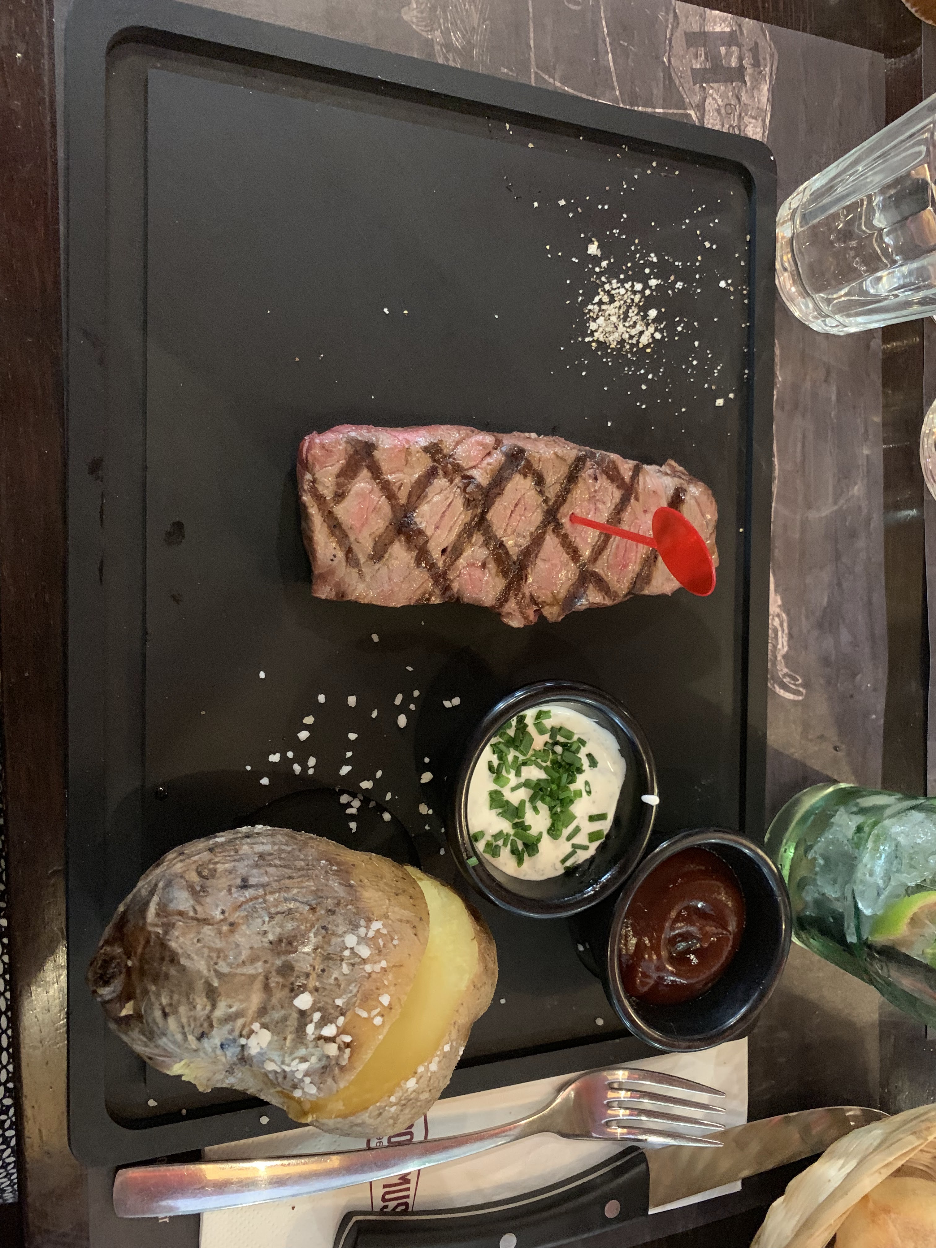 Très très déçu de la qualités des plats et du service très long preuve à l’appui des pommes de terre cramé pour un plat à 25€ plus les garnitures froides la mauvaise foi de la serveuse qui me dit de manger mes haricots vert de suite sachant que j’ai travaillé chez hippopotamus et je suis cuisinier et la sauce échalote avec des gros morceaux et un bouillon de bœuf liquide aucun intérêt les garnitures sont sous vide a fuir je vous déconseille