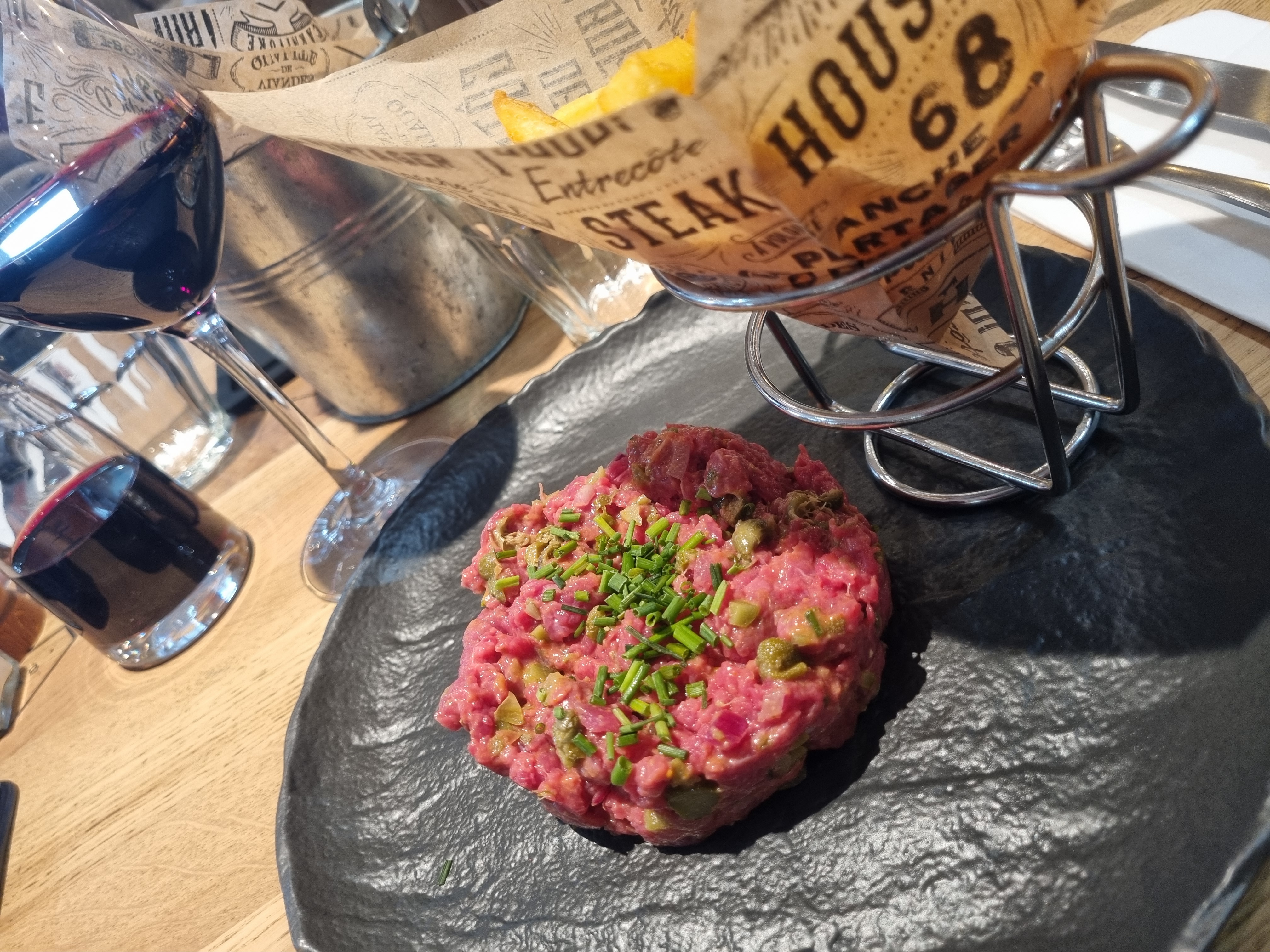 Steak tartare froid sortant du frigo, on aurait aimé un peu de pain, la portion de frites nous laisse sur notre faim.