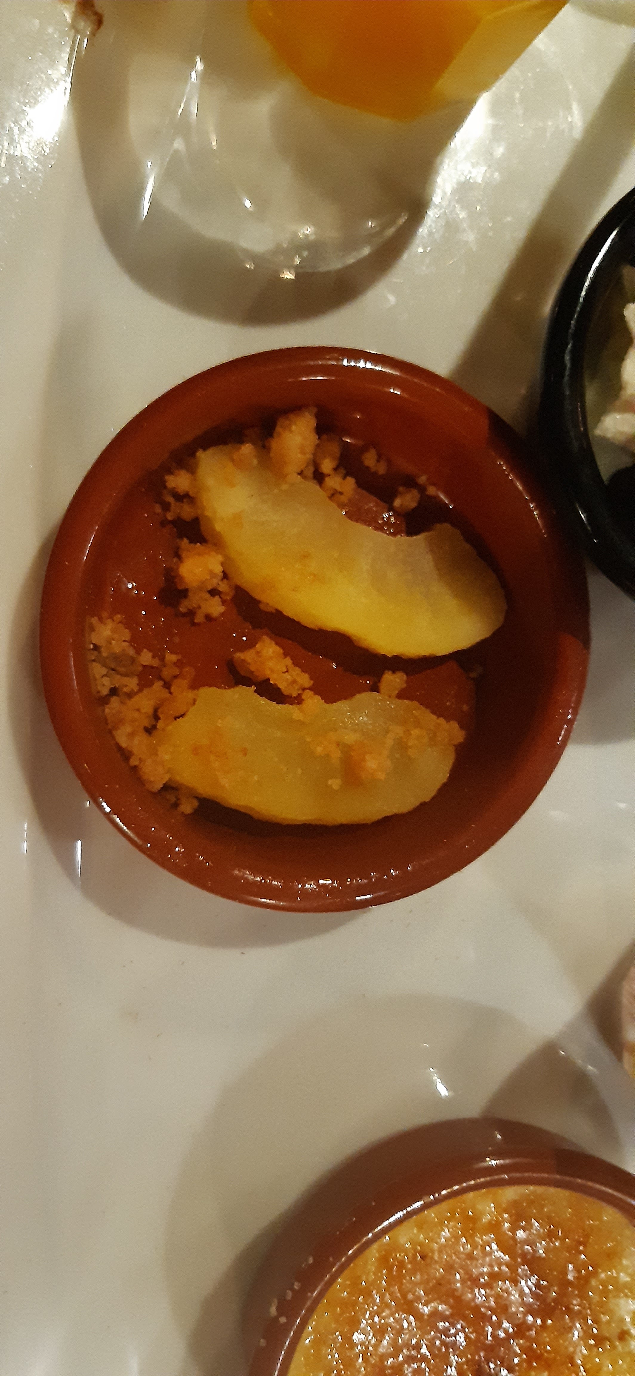Cuisine déplorable. Les frites sont recuites et du coup grasses, le tartare était tellement assaisonné que je ne suis pas sûre qu'il s'agissait de viande et le dessert.....un café gourmand composé d'un brownie industriel et pas du jour ni de la veille d'ailleurs, d'une mousse au chocolat pareil, industrielle bas de gamme, un crumble aux pommes dont les 2 petits morceaux de pomme étaient vaguement saupoudrés d'un mélange immangeable aux relents d'huile de friteuse (bizarre pour du crumble - je le mets en photo) et d'une crème brûlée pas mal du tout... La soirée a été un peu remontée par un service sympathique et souriant. La note salée pour une prestation de ce niveau