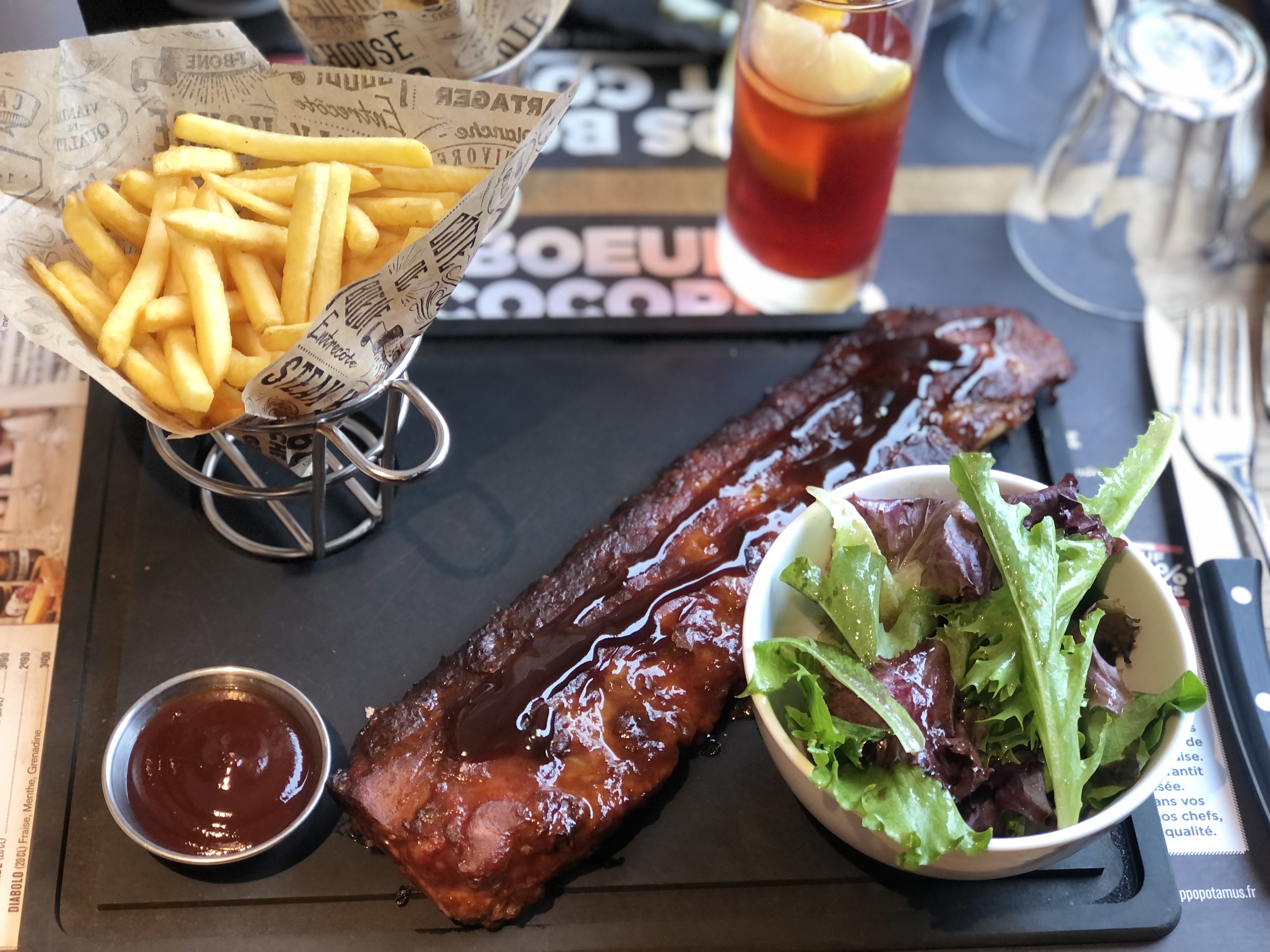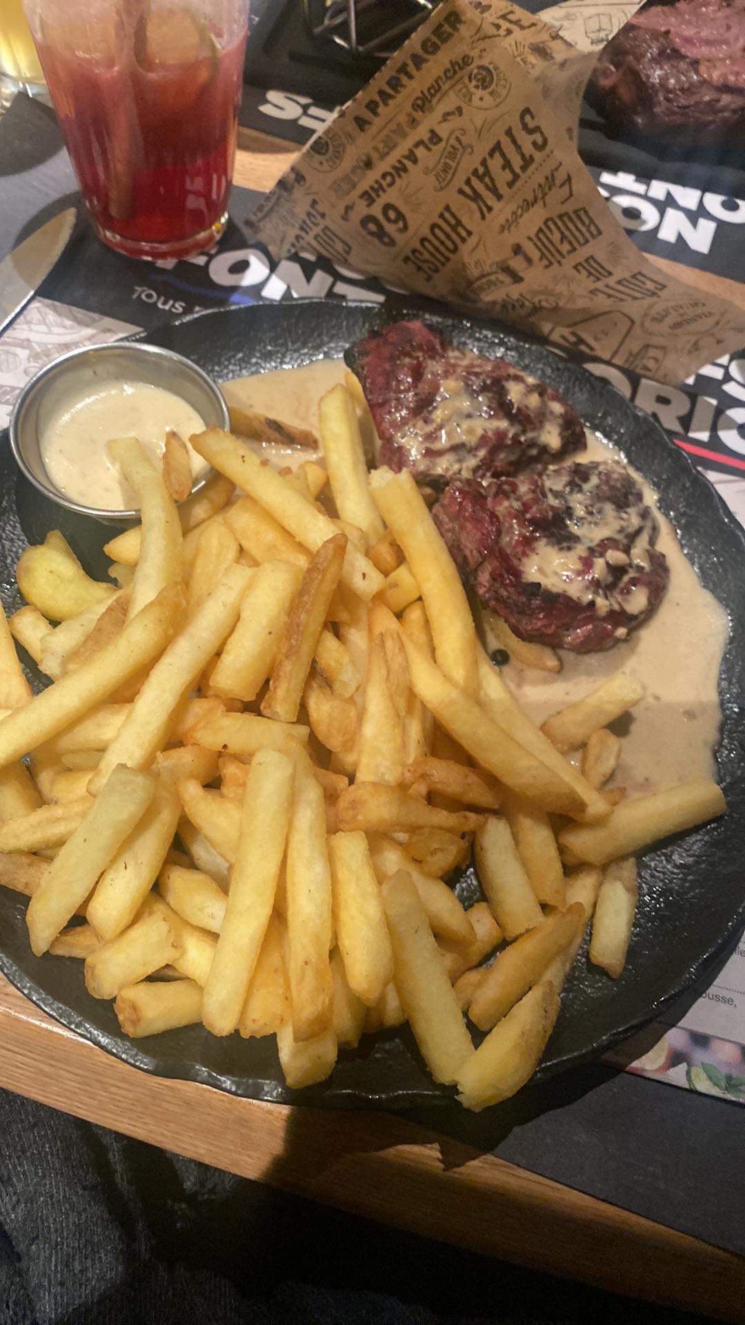 Trop d'attente pour le plat. Les bavettes ont une épaisseur d'une pièce de monnaie et nous avons payés le prix d'une bavette normal. Et pour le retard on nous a répondu que le cuisinier était tous seul... Très déçue. Je ne le conseille pas. Merci d'avance.