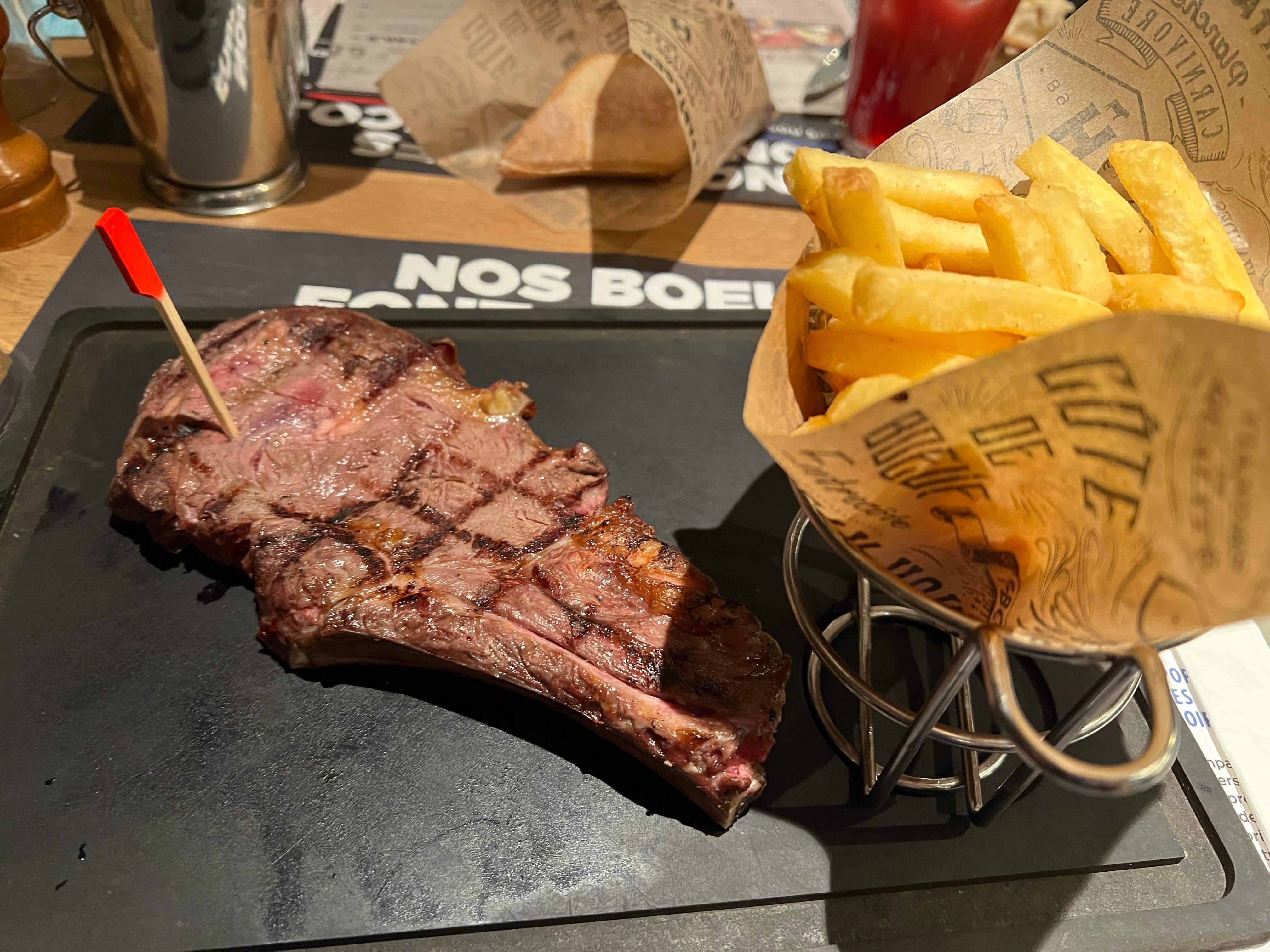 J'étais venue pour manger une bonne côte ainsi que des pommes au four mais il y avait rupture de pomme au four sinon tout était bien, serveuse pro,