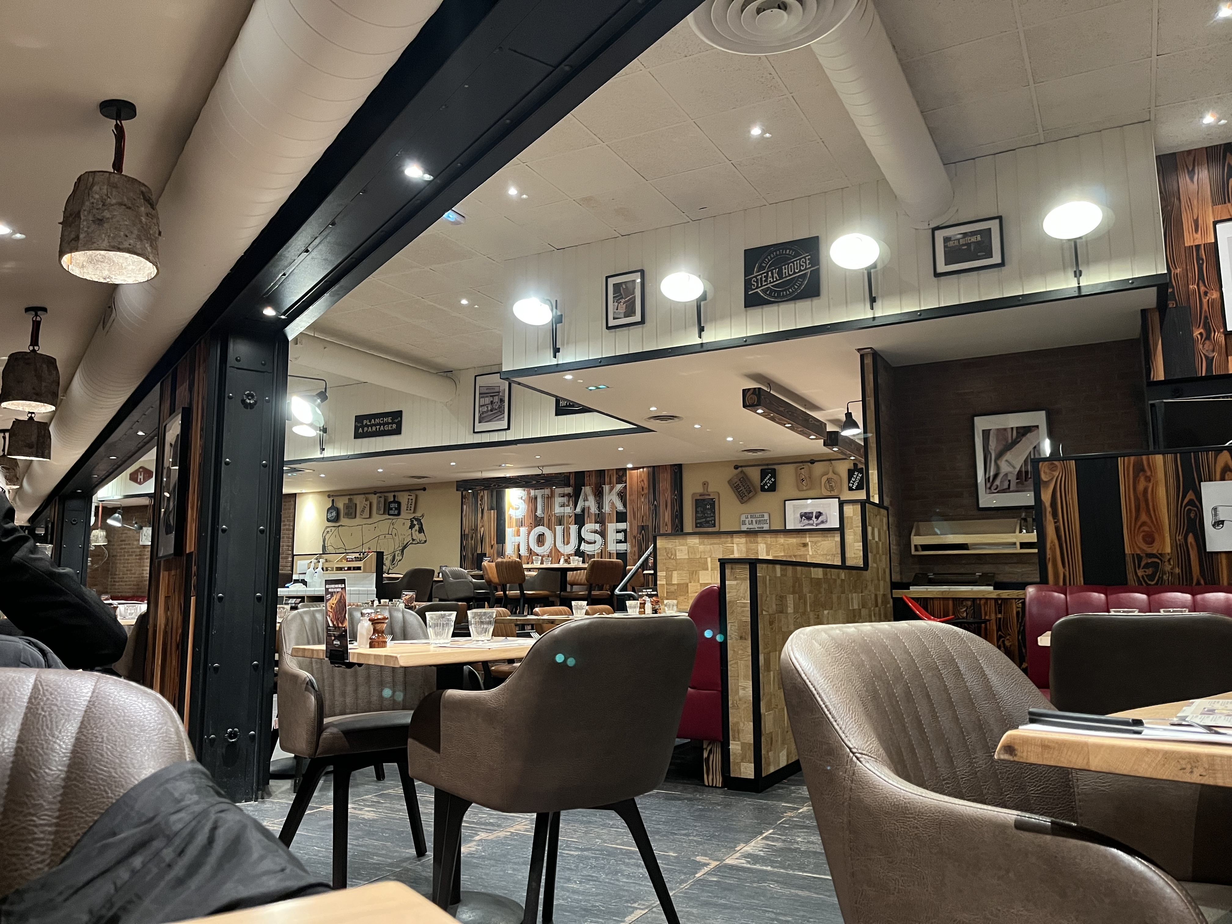 Restaurant très chaleureux et accueillant, les plats proposés sont nombreux, très copieux et de bonne qualités. Quelques petites erreurs sur les cuissons ou un mi cuit demander mais c’est plutôt un bien cuit que nous avons eu. Par contre les serveurs sont très gentils et accueillants, mais notre serveur de salle nous a un moment donner oublier et ne s’est pas excuser. Nous attendons encore notre bouteille d’eau d’ailleurs. Pour le paiement c’est bien préciser que nous payons a table, il nous a débarrassé notre dessert, nous a apporter la note mais nous avons dû attendre 15 bonnes minutes avant qu’il viennent nous faire régler (il n’étais pas vraiment occuper car il était les bras croiser à ce promener )