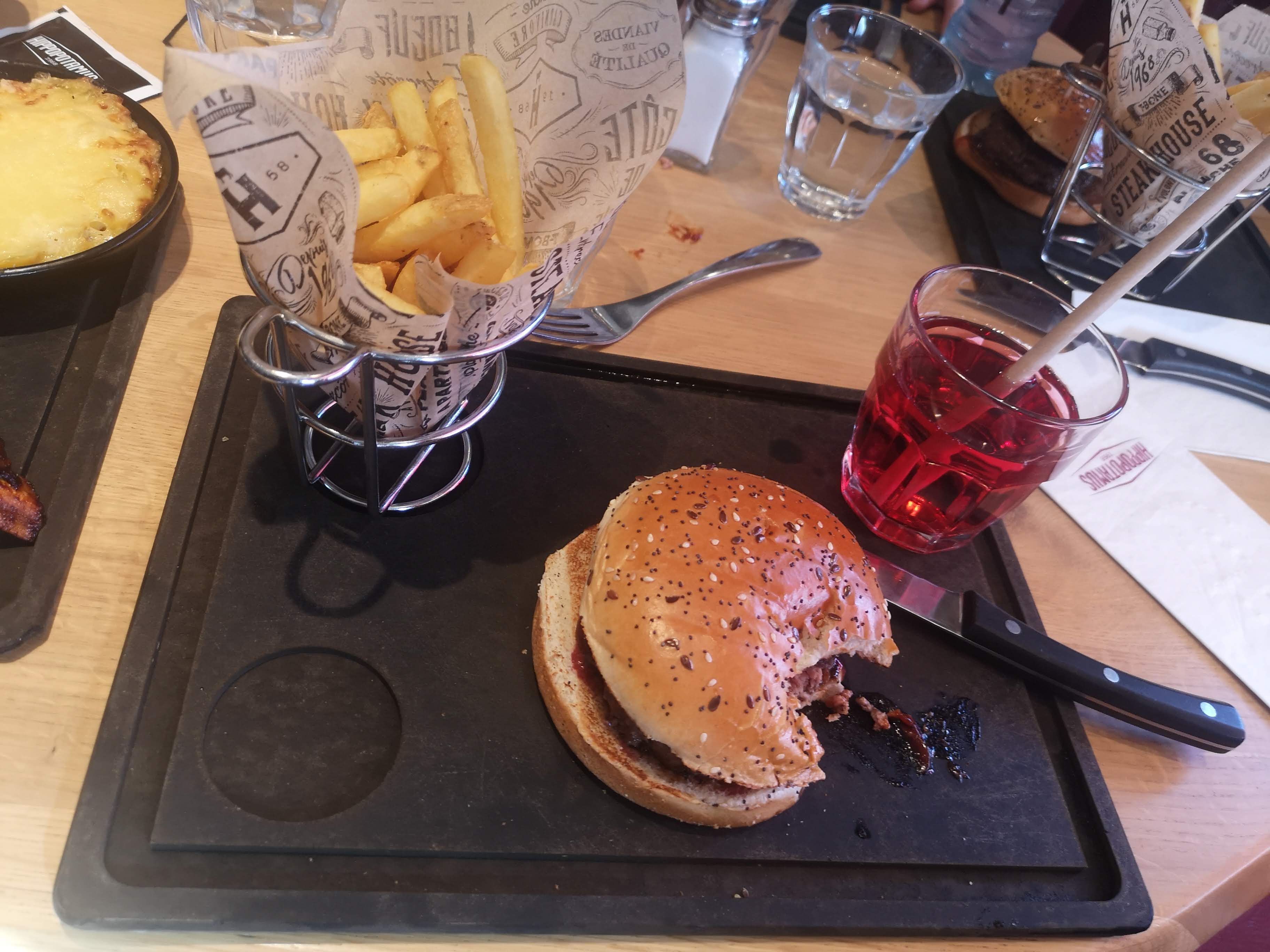 Pratique pour nous qui sejournions au remix hôtel qui communique avec le restaurant, on pensait que c'était une bonne idée pour manger sur le pouce... bref, mauvaise pioche... cuisine ultra industrielle, les burgers trop cuits, trop secs, pas bons ...Le vin au verre, un beaujolais plus proche du vinaigre que d'un vin de table, le café liégeois copieusement arrosé de sauce au caramel ultra sucrée... hormis le service rapide et efficace, rien à sauver dans cette version 2024 d'un restaurant et d'une chaîne qui il y a encore quelques années était tout à fait acceptable.