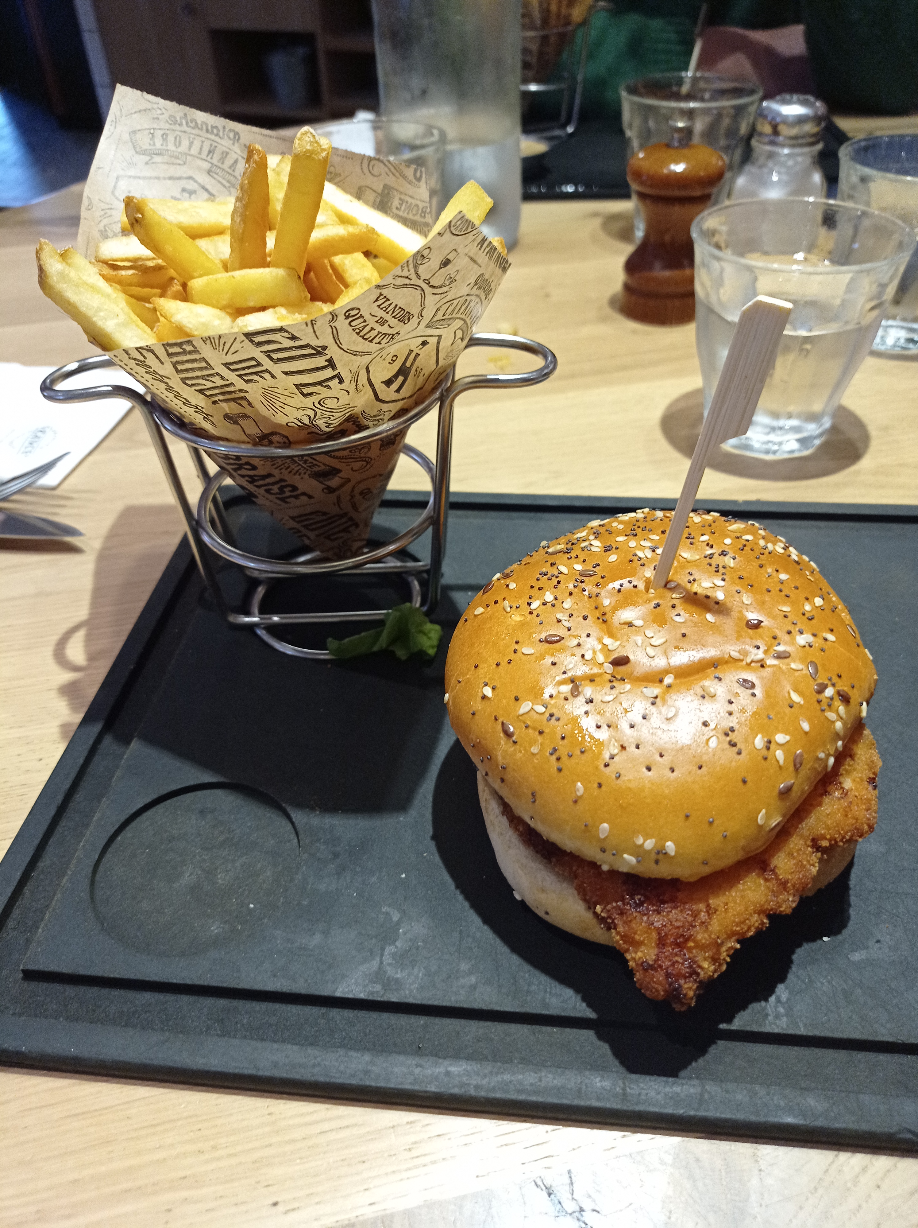 personnel serviable, particulièrement avec mon chien guide. un peu déçu par le visuel du burger jurassien : burger et frite, point. pas beaucoup de couleurs