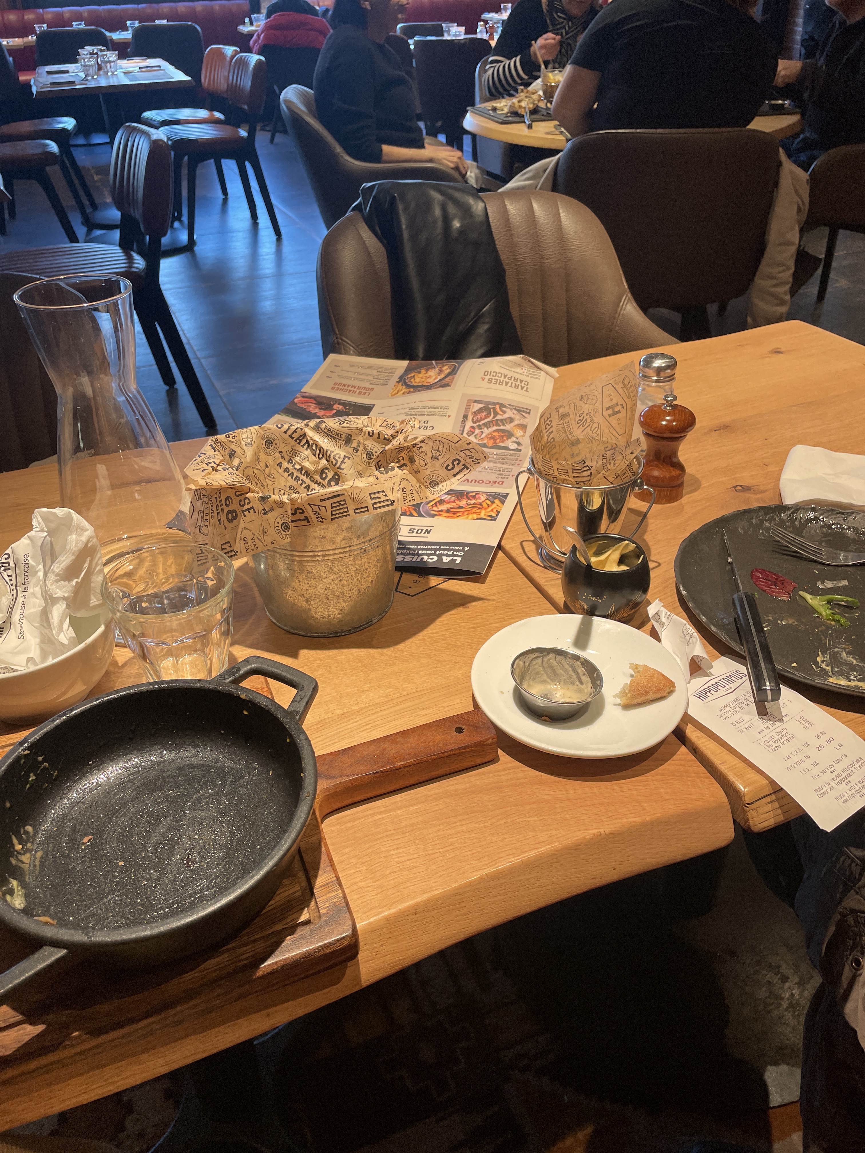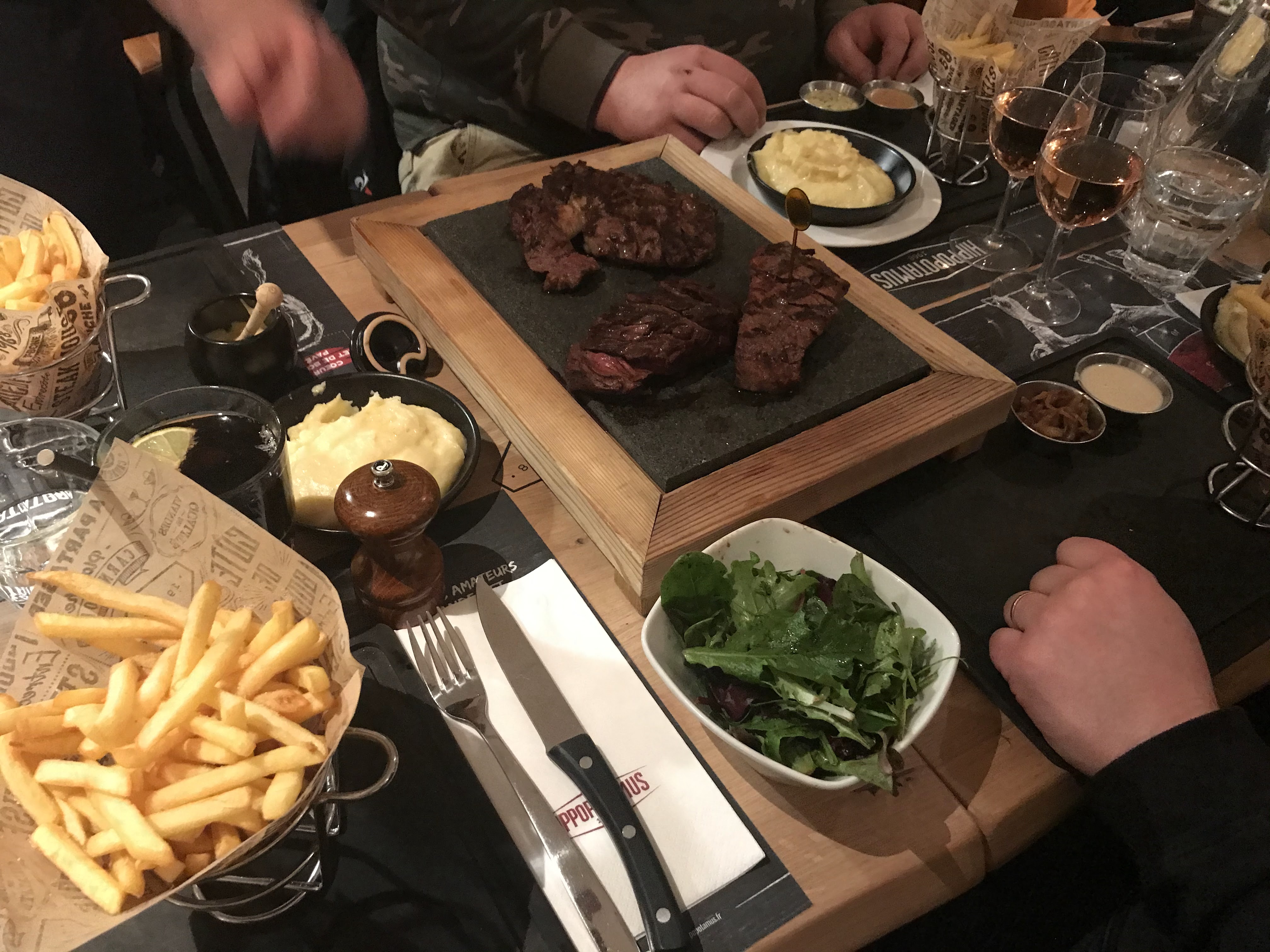Quelle déception. Serveuse au sein de l’enseigne pendant plusieurs années, je crois que j’aurais déjà perdu mon boulot pour moins que ça. J’ai connu une exigence au niveau du service, du contact avec la clientèle et un standing à tenir auprès d’Hippopotamus. Nous étions formés à l’excellence. A cette heure-ci, j’attend toujours mon assiette de frites supplémentaire, le pain qui n’est jamais arrivé, la carafe d’eau obtenue après supplication auprès de 3 serveurs qui vous regarde avec nonchalance et la forte impression de trop en demander… En revanche l’addition est arrivée à une vitesse déconcertante. Personne ne se souci pendant le repas de savoir si tout se passe bien, si nous manquons ou désirons quelque chose. Est-ce réservé à ce restaurant ou est-ce que le nivèlement par le bas à ébranler cette enseigne qui se démarquait tant avant… En bref, si vous voulez passez un bon moment au restaurant et ne pas en sortir agacés, il ne faut plus choisir Hippopotamus…
