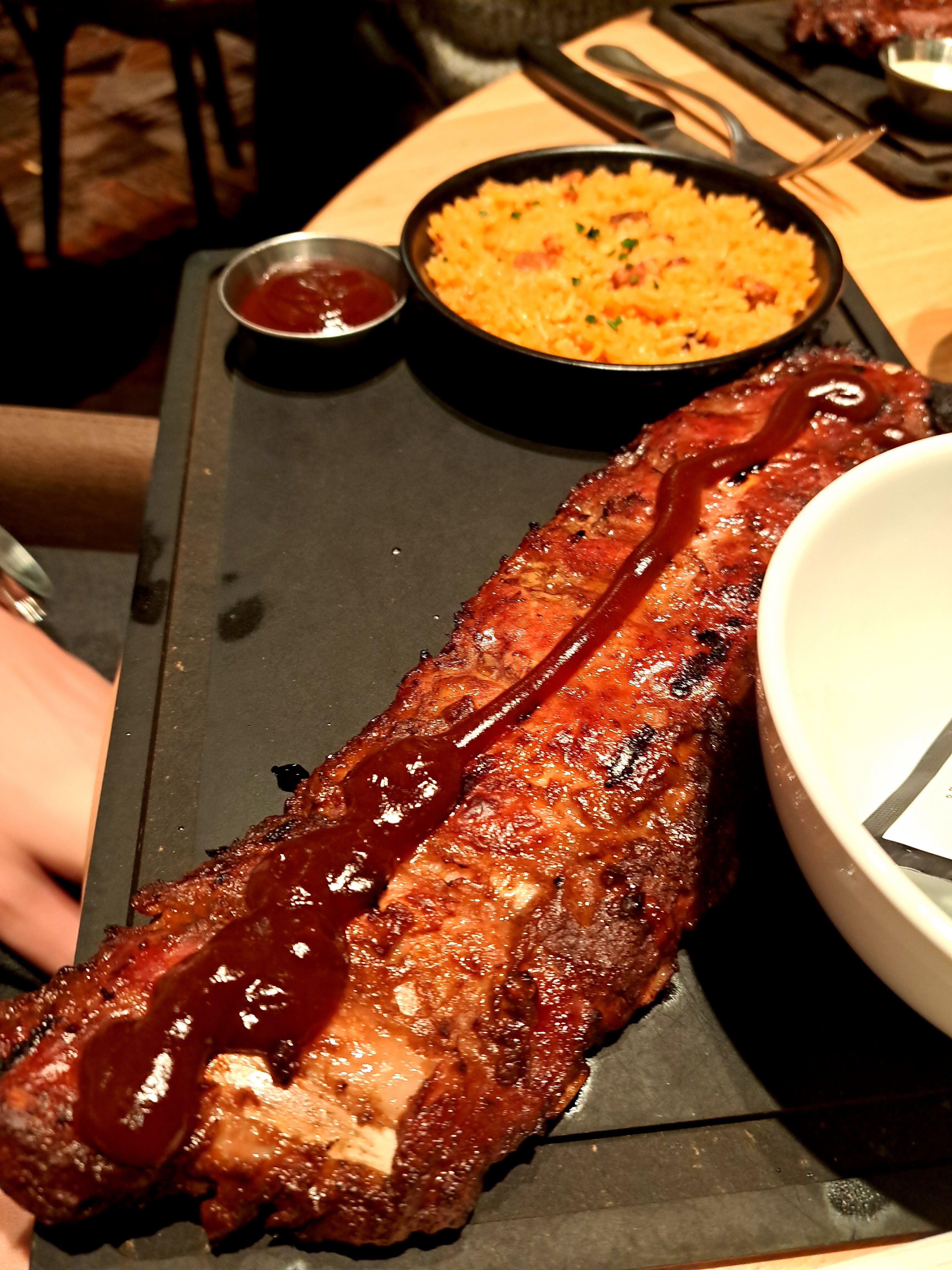 Je ne fais pas ça d’habitude mais j’ai pensé que c’était nécessaire. Mon partenaire et moi y sommes allés spontanément il y a un peu plus d'une semaine et j'aurais aimé ne pas le faire. 1. Les entrées du menu ne me semblaient pas clairement décrites. Quelque chose de complètement différent de ce à quoi nous nous attendions est arrivé. 2. J'ai eu le mélange de côtes levées, de poulet et de frites. A notre arrivée, tout était froid ! Et c'était comme si le poulet n'était définitivement pas fraîchement cuit, il était sec…. Et j'avais l'impression qu'il restait assis dans la cuisine pendant un moment. 3. Nous nous sommes assis en bas sous les escaliers, ce qui ne me dérangeait pas, mais la cerise sur le gâteau était la souris qui courait dans le coin où nous étions assis. Cela me dépassait et cela m’a rappelé pourquoi je ne mange pas souvent dehors.
