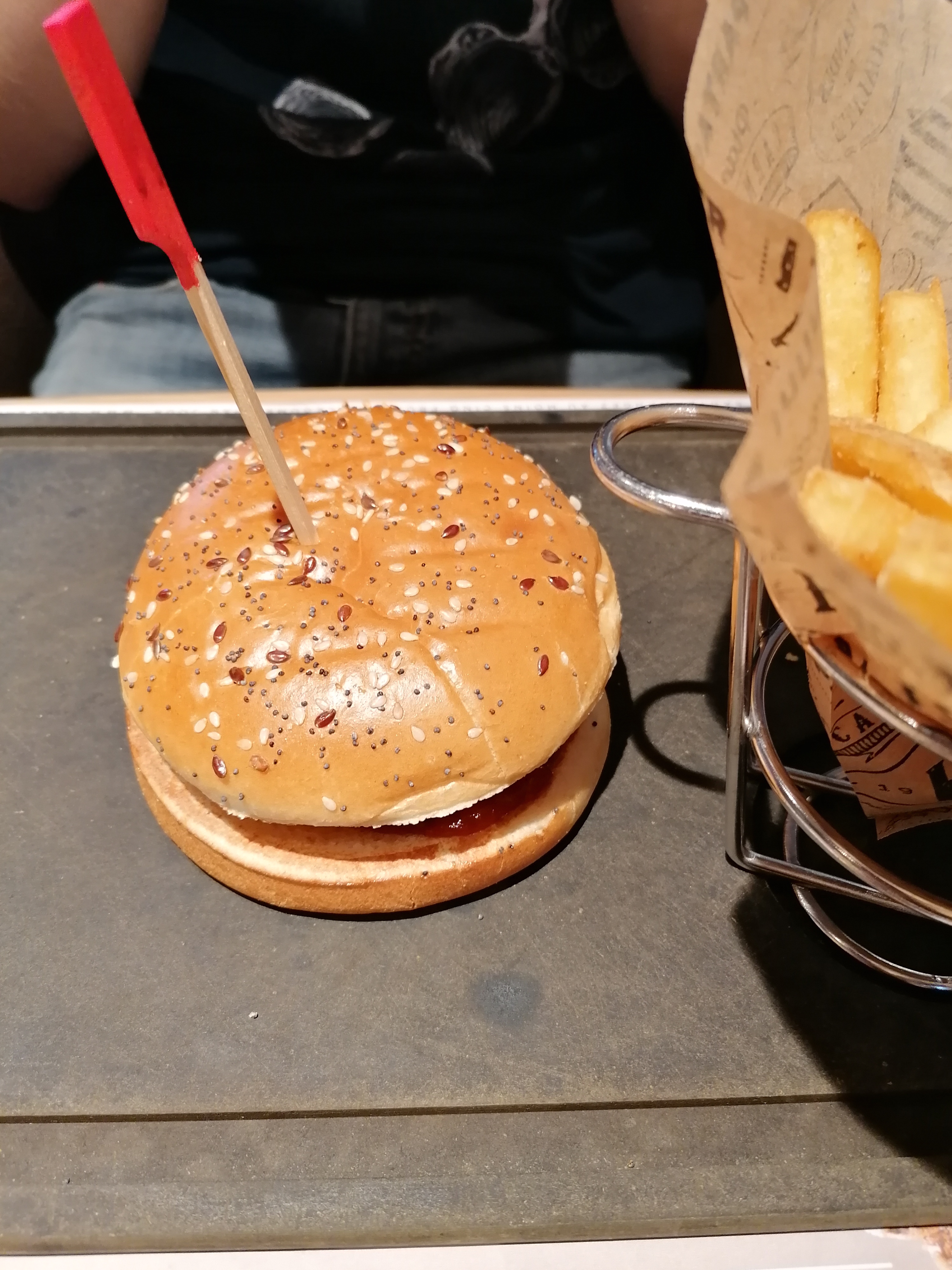 Le cadre est agréable mais la nourriture basique pour le prix un burger moyen et une petite frite