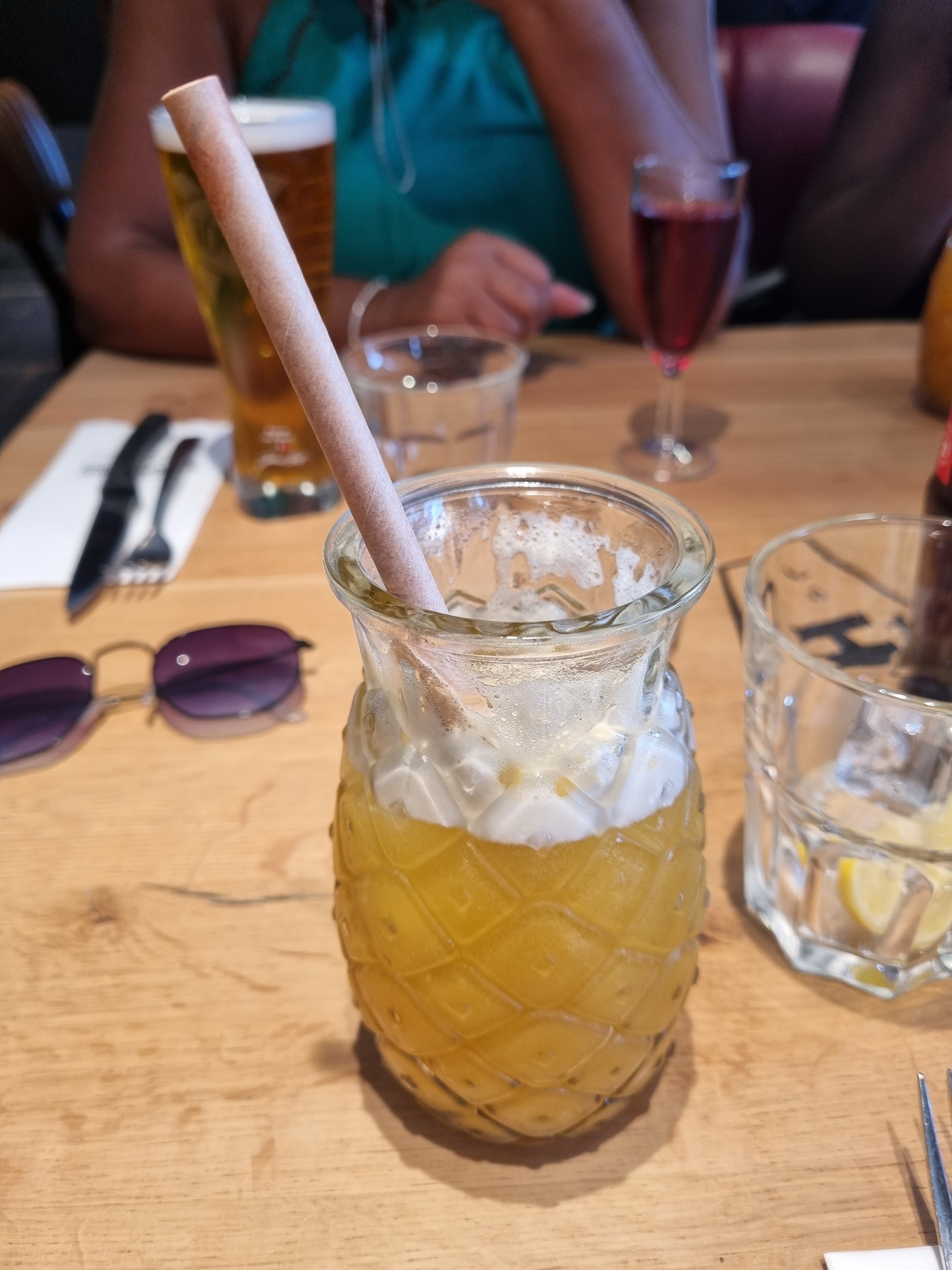Le service était excellent, les cocktails étaient faibles et pas les meilleurs. La brioche grillée était ok. La Pina Colada avait un goût extrêmement étrange, elle contenait de la noix de coco desséchée à l'intérieur, ce qui lui donnait une texture étrange.