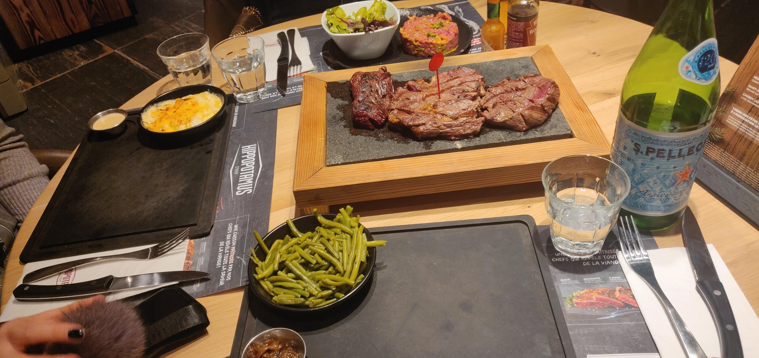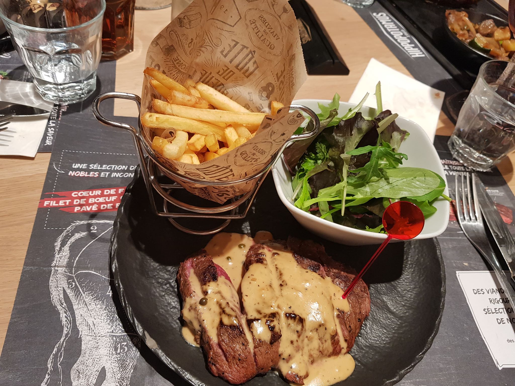 C'est très grand et très bruyant. Le service souriant mais long, et nous n'avons pas reçu ni nos boissons ni nos plats ni nos desserts en même temps. Pas très convivial. Viandes grasses, pavé ridicule, .....bref moyen pour un tarif habituel chez Hippo. On ne reviendra pas ici