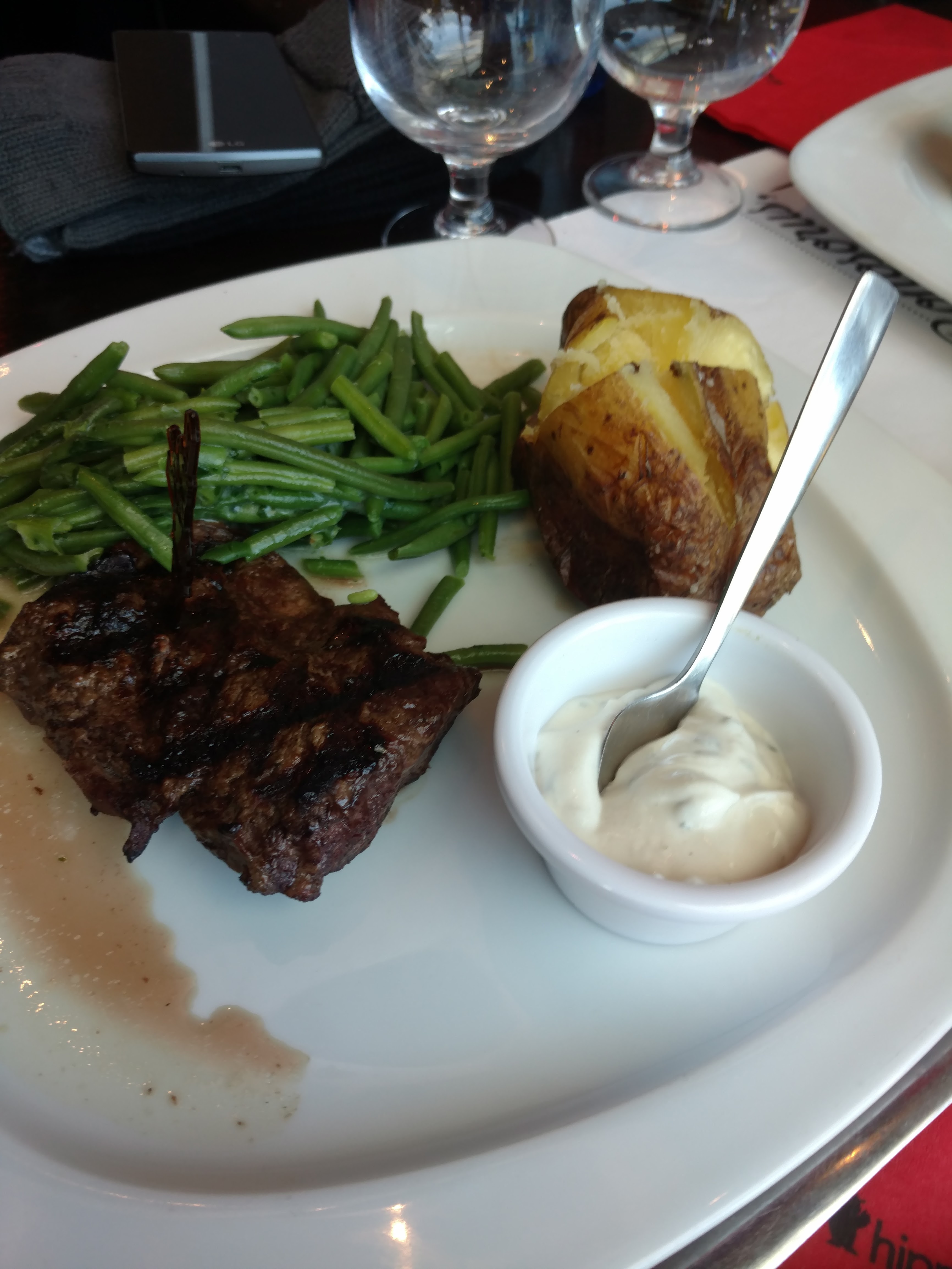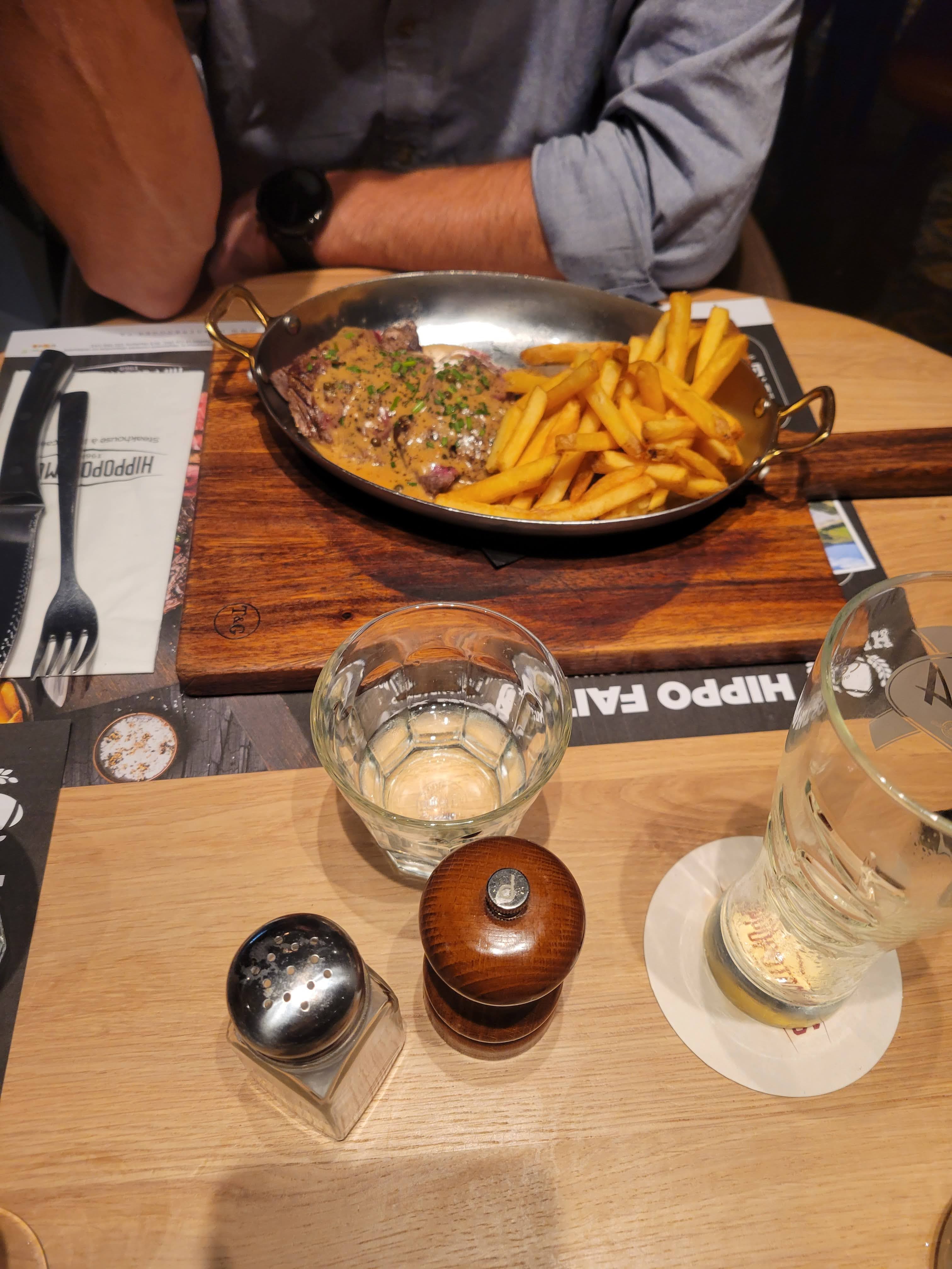 Bonne viande, heureusement pour un restaurant de viande. Plus aucune décoration évoquant ce sublime animal qu'est l'hippopotame, c'est bien dommage de renier à ce point cette merveille de la nature. Oui j'aime les hippos ! Super personnel, service rapide.