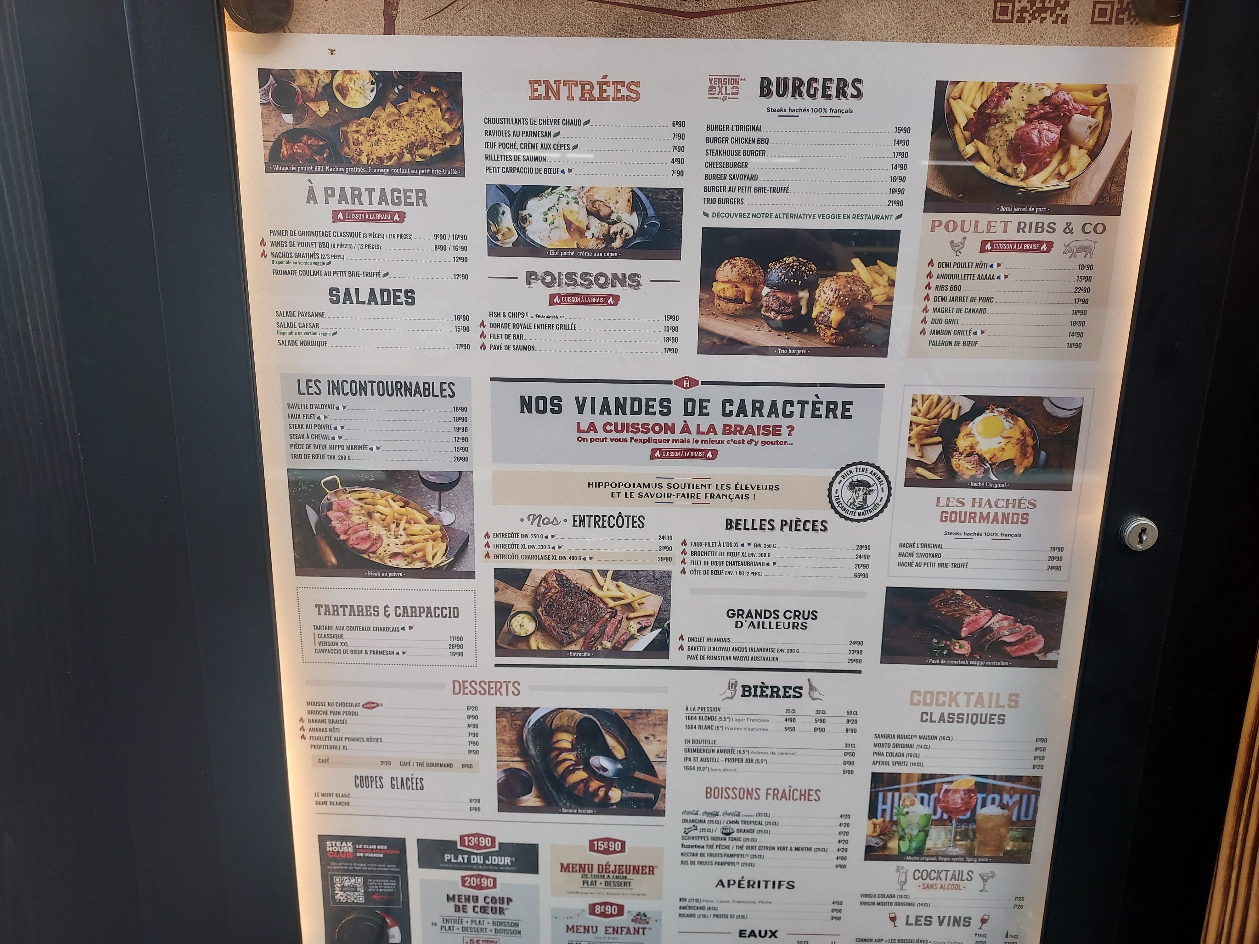 Un hippopotamus comme tous les autres. .... Mais avec un sentiment de comme à la maison un très bon accueil de l homme à la chemise grise Le service est rapide l ambiance sympa mais surtout 🥩🥓🍗🍖🍔🥩 les viandes au top tendres goûteuses la cuisson bleu saignant à point bien cuit est respectée parfaitement un vrai régal😋 🐟🍟 Pour les NON viandes le fish and chips est à conseiller 🍨🍦🍧🧁🍪🎂🍩☕ Les desserts sympas les cafés douceur gourmand au top seul déception le fondant au chocolat qui est terrible 🤩😋 formules café est là occasionnellement alors qui devrait être présent à l année tellement il est bon....🤩😋😥🤗fondant Nutella à la carte rien n avoir