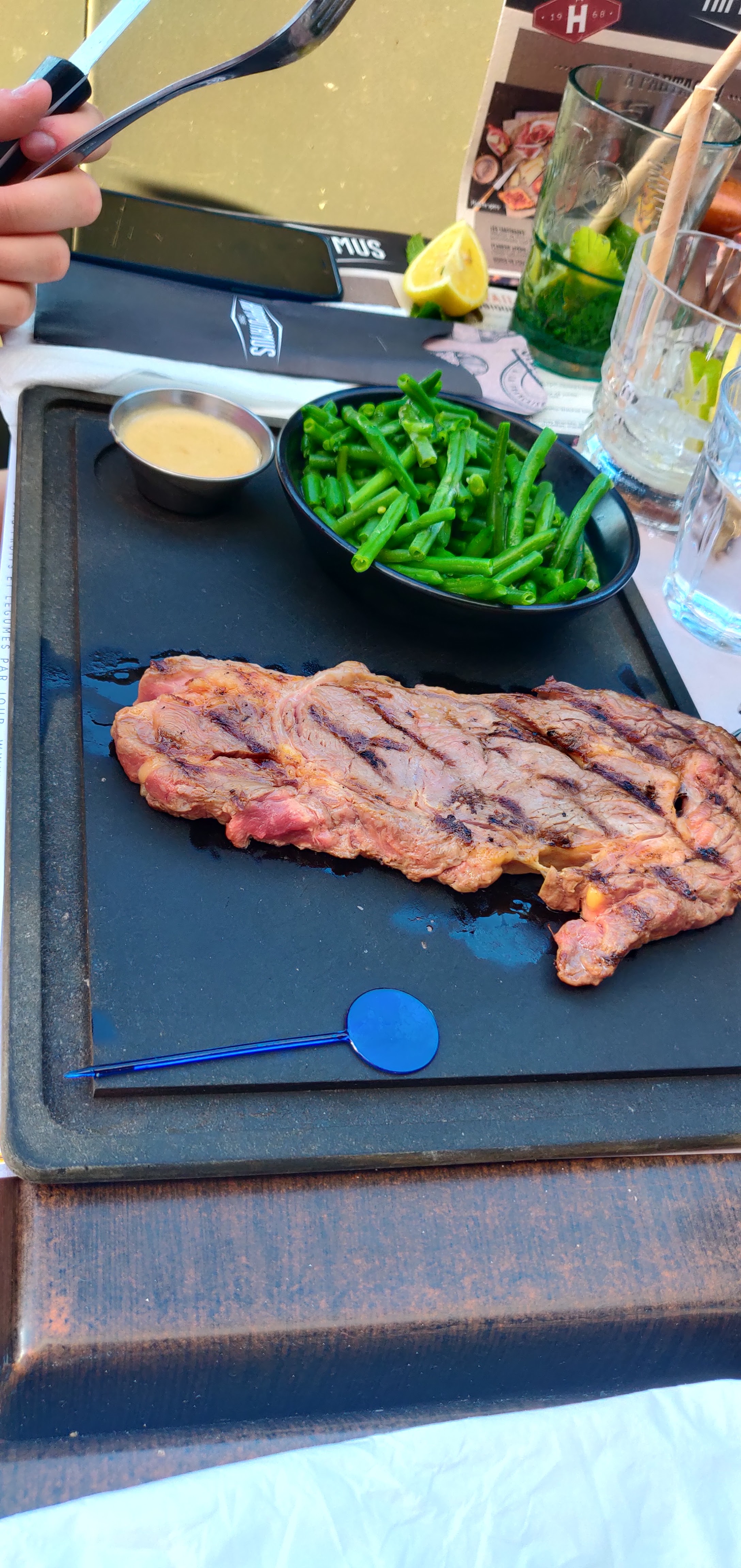 Très bonne surprise ! J’ai toujours été déçue à chaque fois que j’allais dans les chaînes hippopotamus, mais cette fois c’était différent ! Le rapport qualité prix est excellent! La viande était délicieuse et vraiment bien cuite ! Avec la sauce roquefort un délice ! C’était vraiment bien que l’on puisse choisir ce qu’on veut dans les accompagnements ( frites, haricots, légumes…) en plus beaucoup de produits sont produits en France et ça c’est un gros plus ! Le fait que ça soit ouvert en continue c’est top car on a pu manger à 15h. Dommage qu’il n’y ait pas de Clim car il faisait super chaud ! Globalement c’était un très bon repas !