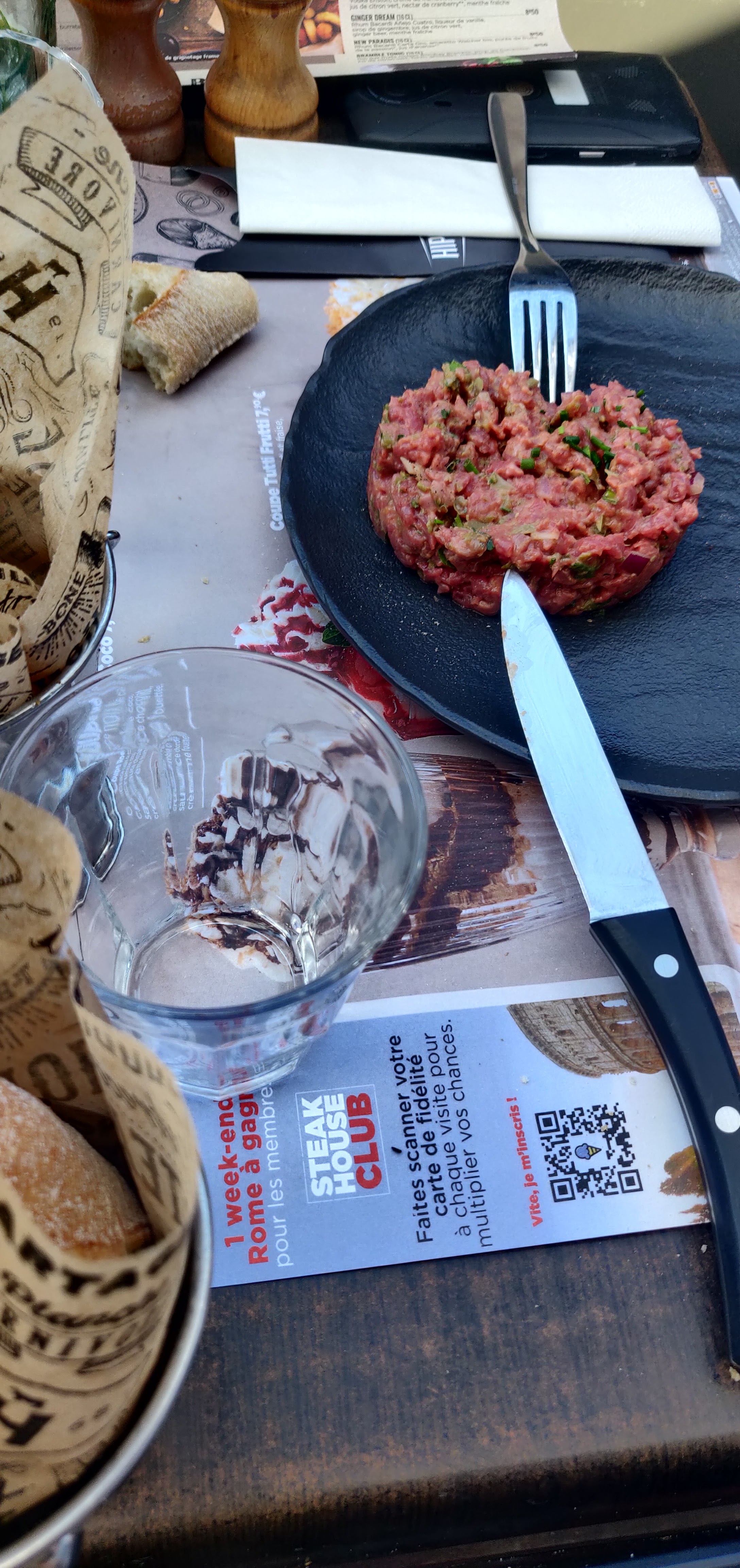 Personnellement si vous voulez manger une superbe viande dans un style Far West américain c'est le bon endroit et même pour ma part meilleur que Buffalo Grill. Ayant pris une brochette cuite à point avec des raviolis au parmesan en entrée et un Mont Blanc au dessert c'était un vrai régal ya pas à dire. Par contre ce resto est plutôt recommandé pour des gens qui ont de bonnes dents, ce qui est logique mais ce que j'ai quand même le plus aimé était les Ravioles. Ça fondait en bouche et on sentait le goût du fromage + la texture des ravioles. Et puis la brochette XL que j'ai prise + la sauce béarnaise c'est incroyable. Et puis le Mont Blanc, alors étant un grand fan du mélange crème de marron + merringue, je ne pouvais pas demander mieux. Et surtout le service il était incroyable. Bonne ambiance, bon service, pas de mauvaise fréquentation (mauvaise clientèle) et par dessous tout serveurs/euses aimables