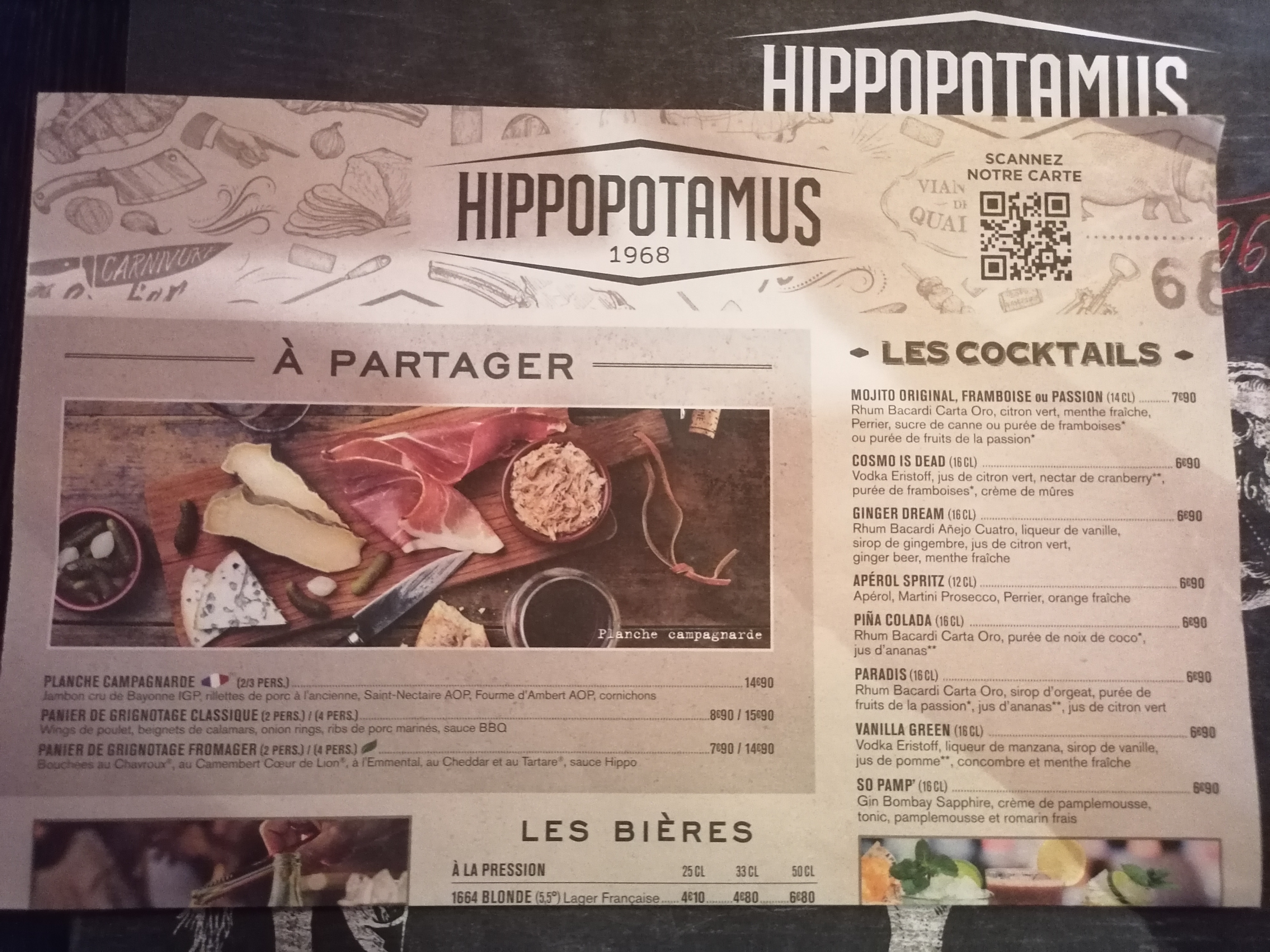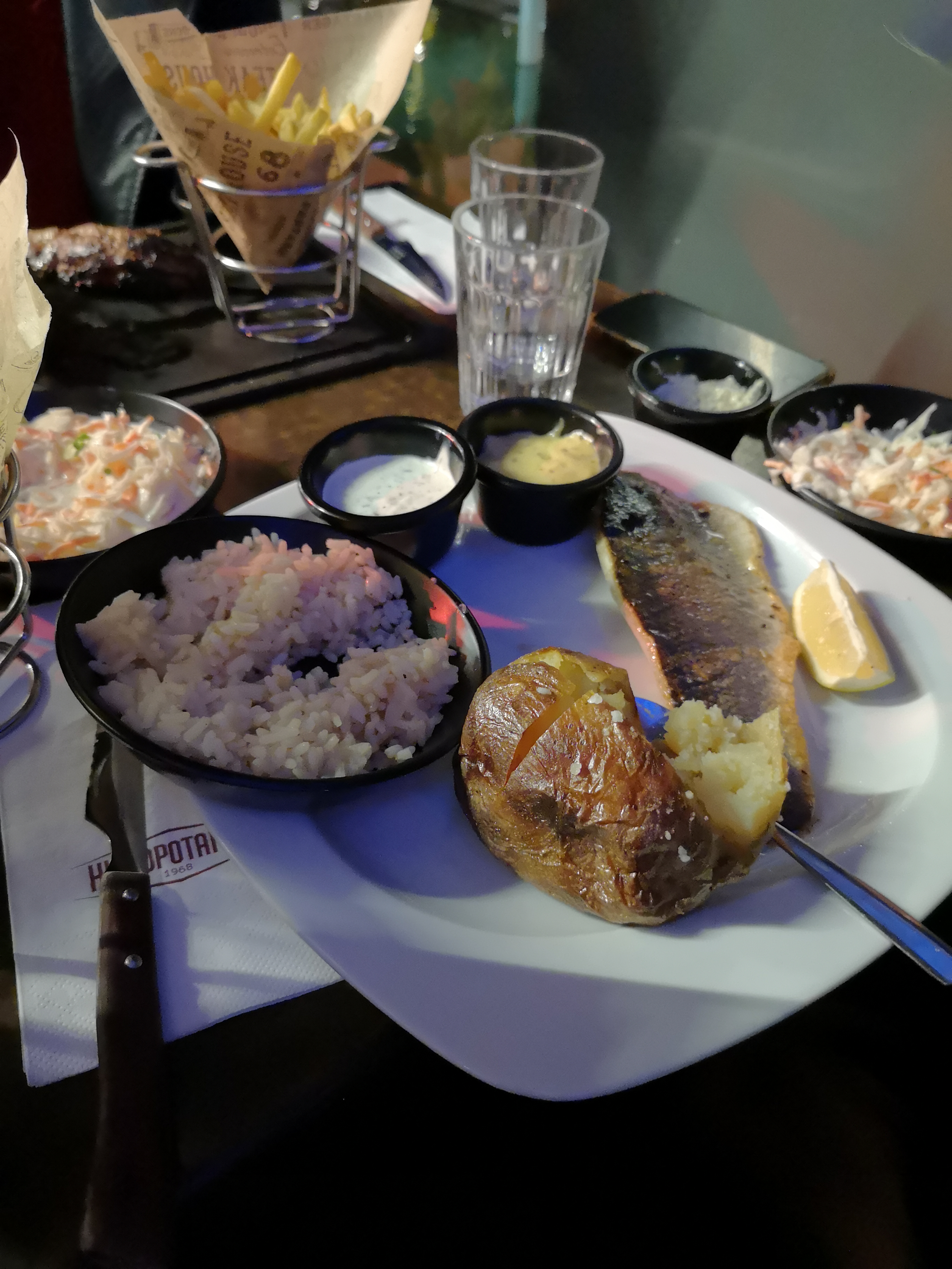 Super restaurant, l’un des seuls Hippopotamus encore ouvert, et on est bien content. Comme les restaurants de cette chaîne, un large choix de plat, il y en a pour tout les goûts : de la viande rouge de la viande blanche et même du poisson. Tout est très bon comme souvent, je recommande la sangria faite maison.