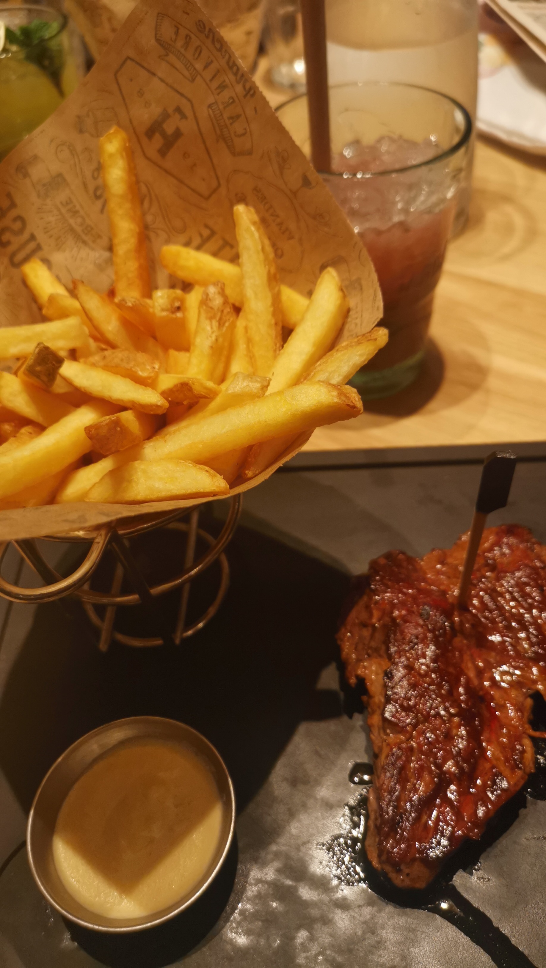 Je vous recommande la brochette de poulet en plat et le mi-cuit en dessert. Vous ne serez pas déçus! Pas trop fan des cocktails sans alcool par contre.