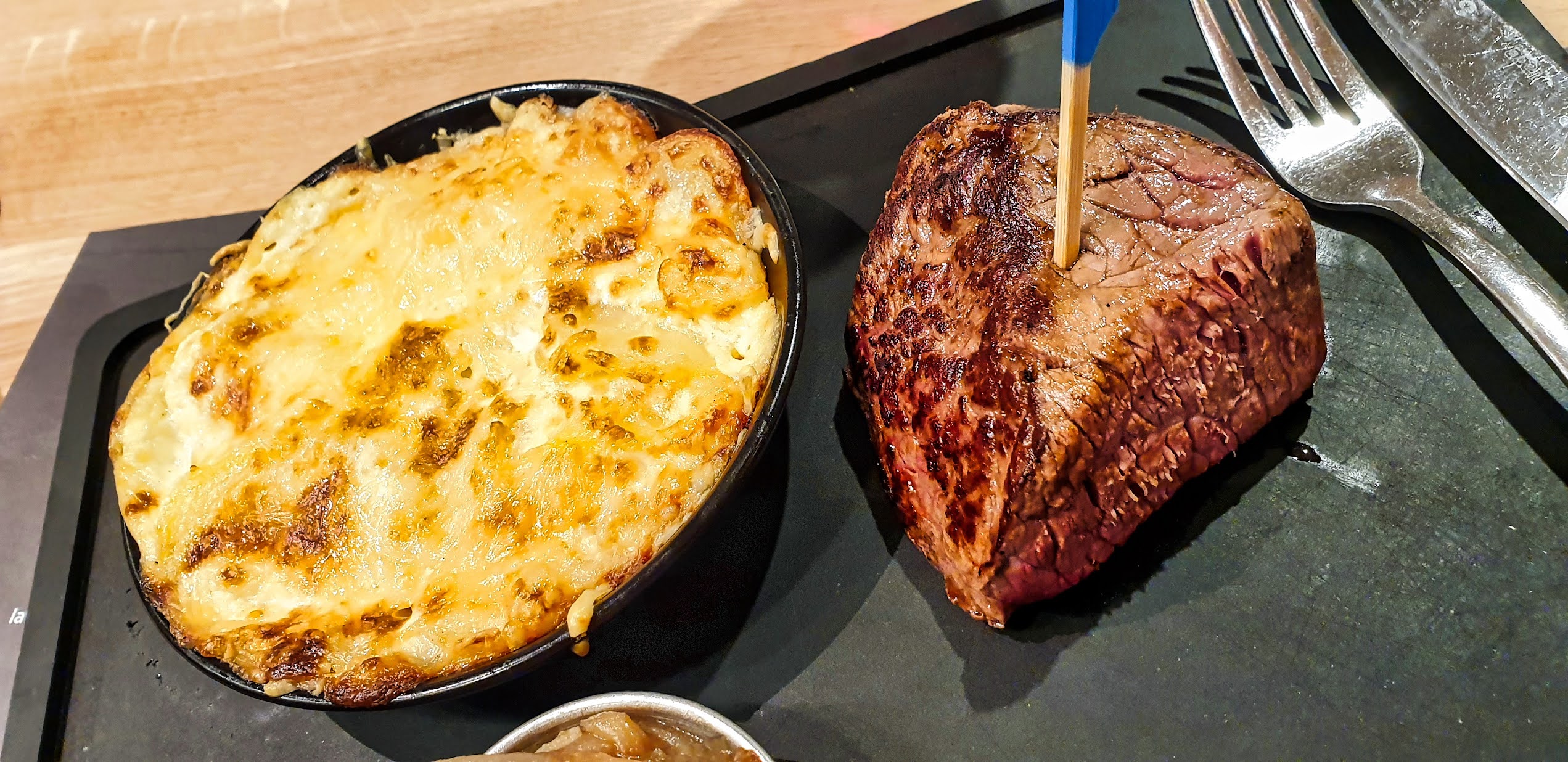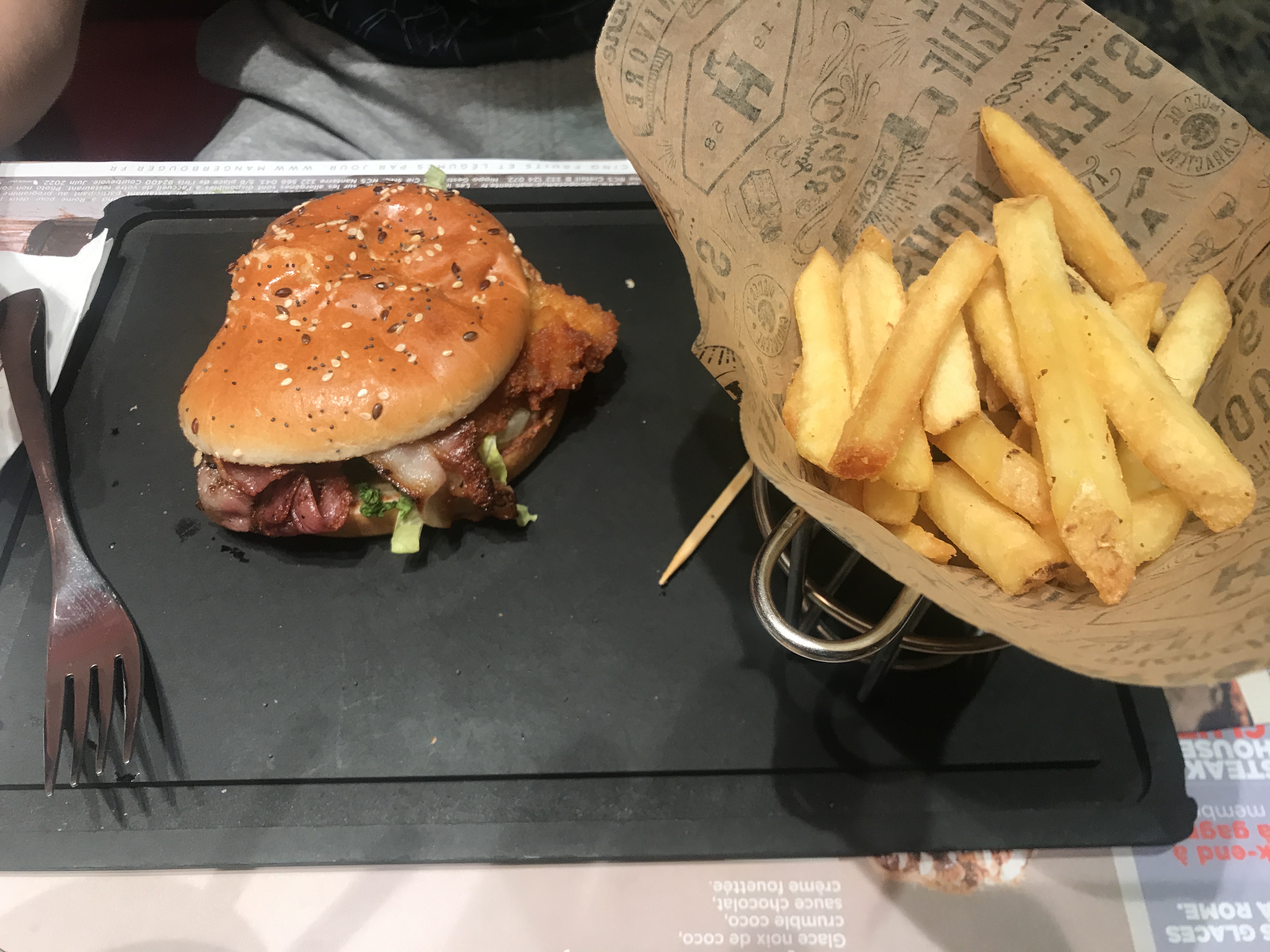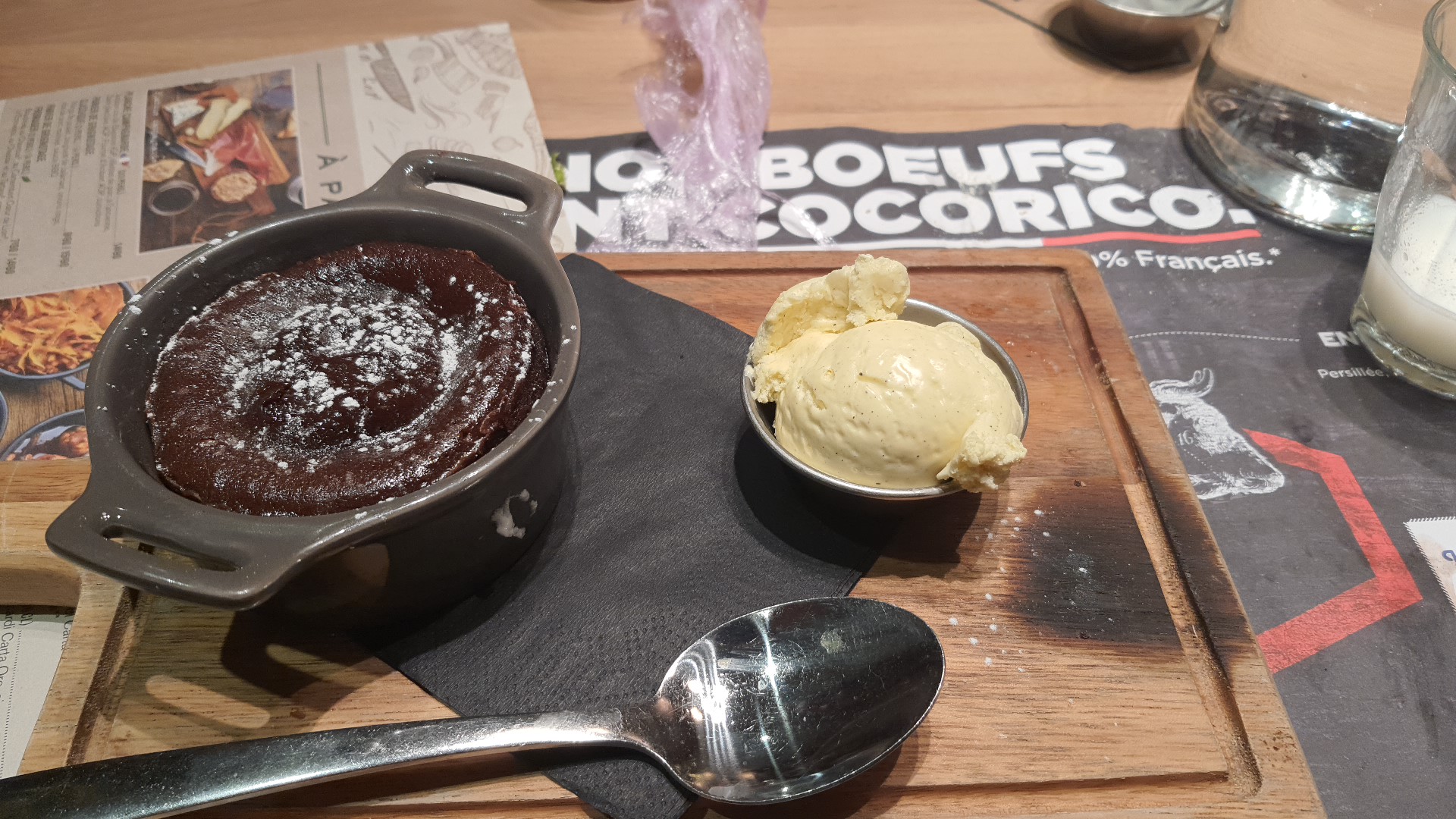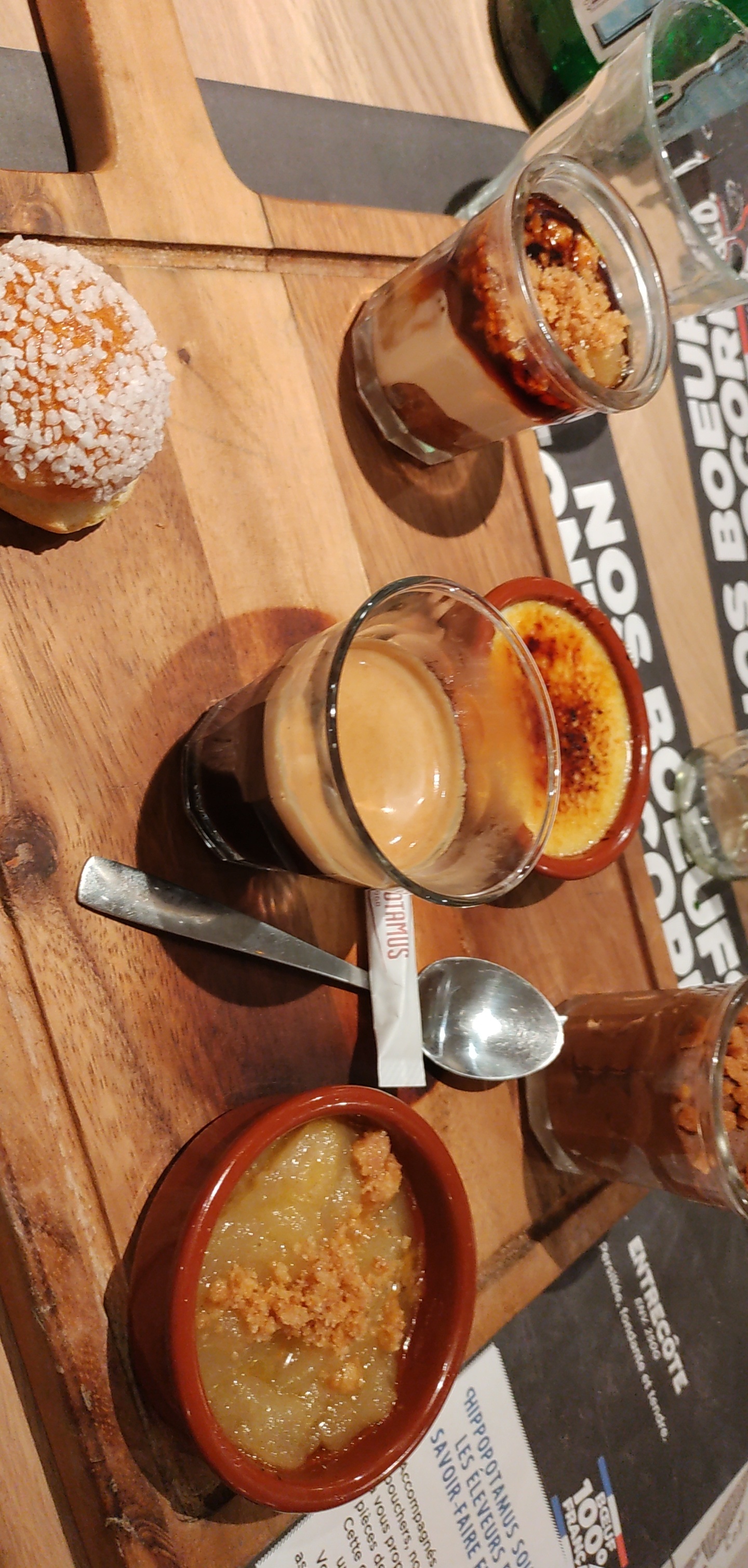 Pas terrible....cher pour ce que s'est...la viande bonne mais pas beaucoup, les frites petite quantité et la glace du vol ....une boule de café avec le reste de chantilly, c'est à dire 60% de chantilly et les couteaux une horreur 3 pour à peu près couper la viande