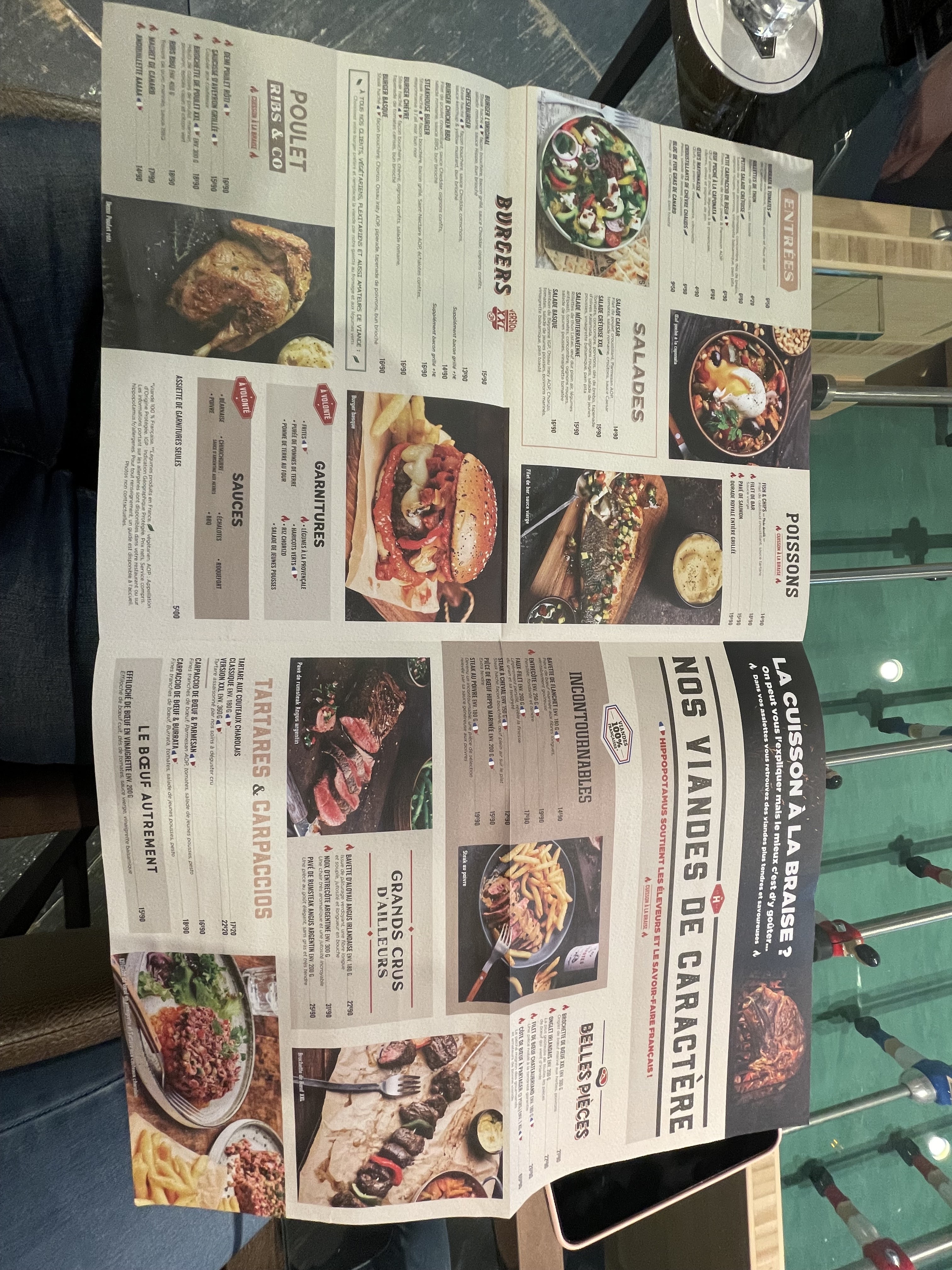J’avais écris une review mais elle a été supprimée alors par flemme je vais revenir sur les points positifs et négatifs. Positif : - Bon - table super sympa (cf photo) - bonne ambiance - jolie déco Négatif : - oubli de ma sauce pour les frites - Serveuse vraiment insistante pour consommer - portions très correctes mais j’aurais aimé un peu plus pour 17€ Globalement je recommande !