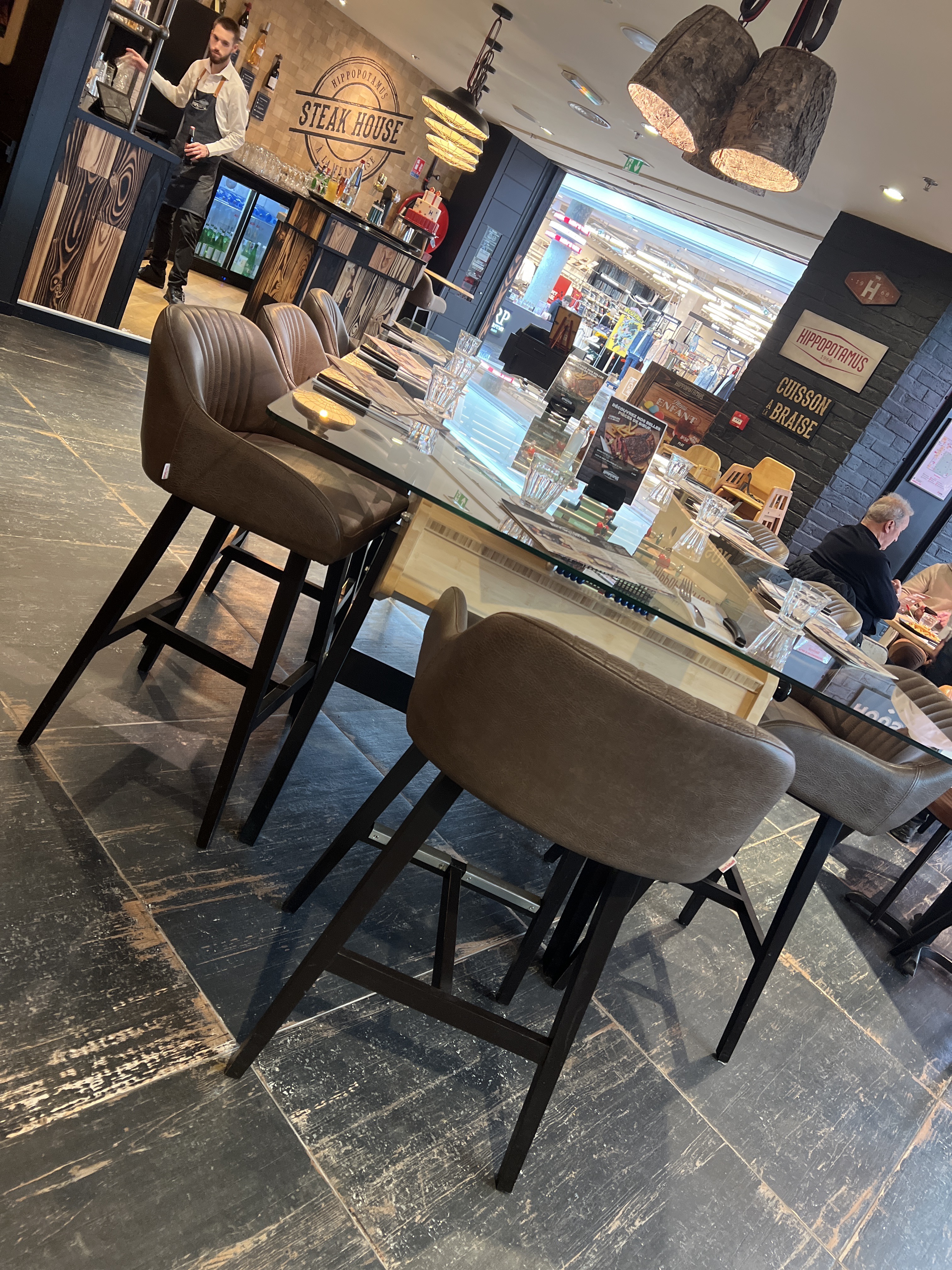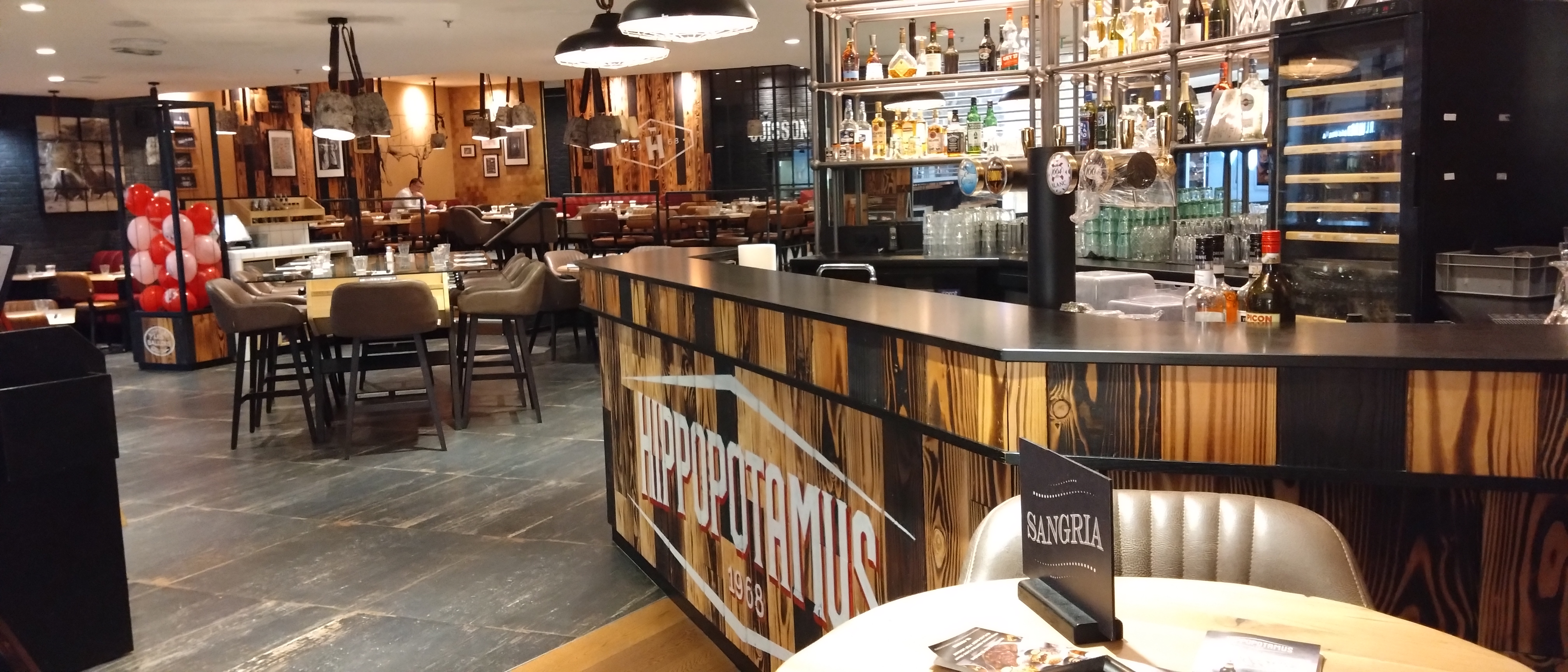J’ai mangé ce midi dans ce Hippopotamus. Une table sale, j’ai demandé discrètement qu’elle soit nettoyé. Nous avons reçu l’apéritif après notre assiette !?!?!?! Un personnel peu aimable et pas du tout souriant qui d’ailleurs ignore nos appels ????!!!!!! Et le comble, une viande ultra ferme et des couteaux pas aiguisés ! A fuir absolument, à moins d’une considérable amélioration. J’ose y croire !