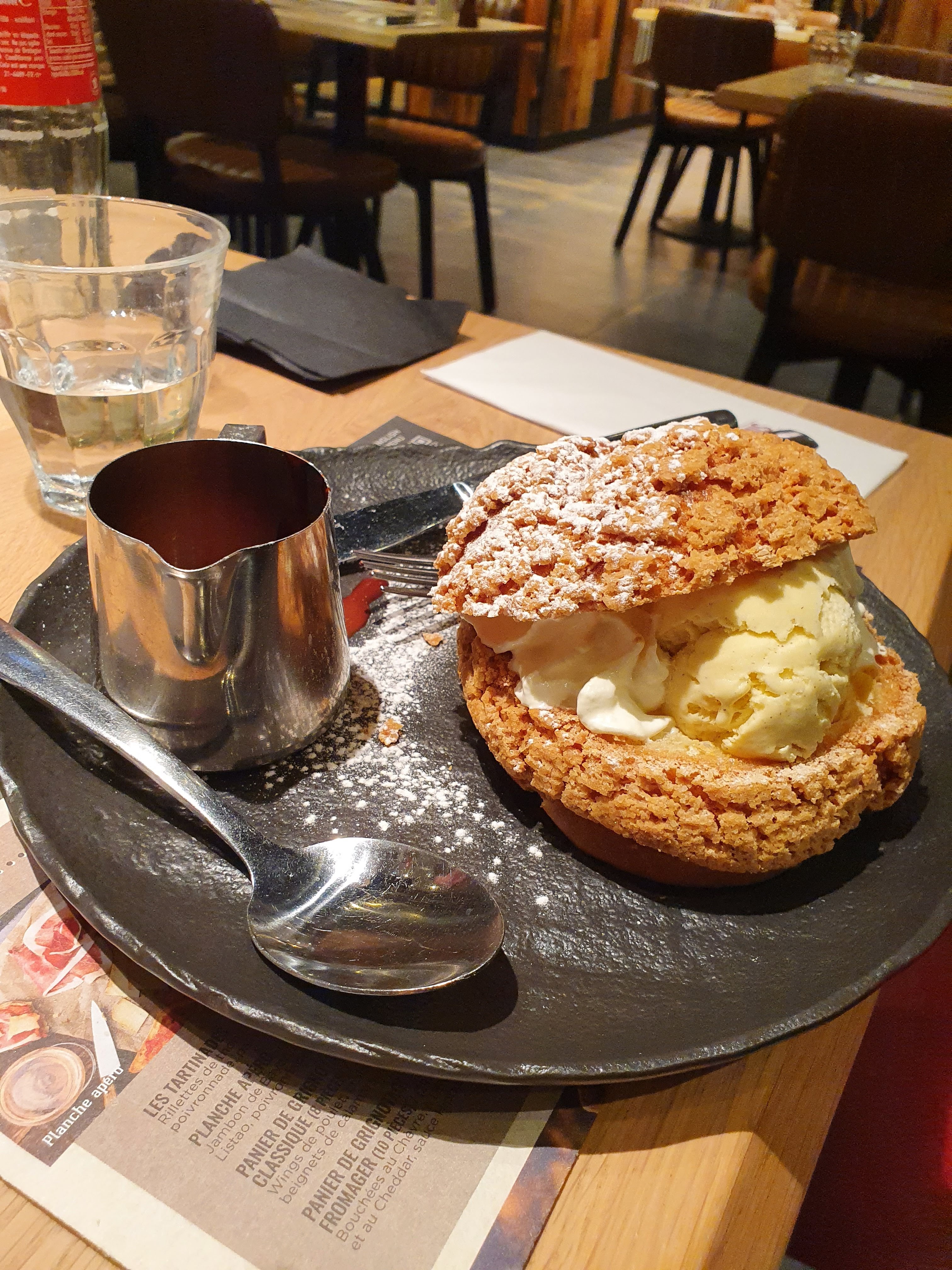 Burger steack house avec cuisson bleu respectée : très bon Et en dessert brioche perdue ! ^^
