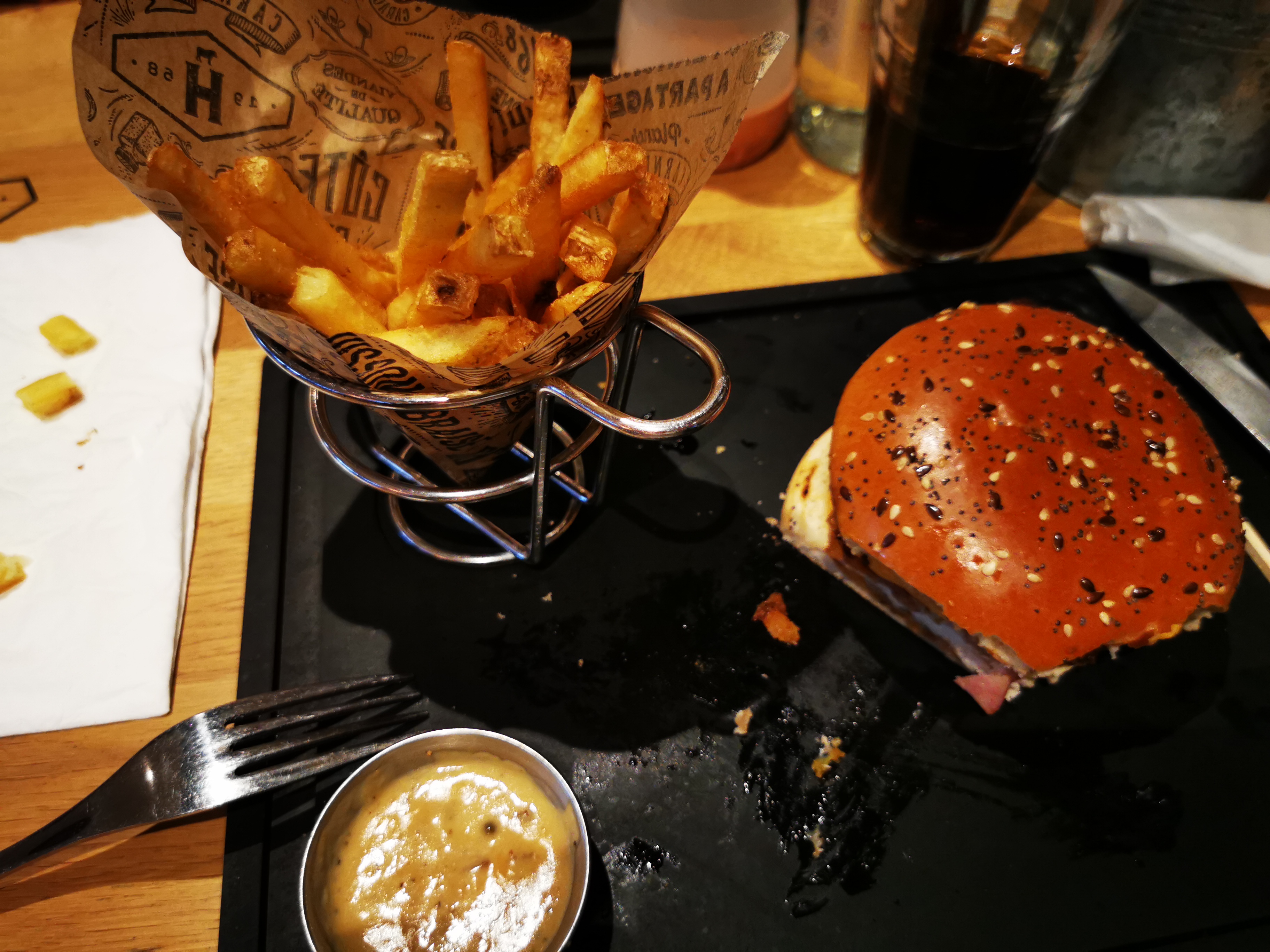 Franchement déçus, pourtant nous étions déjà venus... Concernant l'accueil, 0, la seule personne qui nous ai dit bonjour est celle qui nous a placés, la dame du bar, gentille, serviable, celle qui nous ramène les boissons n'a pas dit bonjour, l'autre et heureusement que nous n'avons pas eu à faire à elle, n'avait clairement pas envie de travailler. Et le manager, hallucinant, a passé sa soirée accoudé au bar, il passe à côté et ne te demande même pas comment ça se passe. Par contre tu vois direct que les grandes tablées sont plus intéressantes... Au niveau de la cuisine, c'est bon rien à dire mais qu'est ce c'est triste ! Niveau quantité et présentation, ça ne mérite clairement pas le prix demandé (16.90 pour ce burger) On voit clairement le profit en restreignant les quantités... Honnêtement nous ne reviendrons pas et à voir les commentaires récents nous ne sommes pas les seuls...