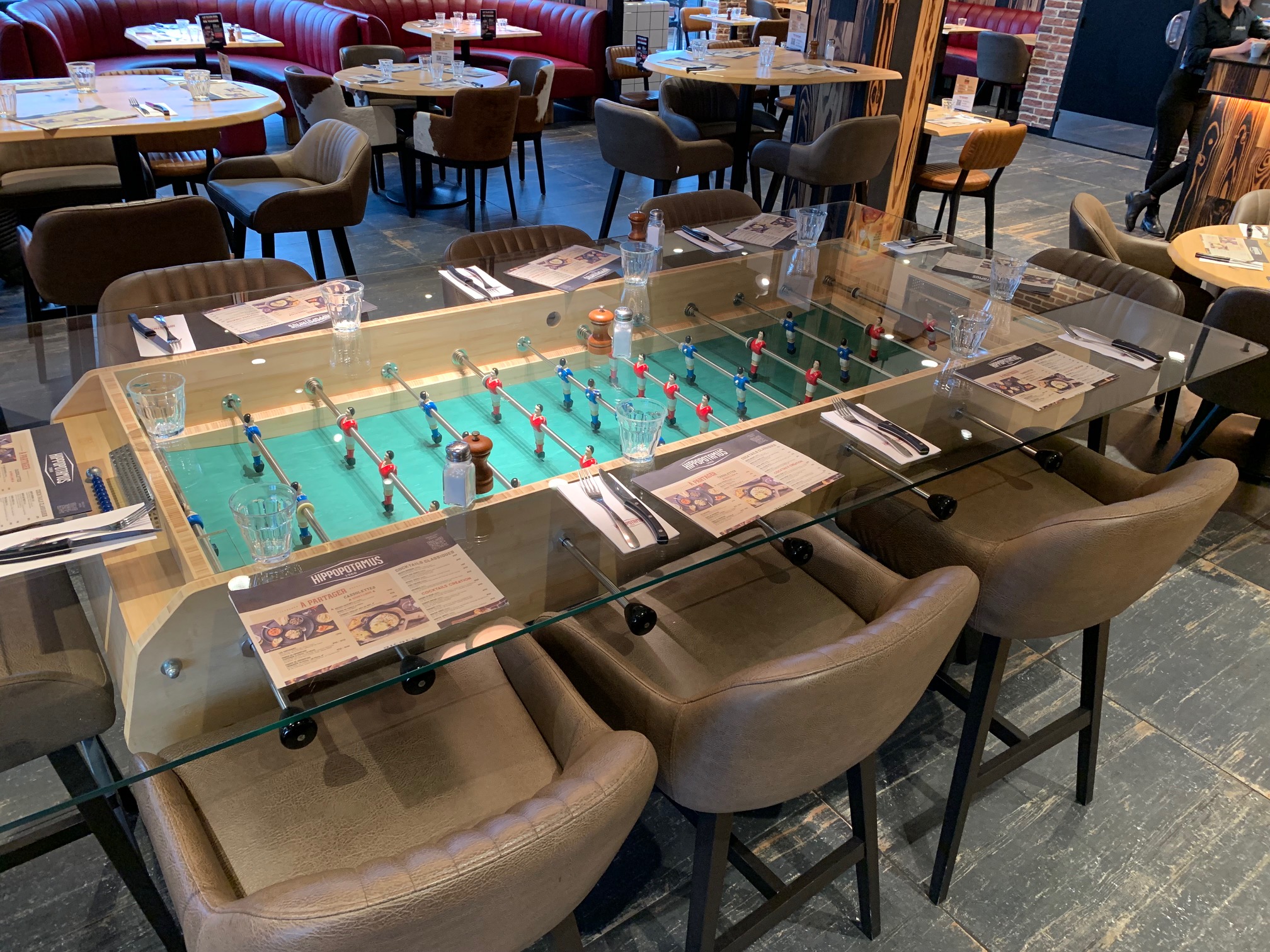 Bonne accueil et une belle carte. On y passe toujours un bon moment convivial. Pour les amateurs de viande (bœuf, poulet, canard... ) sans oublier les desserts XXL... On a testé la table baby-foot... au top ! Pour 6 personnes c'est fou rire assuré. Les plats sont toujours bons et bien cuits. La carte des desserts et des boissons est très complète. Tout le monde y trouve son compte.
