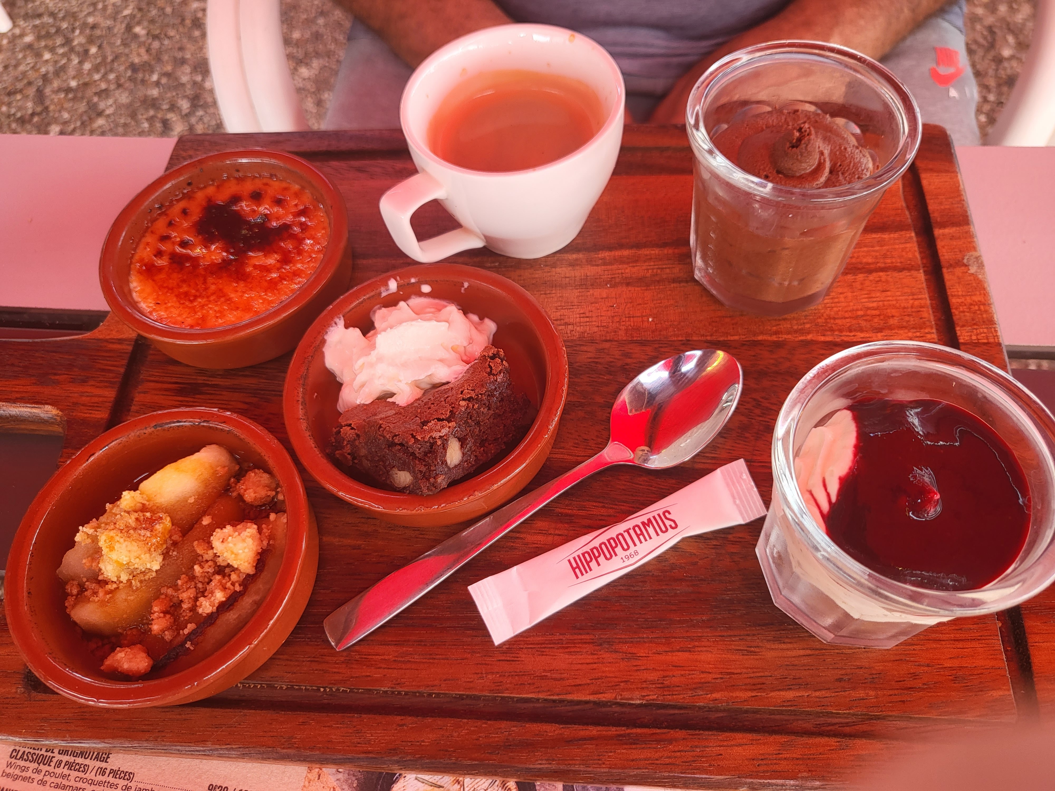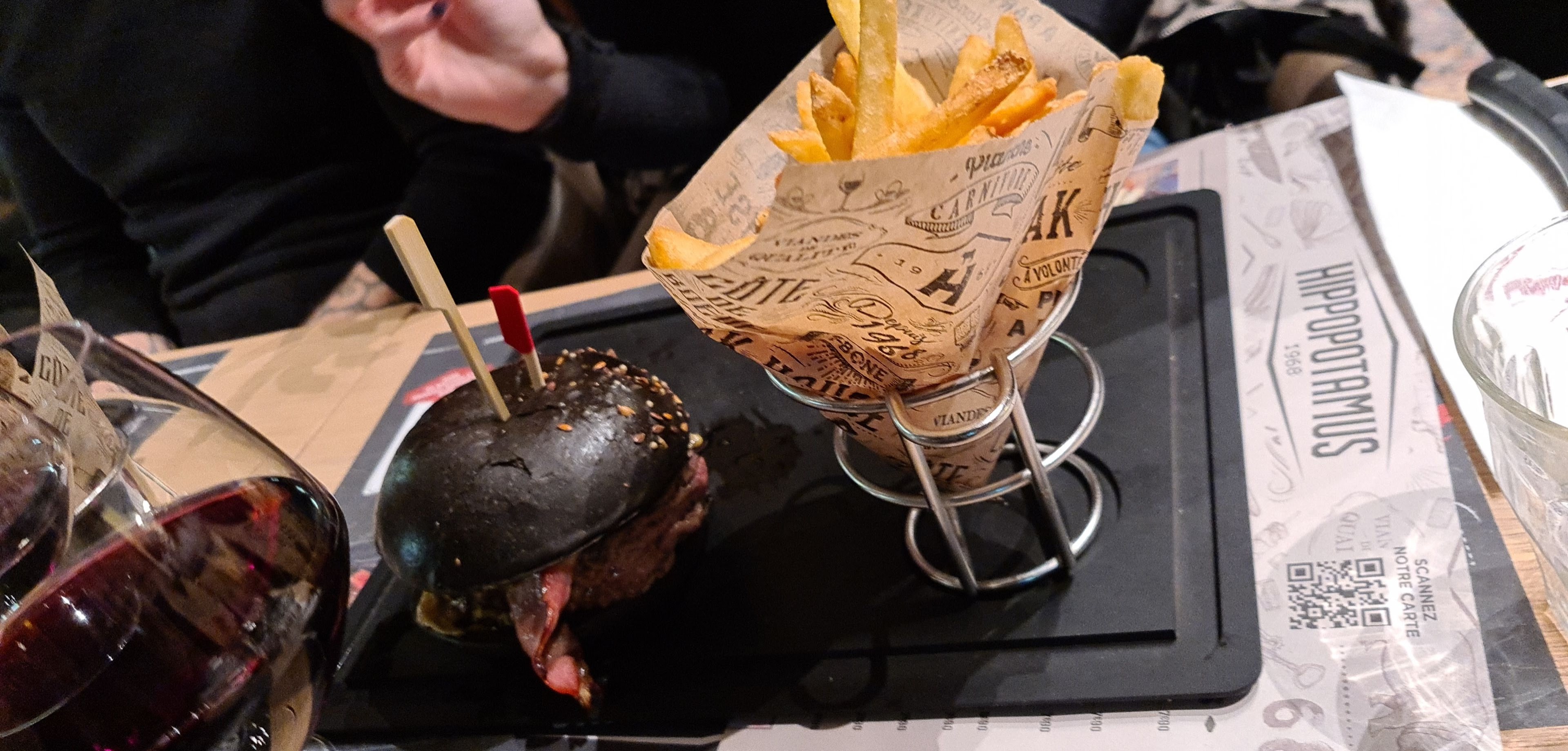 Première expérience chez Hippopotamus, qui sera aussi la dernière. A l'apéro je commande un américano, 7€ quand même. Dose un peu chiche, et surtout, sans me demander mon avis, servi sans glaçon !!! Mauvais départ... En suivant, un onglet angus à 25€. Viande très nerveuse servie avec des frites immangeables, et un couteau à lame lisse et du poivre moulu, comme à la cantine. je demande un couteau à steack au serveur qui me répond qu'ils n'en ont pas. Je rêve !!! Cher, pas bon, mal servi, passez votre chemin.