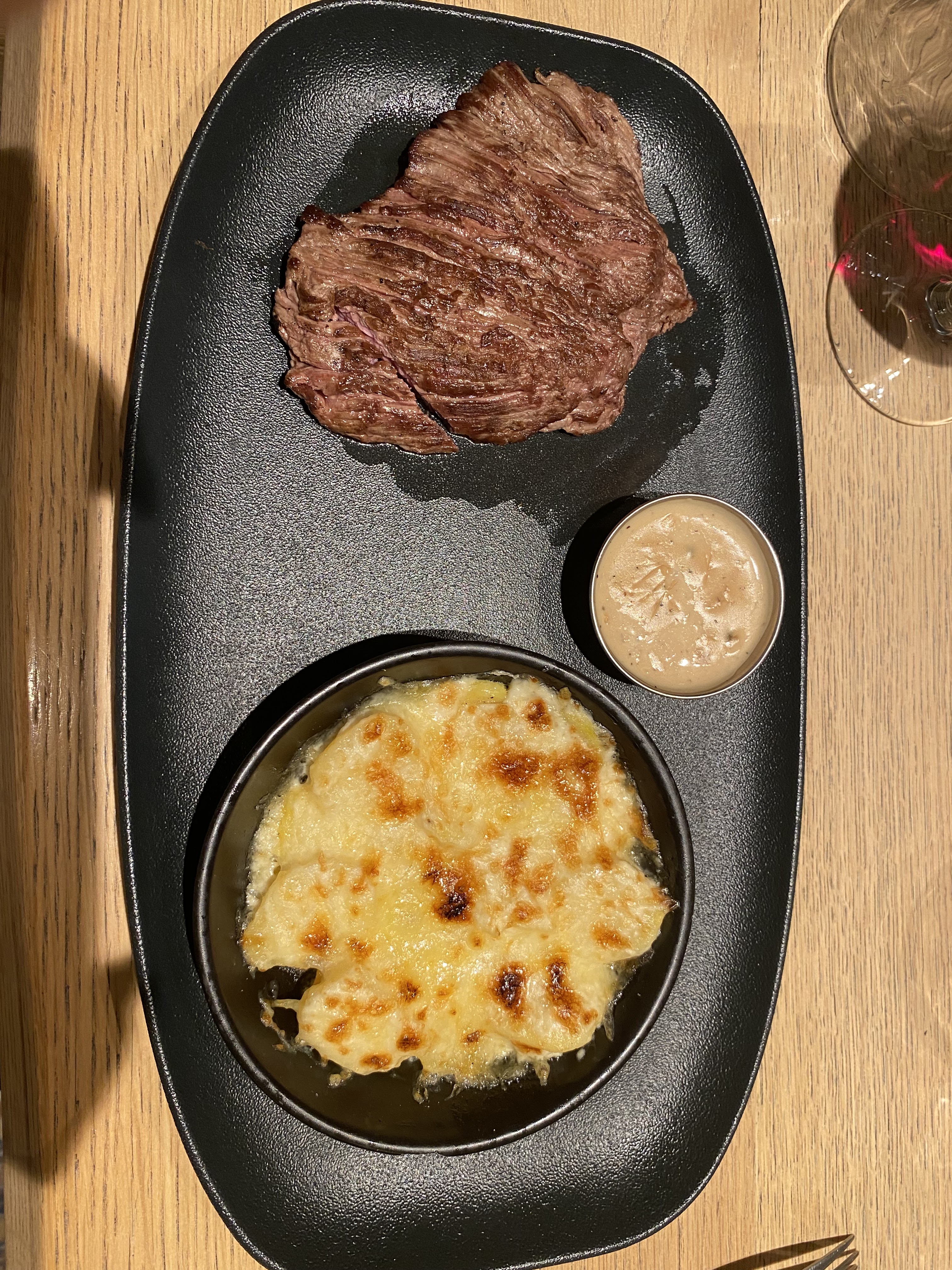 Excellent Pour les amoureux de la bonne viande. Bavette de Flanchet marinée un vrais régal. Faut filet très fondant, le gratin dauphinois parfait. Une vraie mousse au chocolat.