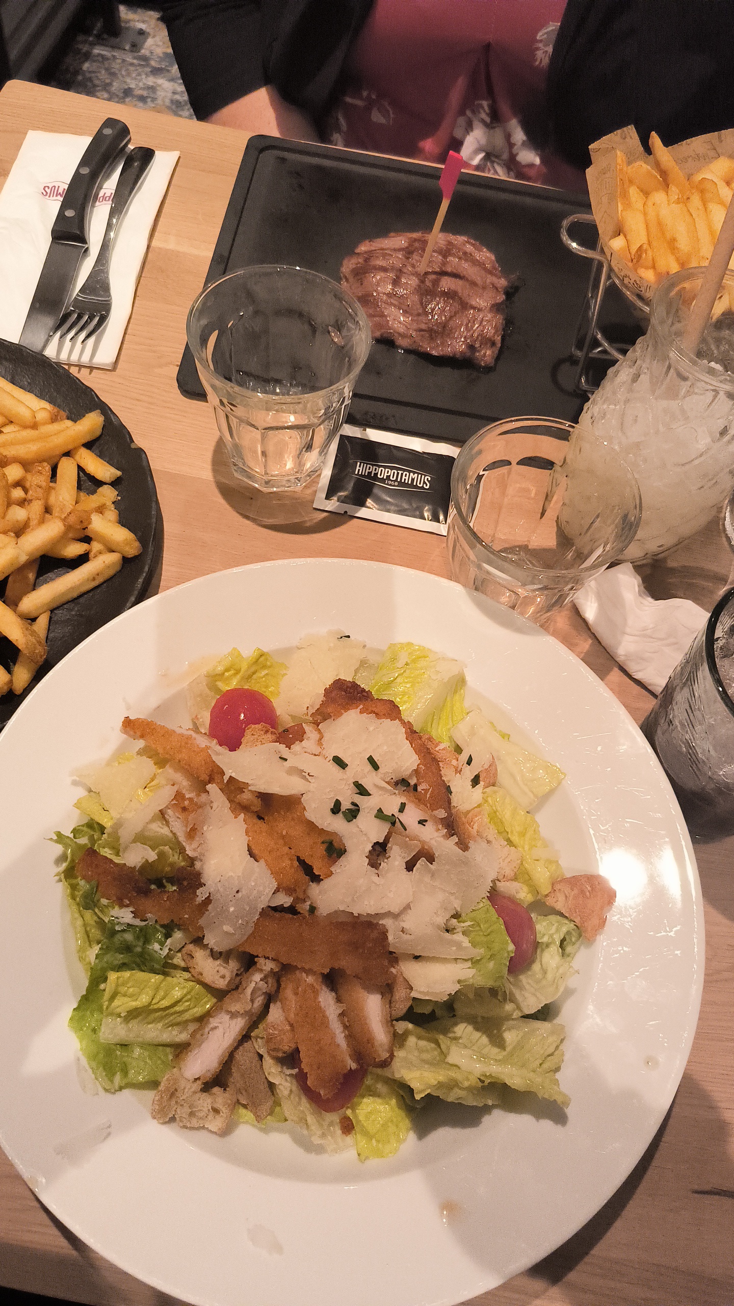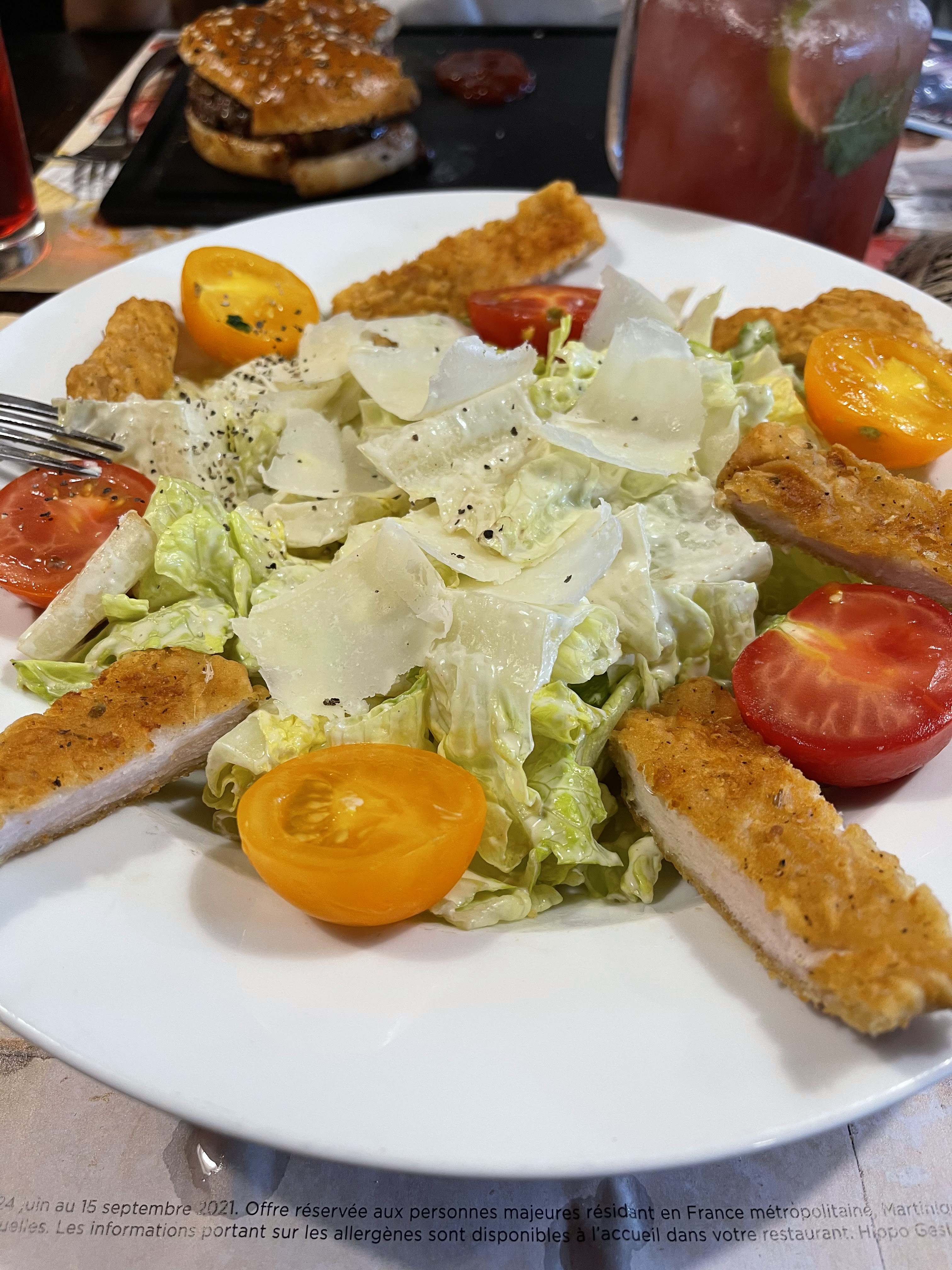 J’ai été agréablement surpris par la qualité de la viande ( bonne viande à mon goût, tendre à souhait) mais j’ai été déçu par la salade caesar que j’ai trouvé un peu pauvre en ingrédients. Le menu enfant est un vrai menu enfant et les boissons sont correctes.