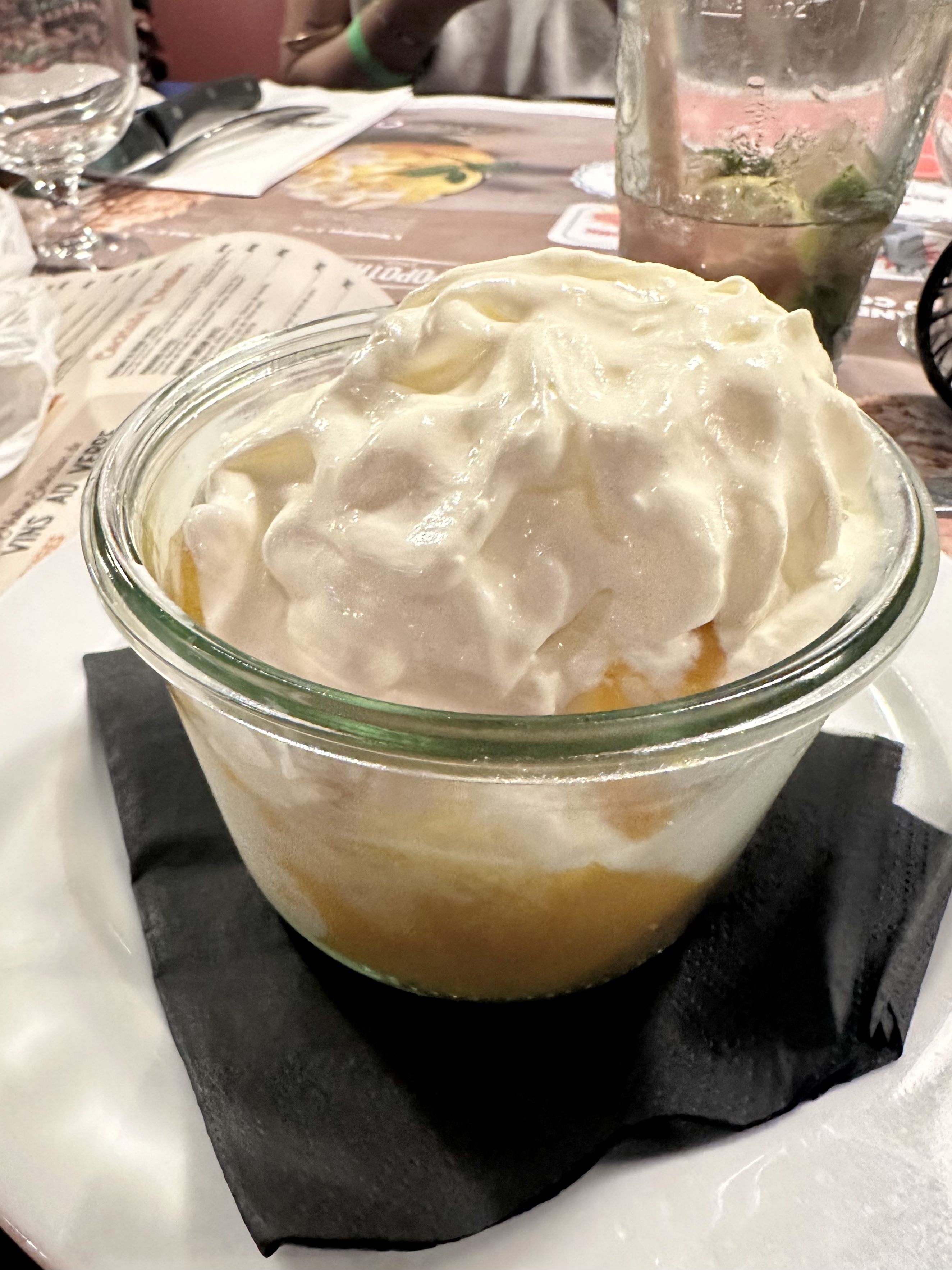 Le restaurant est accueillant , l'équipe est agréable et le service est attentif. Le dessert est décevant. Glace avec de la chantilly en bombe du commerce. Dommage.