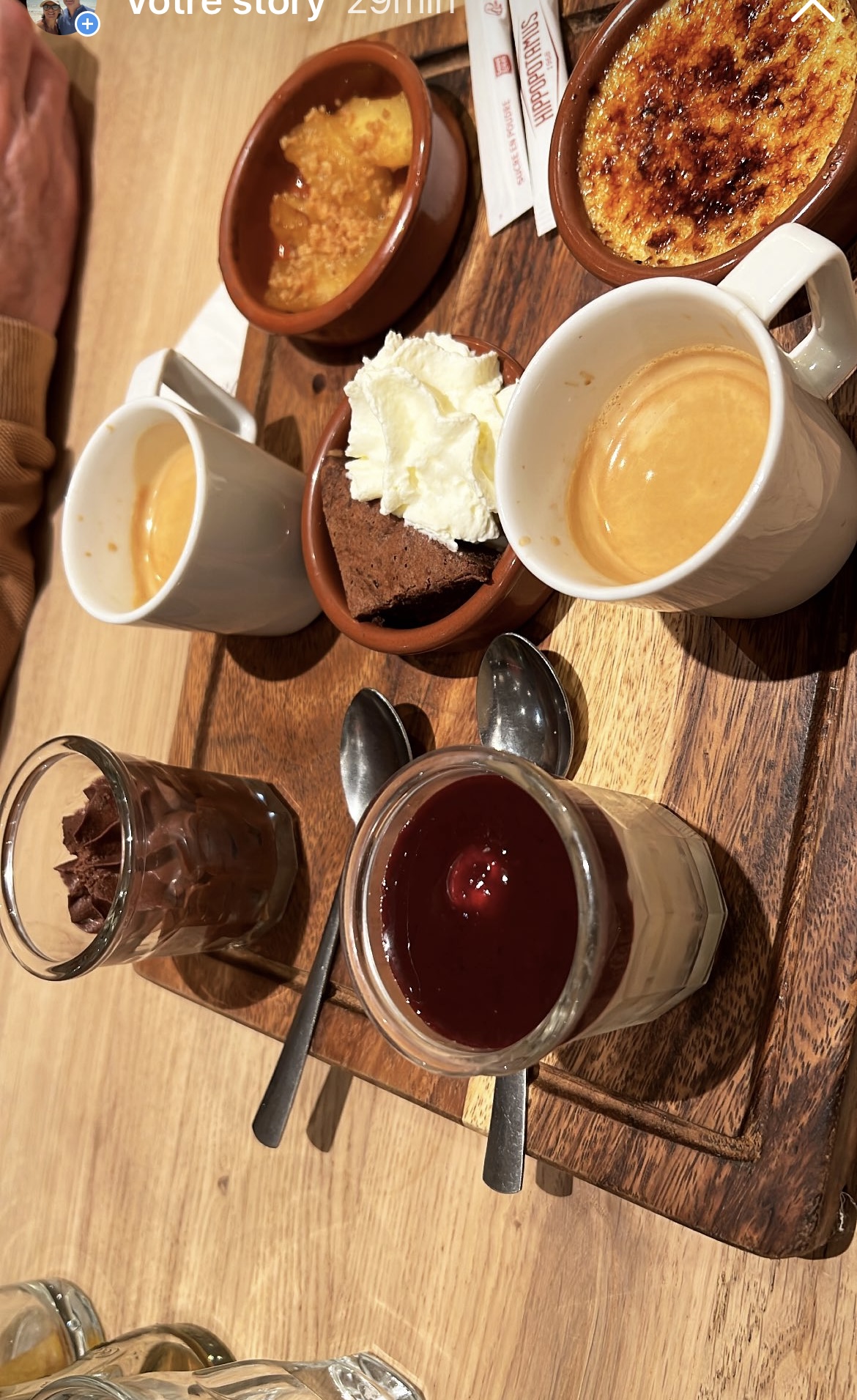 Samedi 25 mai à midi nous sommes allés manger plat correcte mais par contre au moment du dessert mousse au chocolat douteuse après 4 cuillère j’ai signaler au serveur et effectivement la mousse au chocolat était compacte / épaisse / limite farineuse… Bilan malade depuis hier ! Déçu d’avoir était servi alors que déjà visuellement il y’avait quelque chose de louche . Ce qui concerne le temps de prise de la commande en suite être servie et pour finir nous demander le dessert c’est extrêmement long dommage