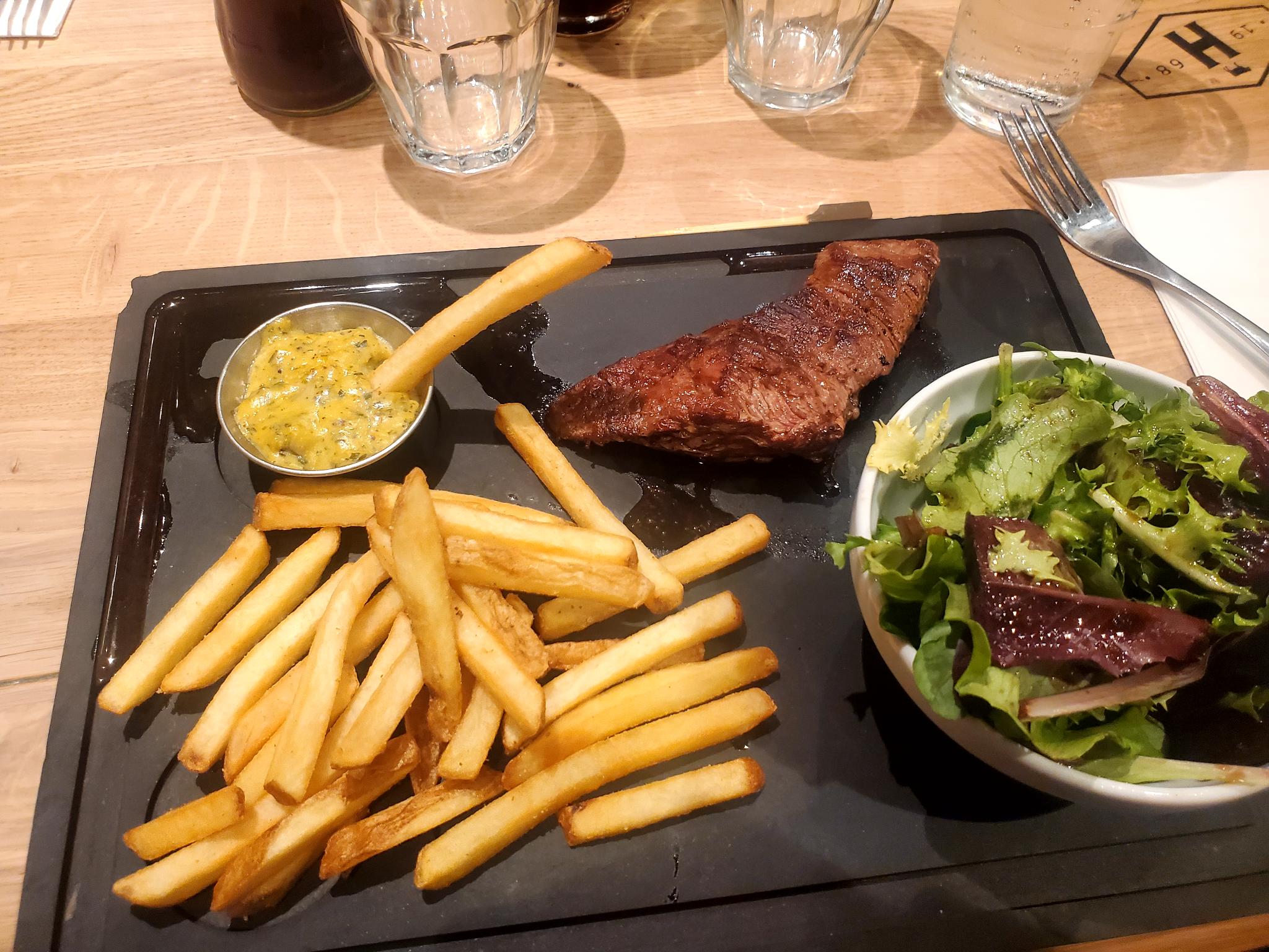 Une expérience oubliable.. un steak minuscule, portion de frites ridicules qui ressemblent à celles du Mcdo. Je trouvais que c'était cher pour ce que c'était. 27euros je les aurais bien mis dans un meilleur restaurant. Je n'y retournerai pas. Je mets 2 étoiles car le serveur relève la note sympa et souriant.