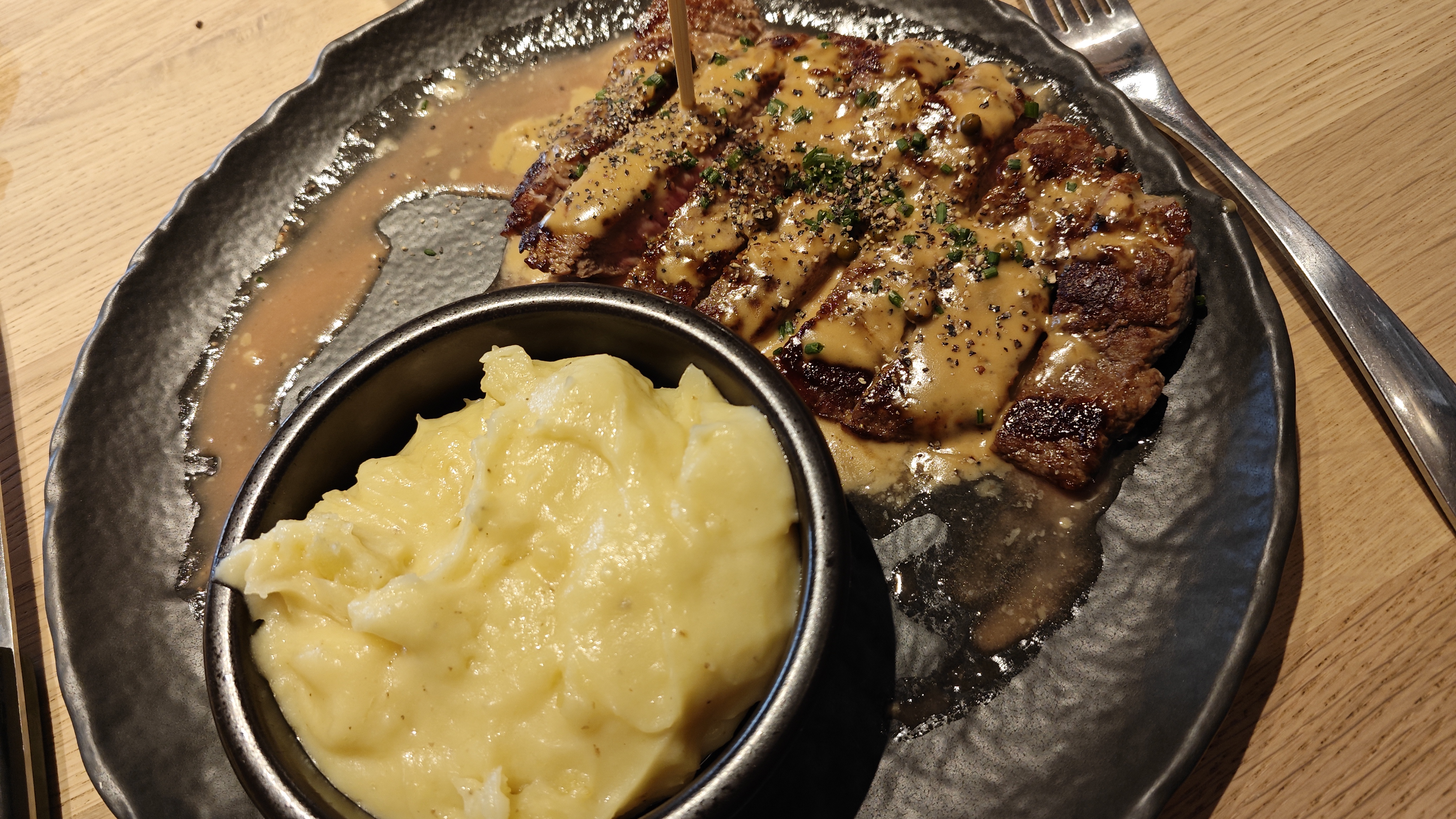 Service au top Bœuf sauce poivre excellent cuisson parfaite, viande tendre Chef top Je recommande