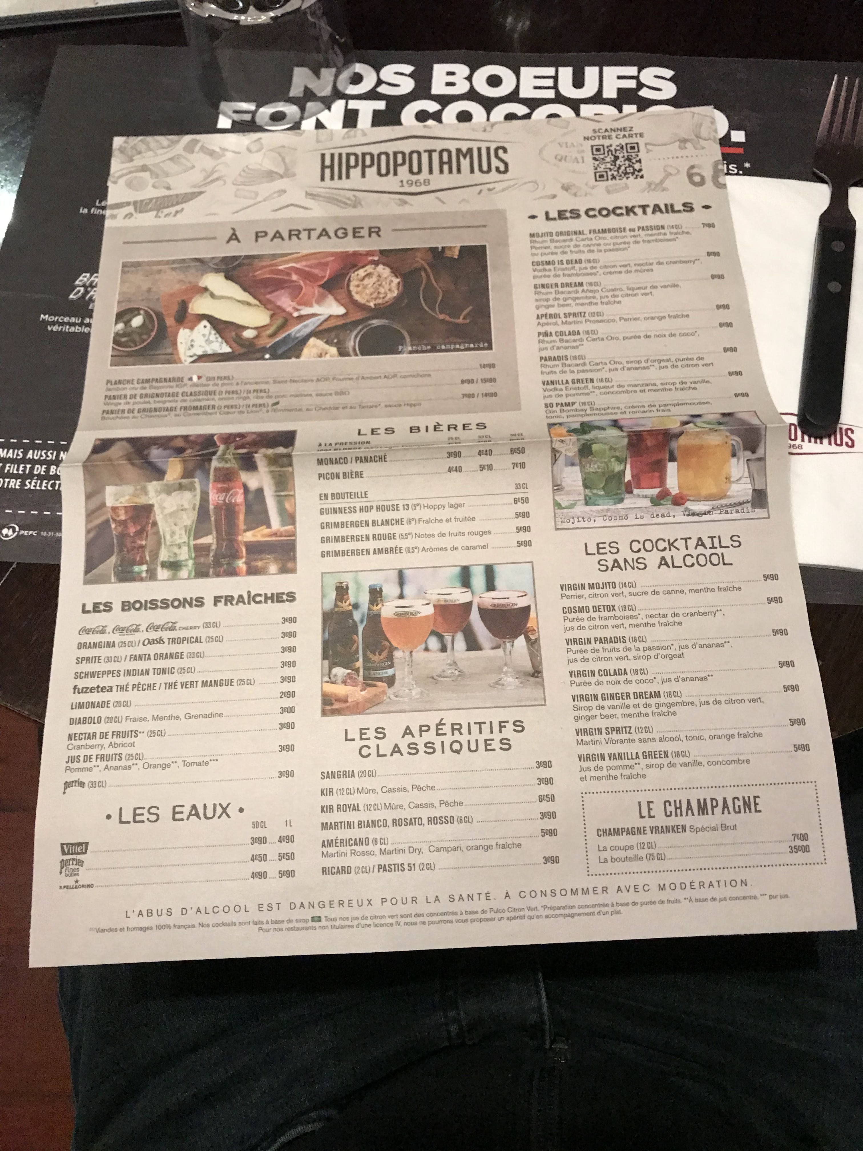 Je laisse cet avis après avoir manger hier midi avec mon conjoint . Je ressors de l Hippopotamus ravi .idéal pour un repas avant des courses ou un shopping ou bien une sortie entre amis Nous avons été bien accueillis,les serveurs sont aimables ,la carte est intéressante nous avons pris un ribs et un fischs and chips qui étaient tous les deux très bons j ai pris en dessert un café gourmand qui était bien garni ce qui est agréable . Je recommande
