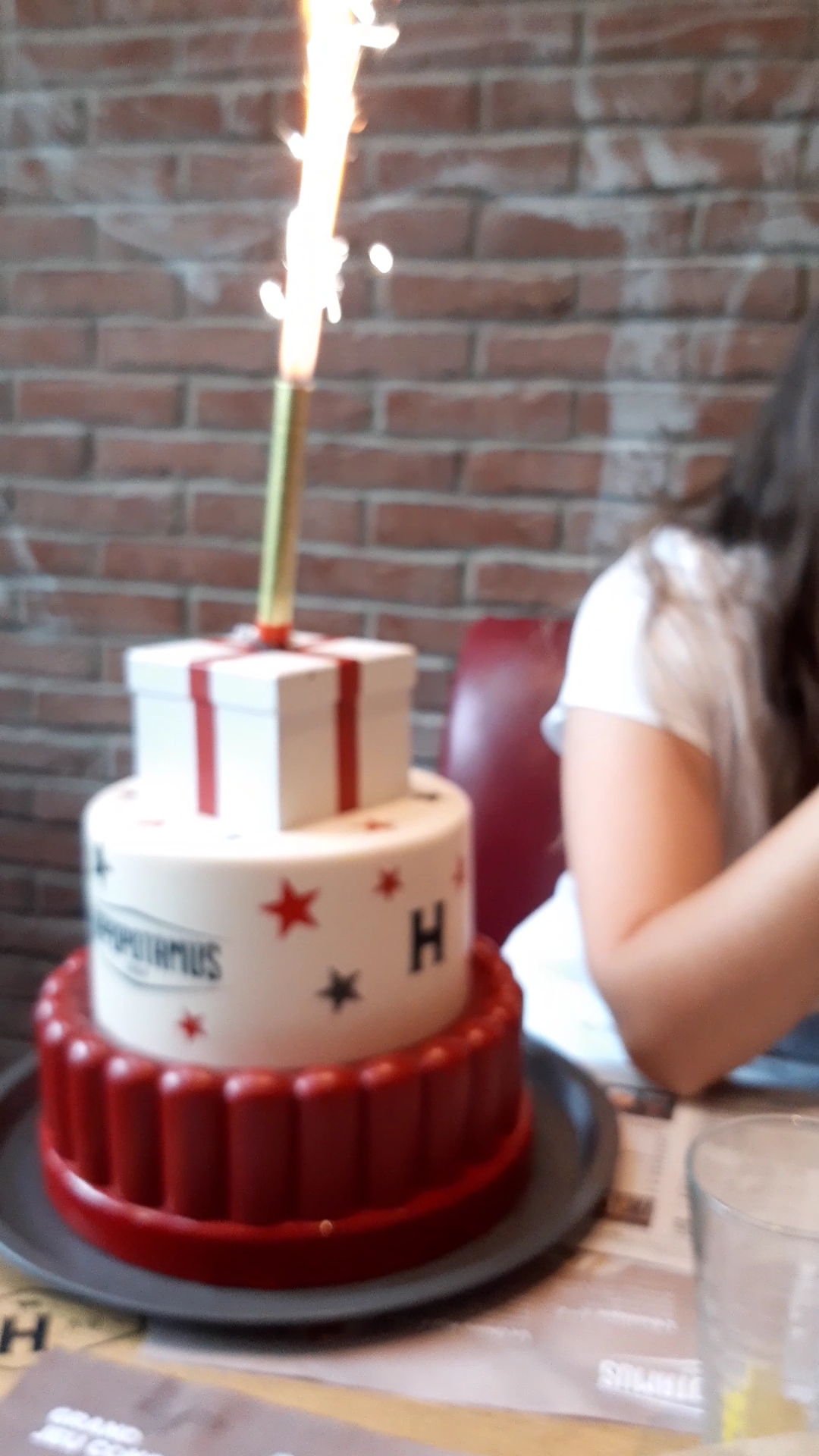 Merci à Mareme et l'équipe de L'Hippopotamus pour m'avoir apporté un gâteau d'anniversaire surprise ! Je m'y attendais pas du tout ! Merci d'avoir marqué cette belle soirée !! En plus le service et les repas y sont bons ! Il faut y aller !