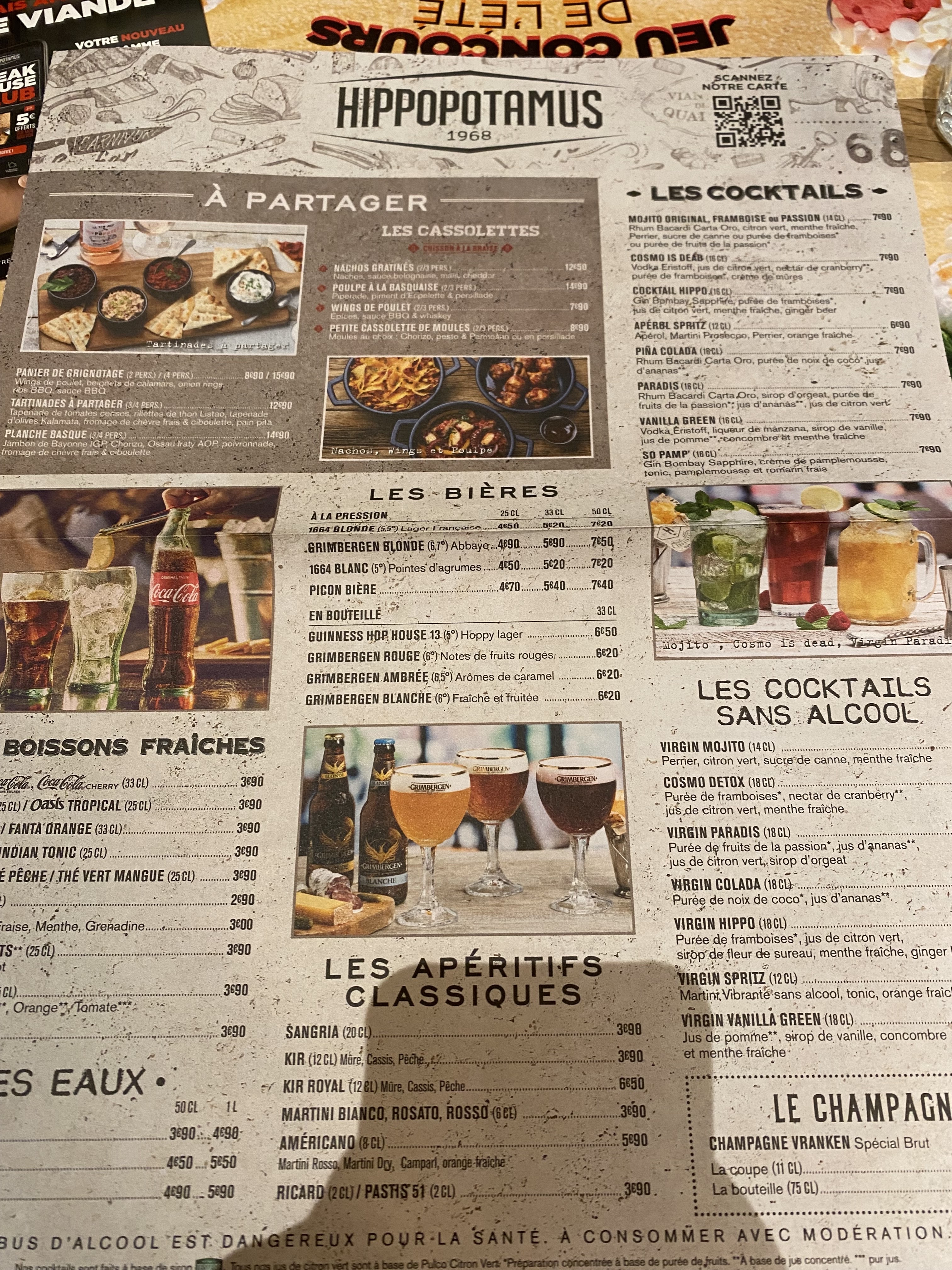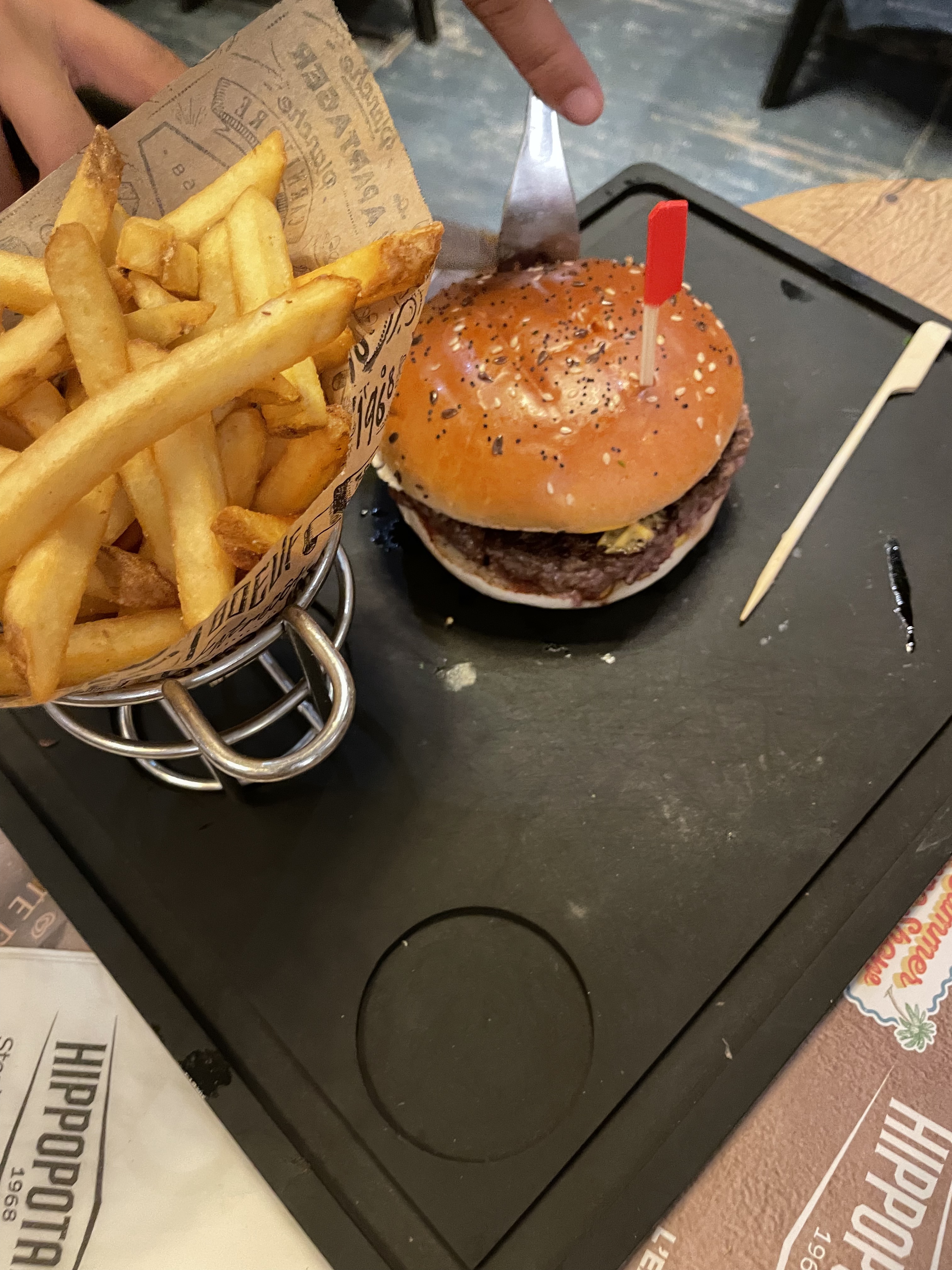 Chez Hippopotamus la viande est toujours très bonne, le carpaccio de viande est délicieux, le jarret de porc est aussi super bon et les burgers pour les enfants sont très bons, le seul problème est que parfois il y a un peu d’attente mais le personnel est quand même très sympa. Il y a des menus pour les enfants et aussi de bons plans pour les adultes.