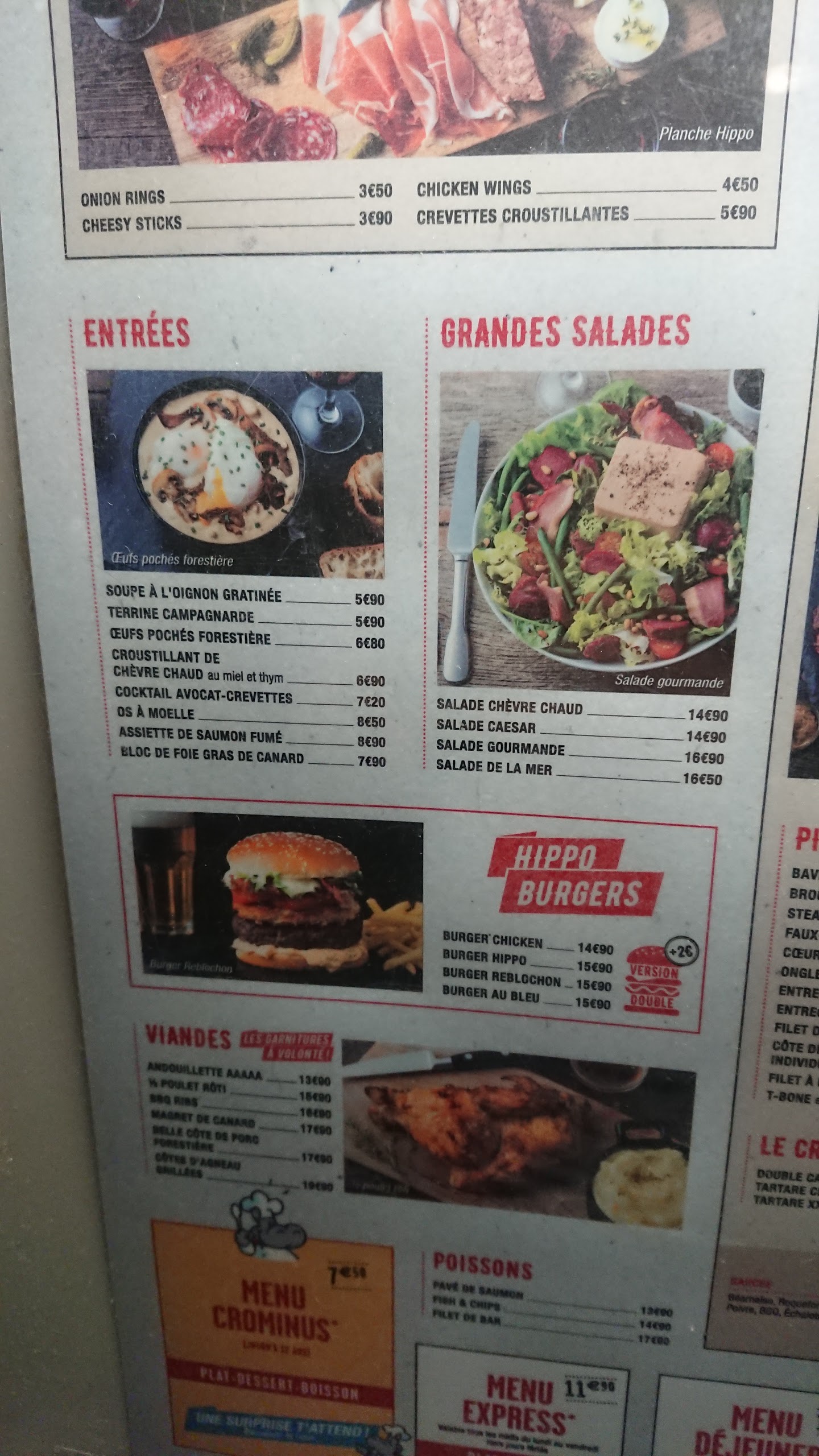 Dommage hippo était un bon rapport qualité prix. Ce n est plus le cas. Le prix des plat a vraiment augmenté, un seule accompagnement (petite quantité) et une seule sauce. Maintenant tout est en supplément. Le service est loin d être chaleureux, il faut tout réclamer et ça semble vraiment ennuyer le serveur. Dommage…