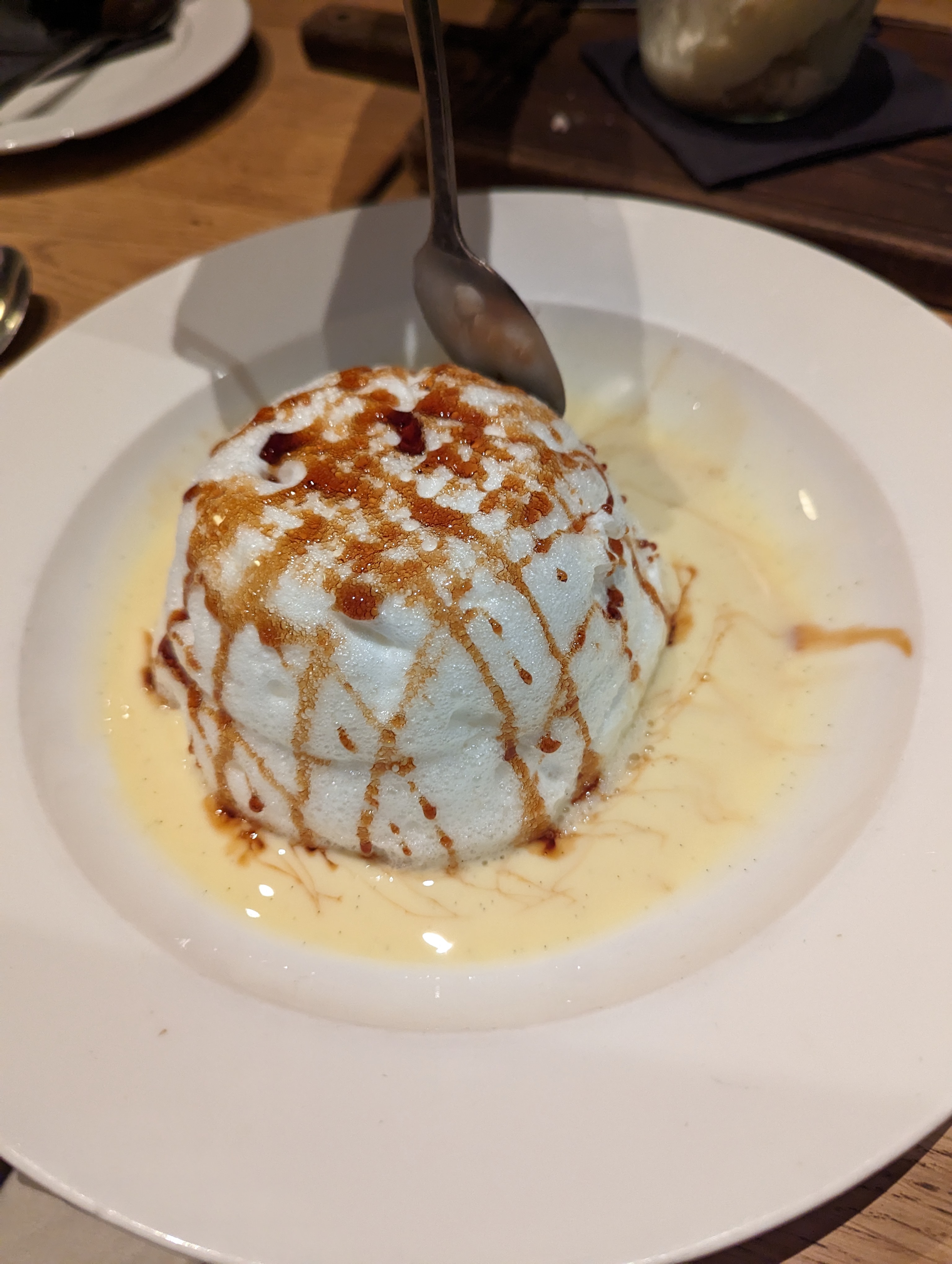 A l’étage a l’intérieur une bonne ambiance, des serveurs disponibles et convivial. Nos plats étais délicieux, pour le dessert un poil déçu par la brioche au pain perdu pour 8,20€ on s’attendais à plus gros mais c’était quand même délicieux.