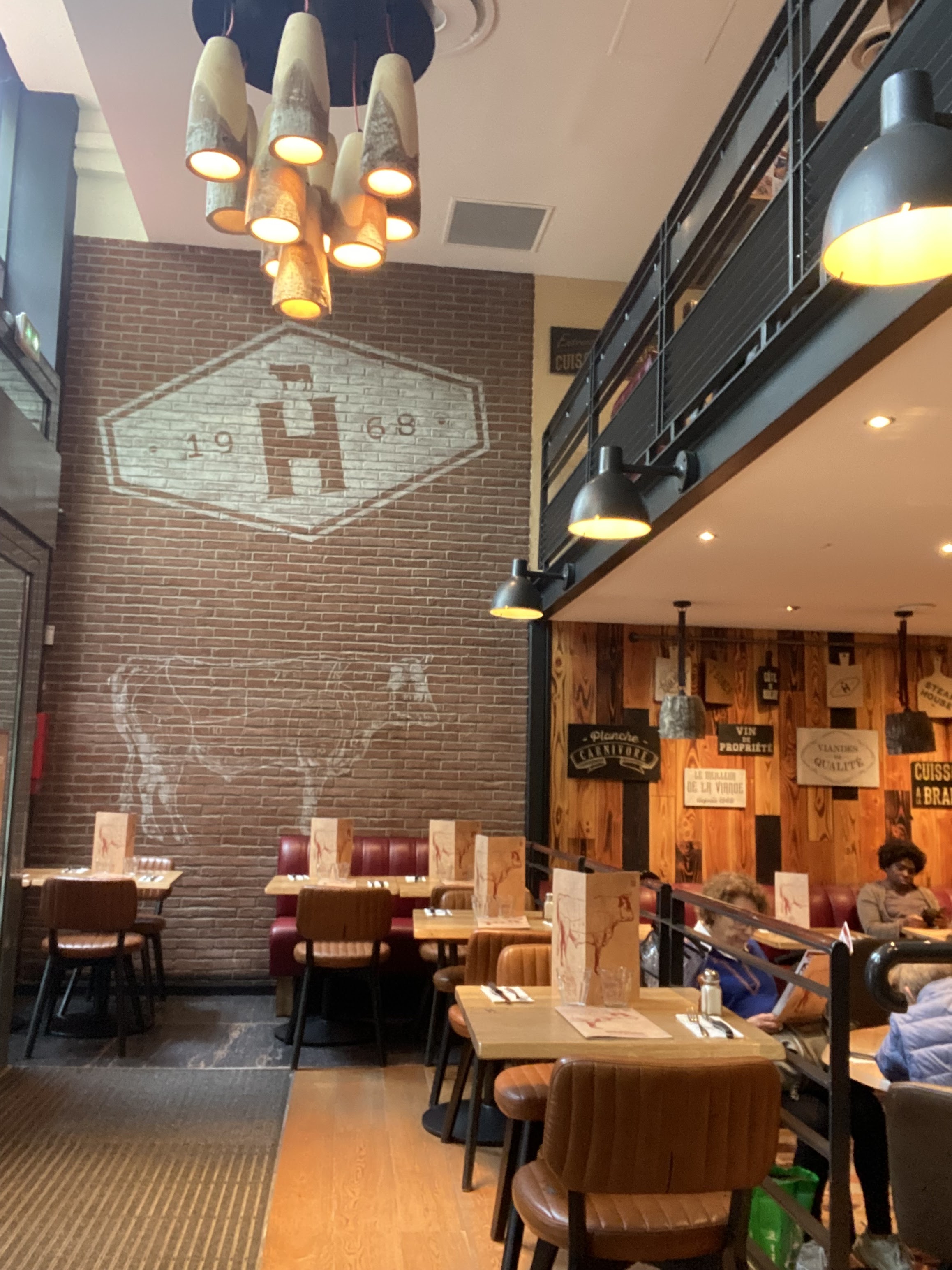 Hippo cours st emillion Bercy village Tres beau hippo petite terrasse en exterieur mais grande salle a l’interieur sous le charme de la salle interieur tout en bois rapelant un peu style far west l’accueil est chaleureux et souriant ils ont meme une table babifoot ou l’on peut manger dessus Les plats comme dans les autres hippo meme gout meme saveurs on adore ! Un des plus beau hippo ou j’ai mangé avec sa grande salle interieur cosy Un bon moment en famille ce samedi apres midi