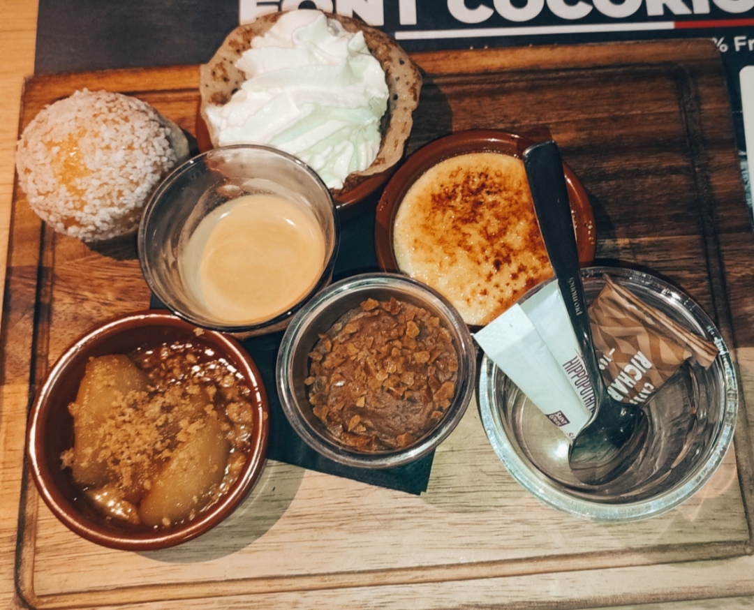 Véritable déception : voici ce que j’ai reçu pour 10euros. Une tranche de tartine. Horrible ! Même pas de chocolat-noisette qui allait avec… De plus la viande que j’avais choisie saignante était bien trop cuite et très caoutchouteuse. Vraie déception. Trop chère pour ce que c’est, surtout vu la tête du dessert tout sec et sans saveur