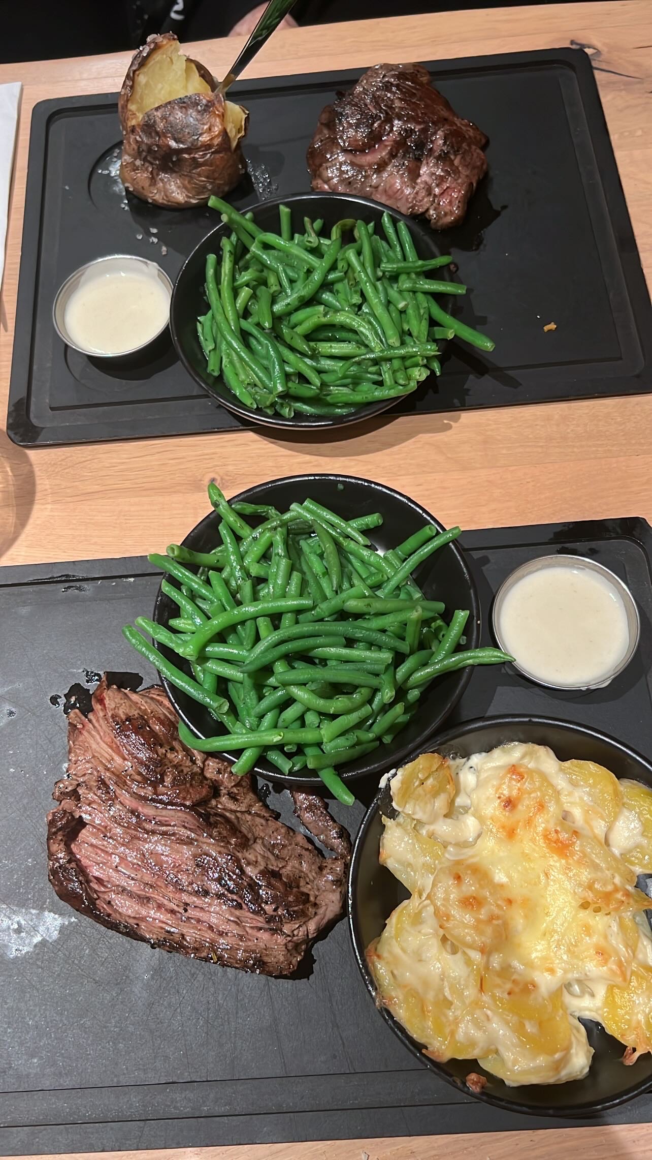 Vraiment dommage notre dernière expérience n’a pas était positive … Le serveur n’était pas vraiment au courant de ce qu’il vend à la carte et ne connaît pas non plus le vin et ne peut donc pas vous renseigner . Étant végane je demande des haricots vert et demande si il n’y a pas de beurre dedans (je suis plutôt insistante ) au final mon plat arrive et il y a bien du beurre dedans … malheureuse mésaventure . Le responsable a réussi à corriger le tire avec sa gentillesse mais je ne penses pas revenir … dommage mon compagnon adore la viande