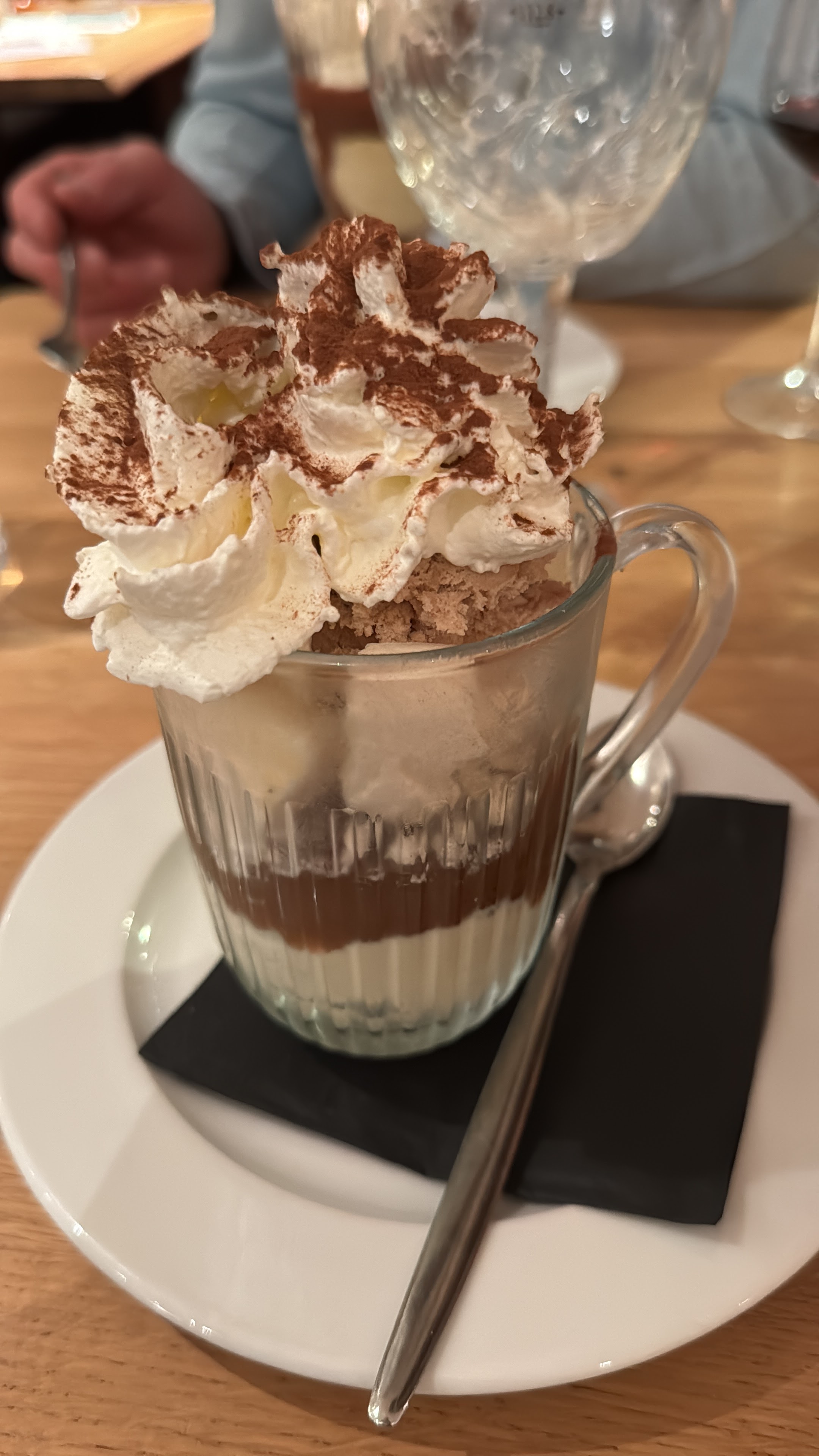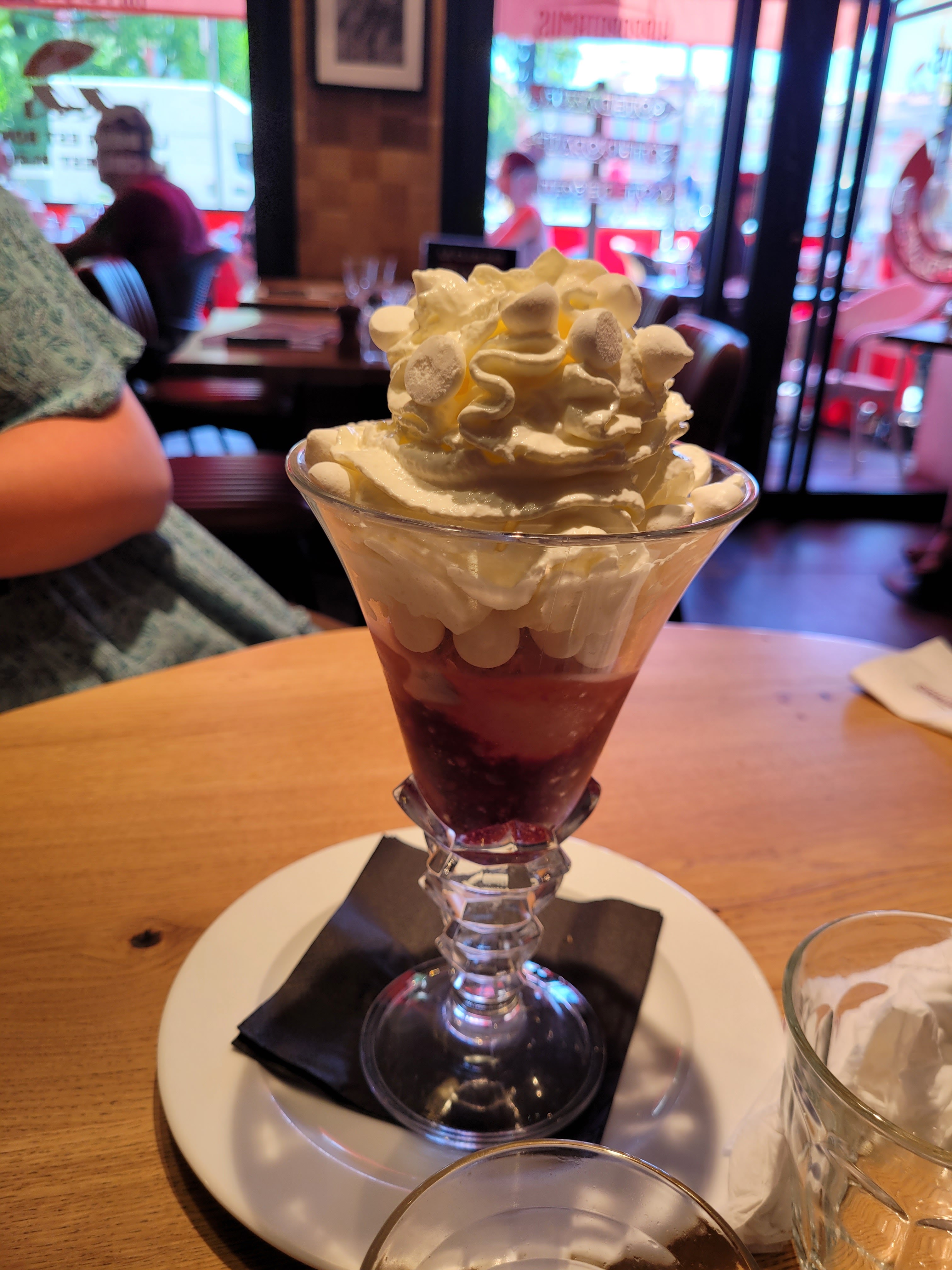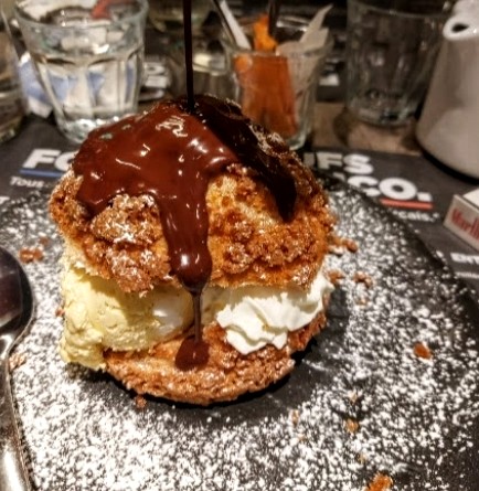 Bonne nourriture, endroit agréable à vivre. Ce n'est pas vraiment bon marché, mais vous en avez pour votre argent. Personnel très gentil! Ce qui est bien, c'est que la porte extérieure est fermée, donc aucune fumée ne rentre à l'intérieur. Un point à améliorer est la crème sur glace, ils utilisent un spray maintenant et non fraîchement préparé.