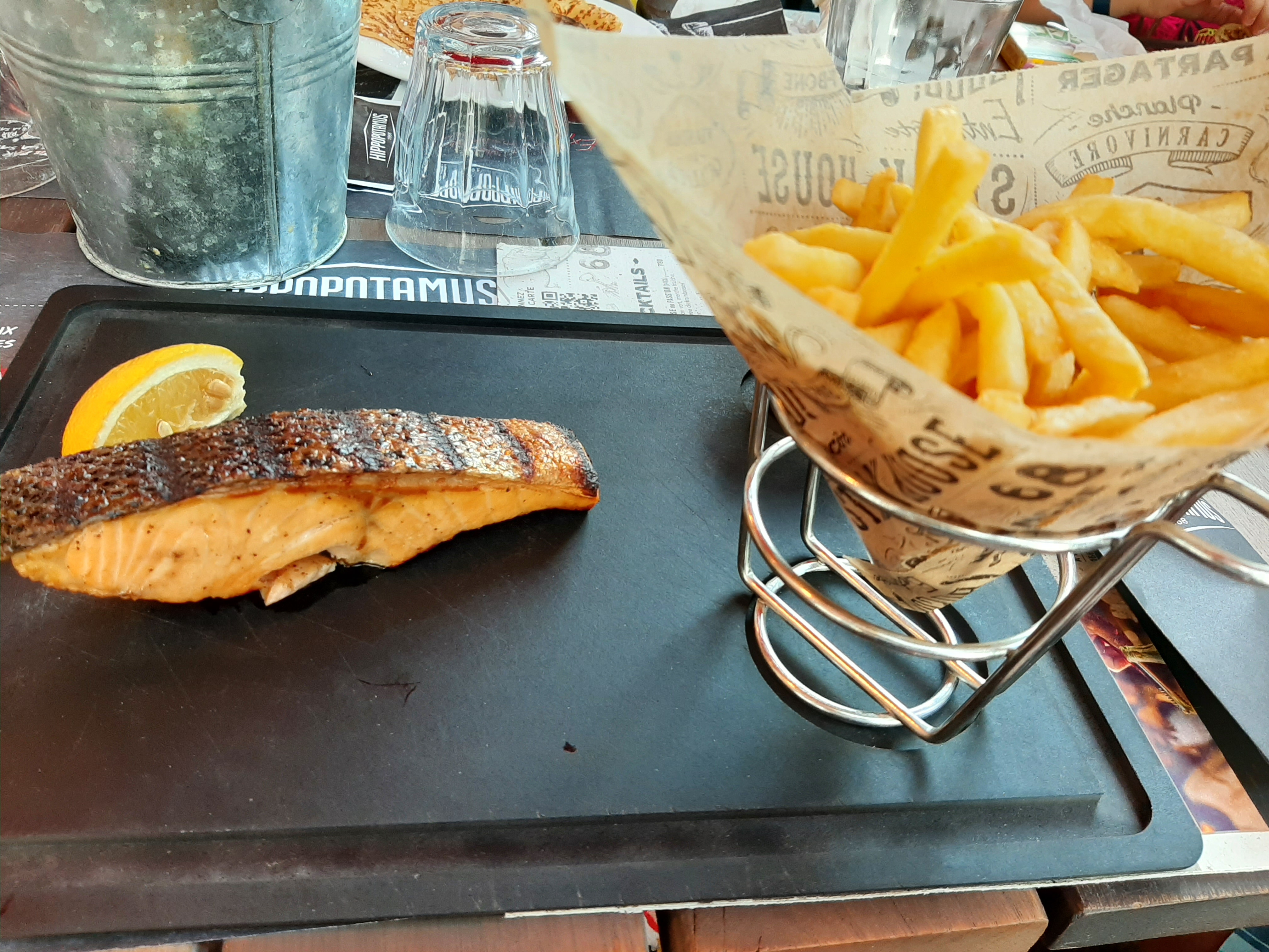 Nous avons visité le restaurant Hippopotamus à Paris l'année dernière et avons décidé d'essayer celui-ci. L'ambiance et le service étaient excellents. Les serveurs étaient super sympas et nous avons vraiment aimé le forfait d'activités pour enfants qu'ils proposent. Mon steak était dur et je pense que c'était de ma faute. Je l'ai commandé bien fait, ce que je n'aurais peut-être pas dû faire. J'ai pris la boisson Ginger Dream qui était phénoménale. Leurs frites étaient également croustillantes jusqu'à la dernière. C'est définitivement un restaurant à essayer à Nice.