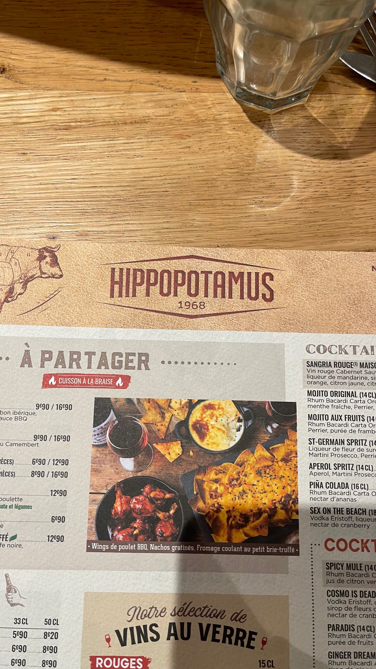 L’accueil n’est pas vraiment au rdv. Ce n’est pas le même service comme on l’habitude dans les autre Hippos. Service a besoin de revoir les standards et être plus proactifs et bienveillants. L’entrée « panier à partager » était clairement trop cuits voire cramée - signalé à l’hôtesse mais zéro réaction … Heureusement la viande waygu a été bonne mais pour 30€ je trouve c’était très léger en quantité. Bref, ce n’était pas extraordinaire, mais OK pour une fois. Je ne reviendrai pas