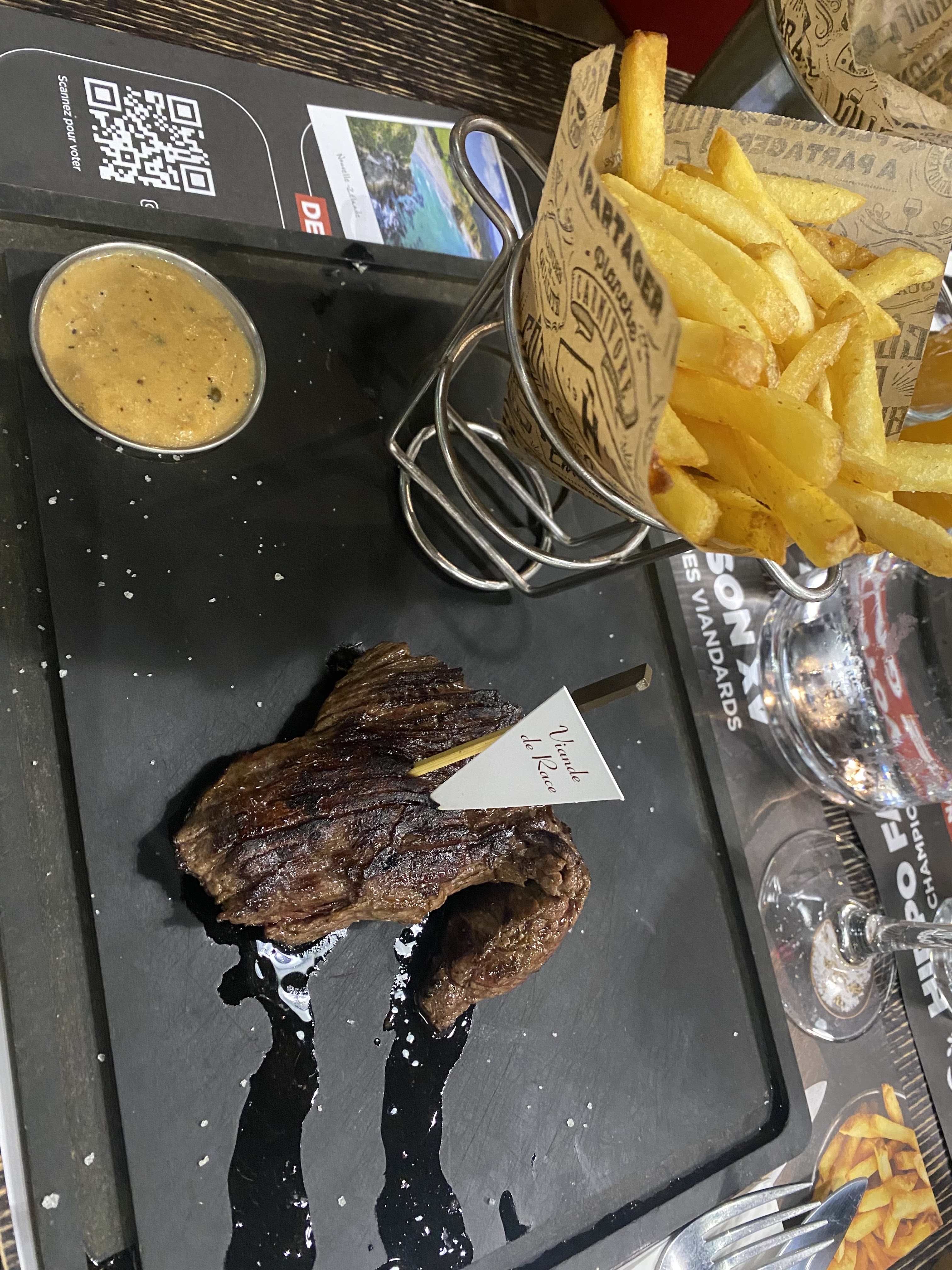 Excellent rapport qualité prix, pas grand monde le dimanche soir donc service assez rapide. Peut-être quelques améliorations concernant les sauces, ma sauce béarnaise avait l'air d'avoir été préparée depuis quelque temps. Pourquoi ne pas le faire à la minute ou bien les conditionner au frais /différemment ? Carte des vins locale très qualitative. Des belles bouteilles que l'on imagine pas forcément dans ce type de restaurant. Nous reviendrons :)