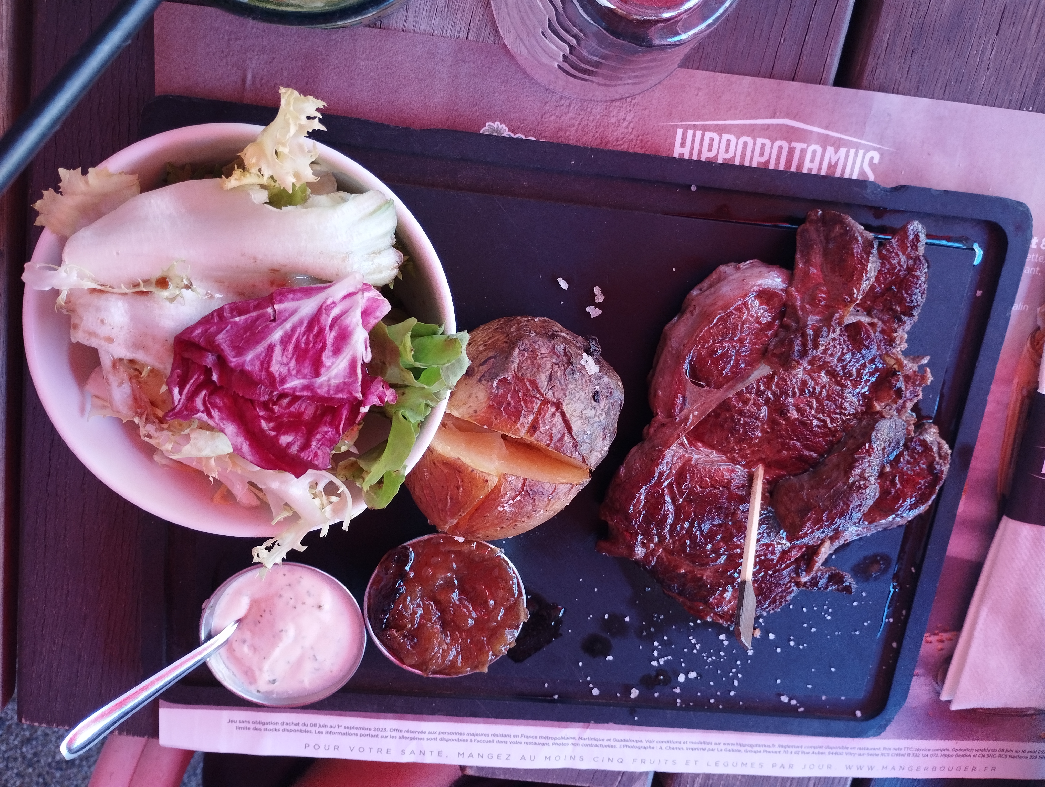 Un restaurant de la chaîne hippotamus à éviter. Déjà je ne suis pas fan du fait que ne soit pas indiqué à l'entrée les produits en rupture. Les affiches qui vous invitent à entrer deguster ces produits doivent etre mises a jour. Là c'est annoncé à la prise de commandes des plats. On aurait dû payer nos boissons et partir. J'avoue. Puis je trouve inadmissible d'oser servir un morceau de viande non mangeable et à tel prix (trop de nerfs et donc refusé). Qui plus est dans un restaurant qui prône la viande et ses variétés. Enfin, il est à regretter le traitement expéditif et peu agréable de notre fin de repas. Nos remarques n'ont pas plu de toutes évidences. Je ne viendrai plus manger dans ce restaurant.
