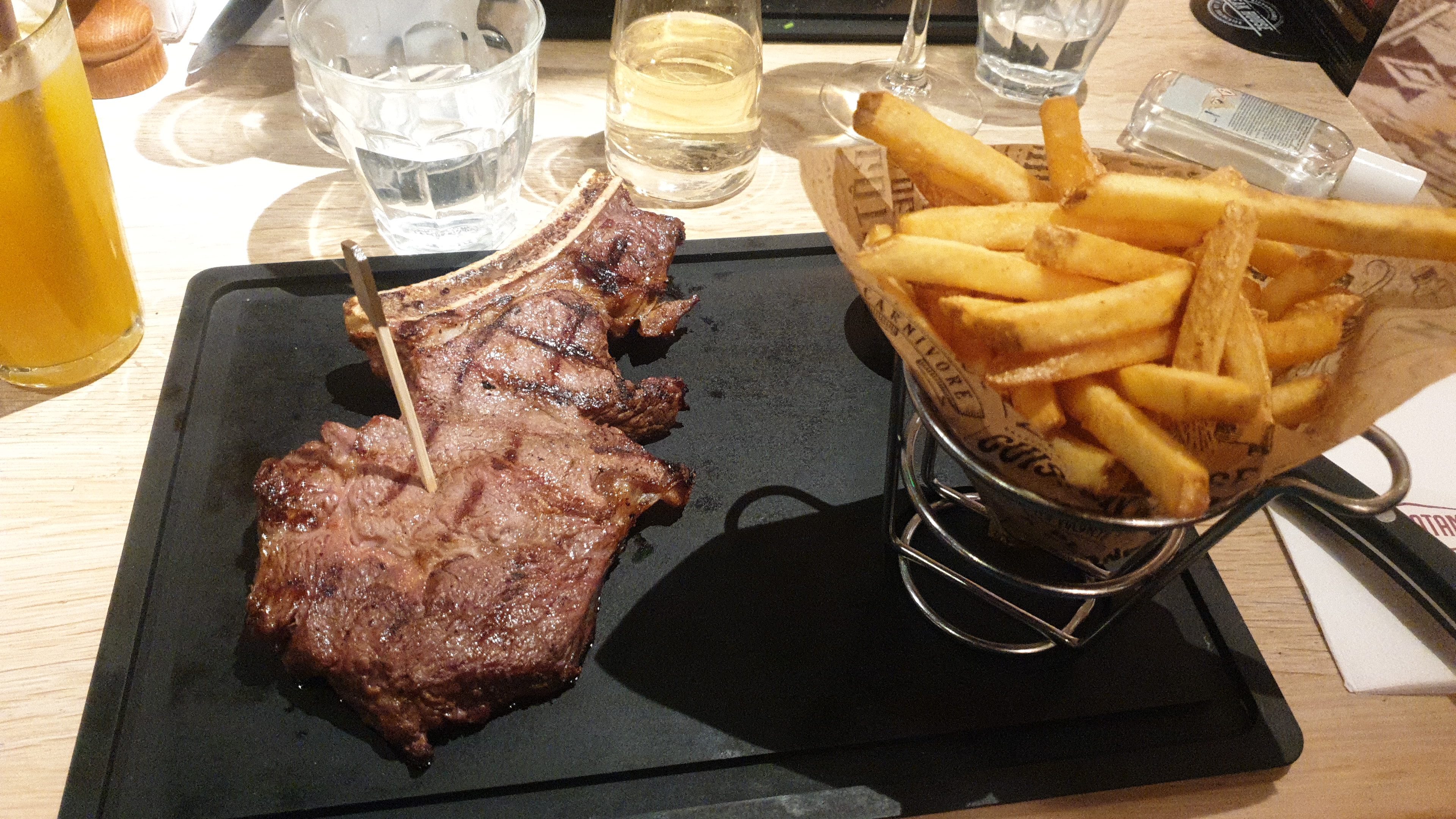 Restaurant pour les amateurs de viande. Il y a aussi d autres mets. La cuisson des viandes demandée est respectée. Le service est un peu long. Établissement propre et bien situé. Il y a un parking souterrain à proximité.