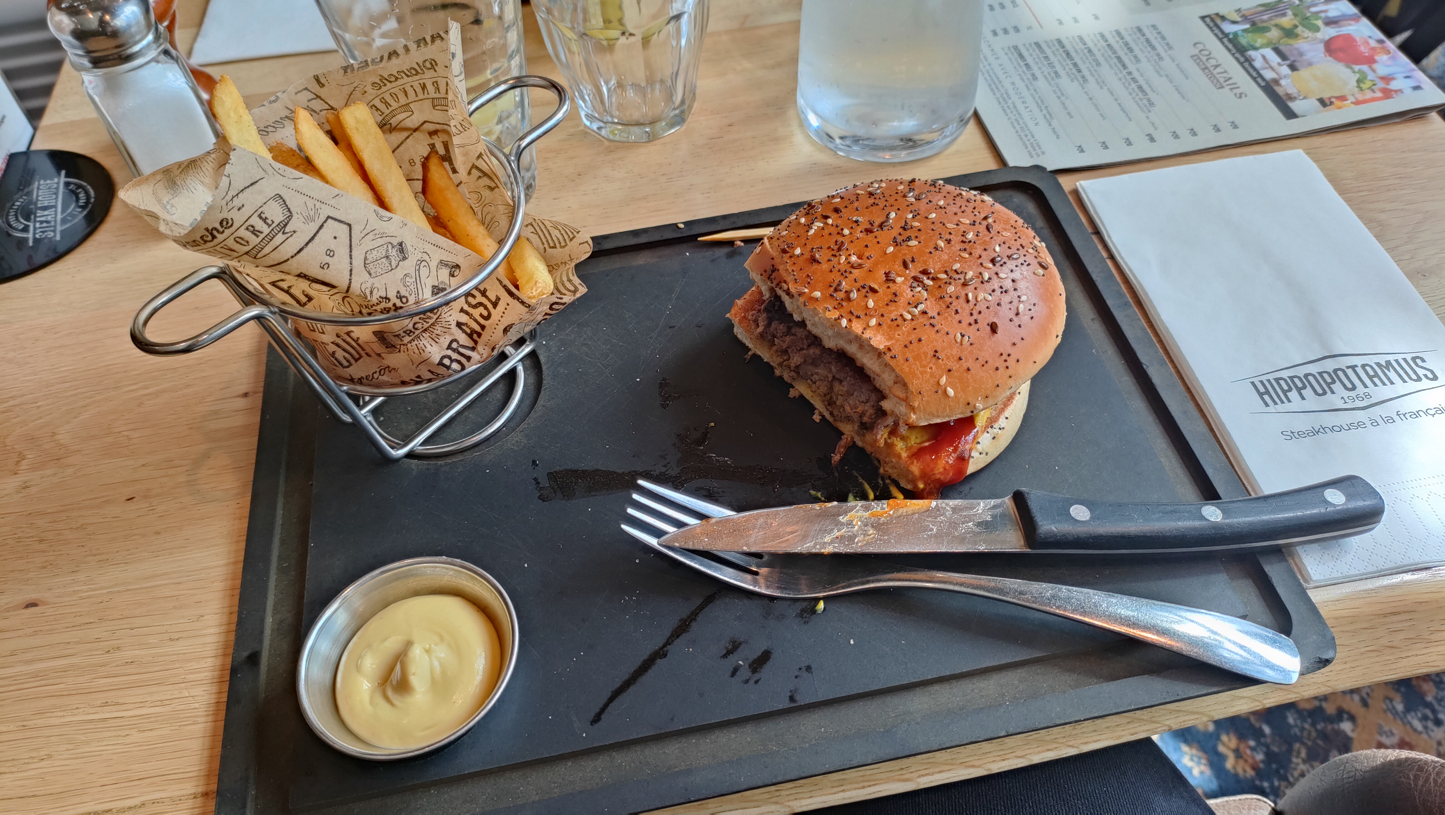 Bonjour, tout d’abord je tenais à dire que Je suis un adepte de cette chaîne de restauration je n’ai jamais été déçu 😉 pontault-Combault, Montpellier, Échirolles etc… au top et ce soir, j’ai été à celui de la Lyon Part-Dieu Que l’on soit bien d’accord, je ne recherche pas de la grande gastronomie, mais des choses simples et efficace 👌 malheureusement, nous sommes arrivés pour le premier service de 19h30 initialement, nous aurions souhaité manger un croustillant de chèvre chaud en entrée Après avoir pris notre commande, le serveur vient nous voir et nous indique qu’il n’y a plus de croustillant bien regrettable pour un service qui venait tout juste de commencer. On s’oriente vers un gratin de ravioles au parmesan en entrée 0 les frites était froide le riz au chorizo était sec, sans doute tout juste placé sous une salamandre un steak haché avec un œuf à cheval, même ça, la cuisine n’a pas été capable de le faire correctement malheureusement, nous sommes allés de déception déception. C’est pour cela que nous n’avons pas pris de dessert ni même de café. en bref, je ne recommande pas du tout, l’Hippopotamus, la Part-Dieu