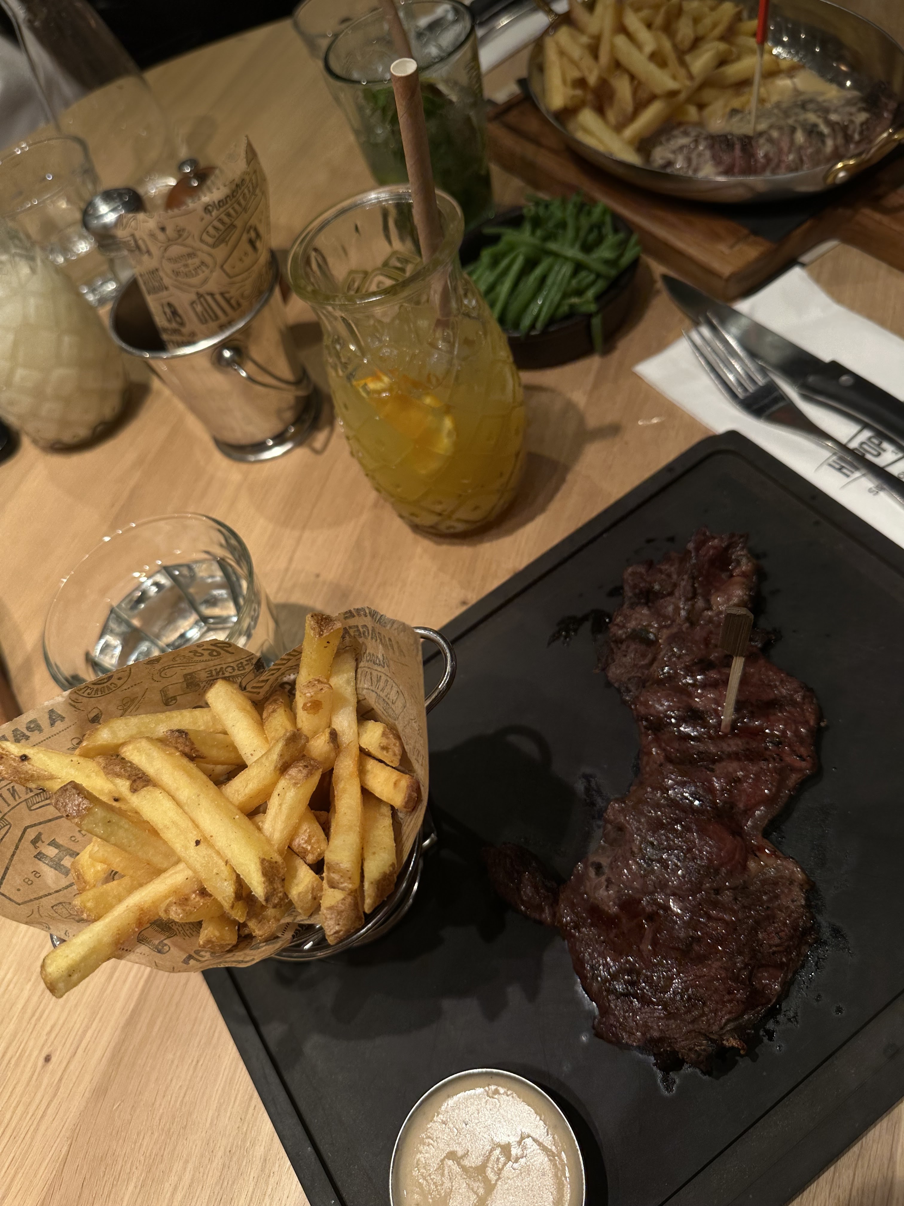 Premier soir à Lyon, seul lieu ouvert jusque tard, il était déjà presque minuit. Mais le staff était super accueillant, à l'écoute, souriant et le repas était très bon. Viande parfaitement cuite comme demandé et la présentation des desserts très jolie. Nous avons même été là-bas pour notre dernier repas du voyage. Allez-y sans hésiter! ;)